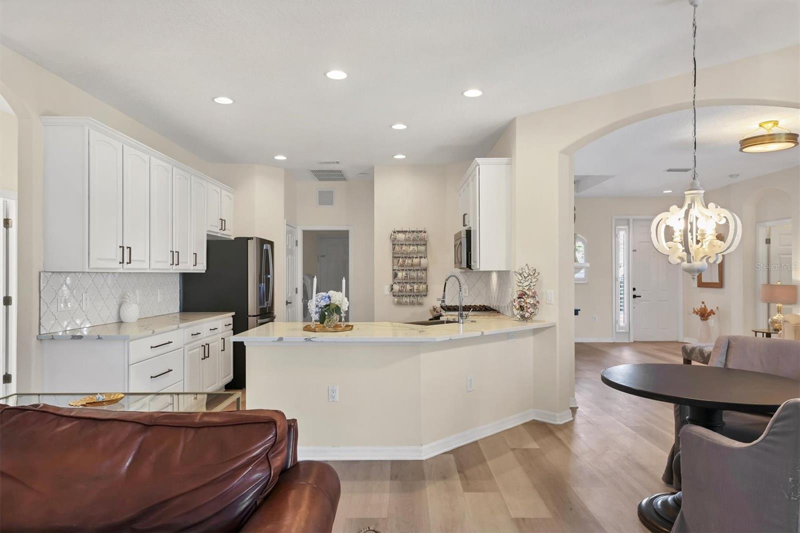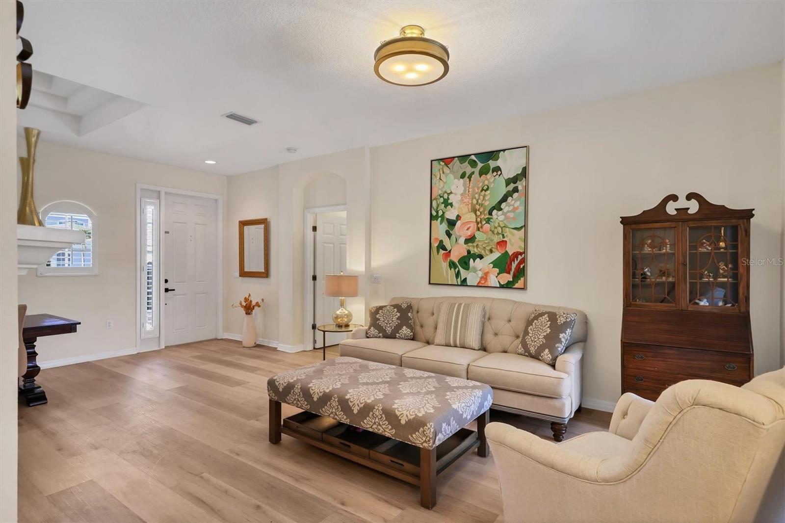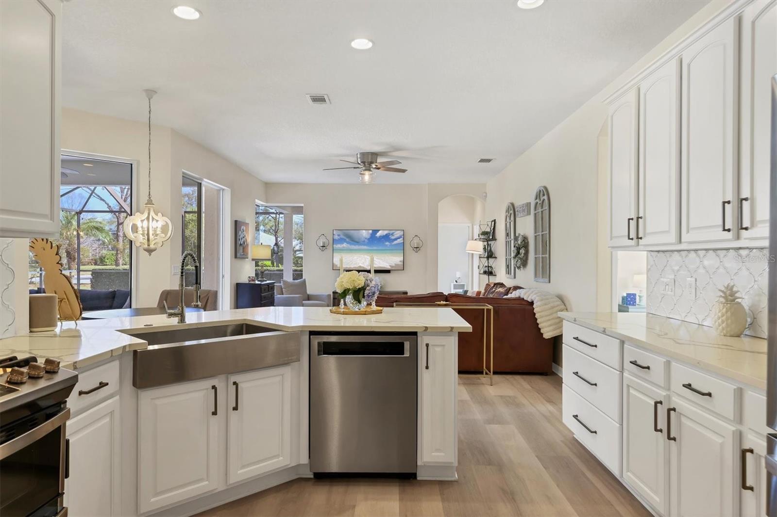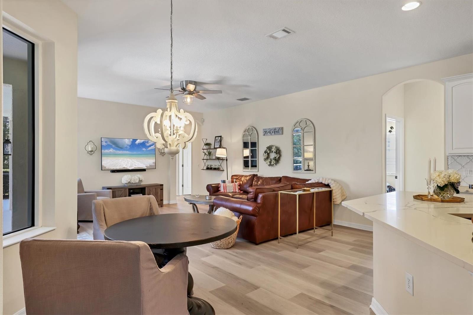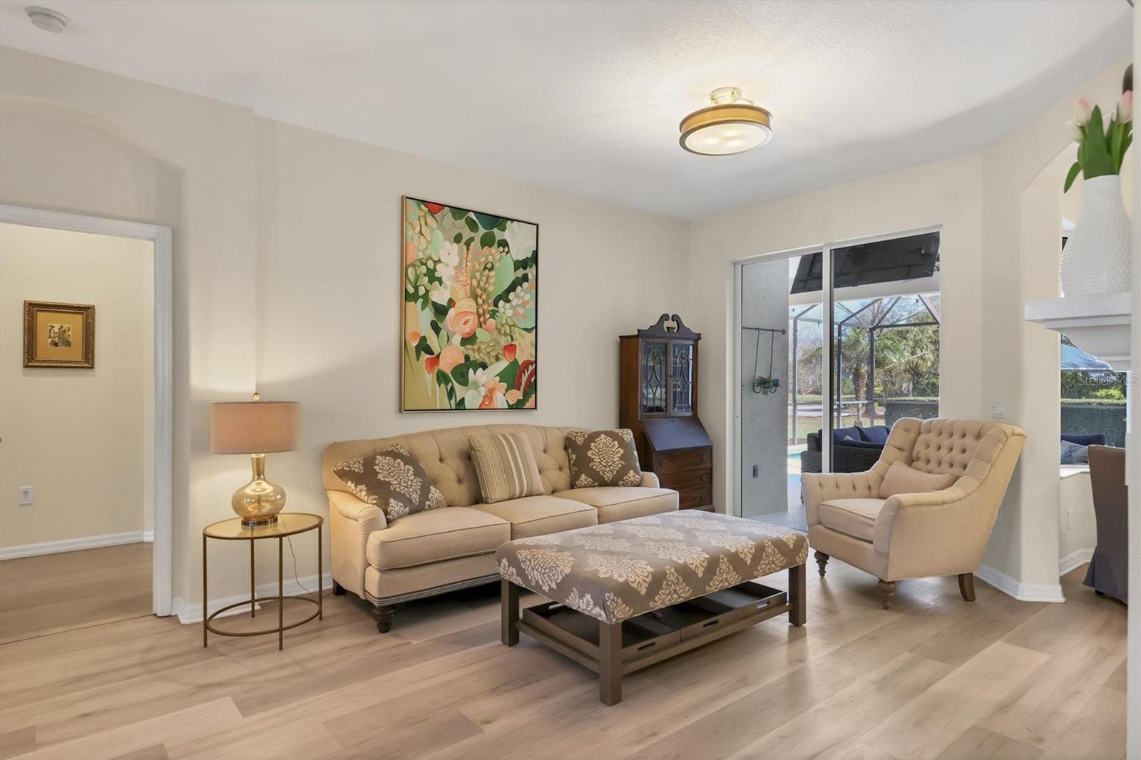 Price Improvement! In the heart of Greenbrook's Chase neighborhood, this beautifully updated home is a short walk/bike ride to top-rated schools, scenic parks, playgrounds and nature trails. Generously sized with 4 full bedrooms, plus a large bonus/flex room for a 5th bedroom, office or playroom. Roof replaced November 2022.Interior imbued with blonde oak luxury vinyl flooring and soft, muted walls. Dining and living rooms share a natural gas fireplace. The tastefully refreshed kitchen boasts alabaster quartz countertops, built-in white linen cabinetry and upgraded appliances. The spacious family room leads directly to an inviting outdoor living space with a drop-down TV. The gas-heated saltwater pool resurfaced in 2022. Owners' retreat has walk-in closets and large en-suite bathroom. Side entry 2.5-car garage boasts a large attic space, overhead storage, and a mini-split air-conditioning unit. Whole-house water softener and Air Knight air purification systems provide a healthy environment for your family.