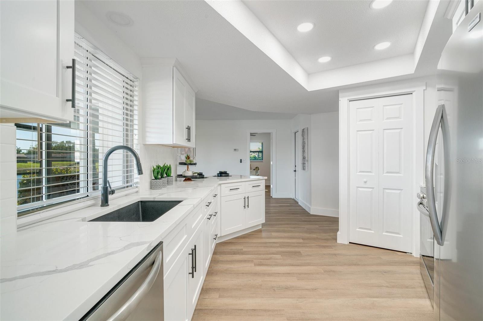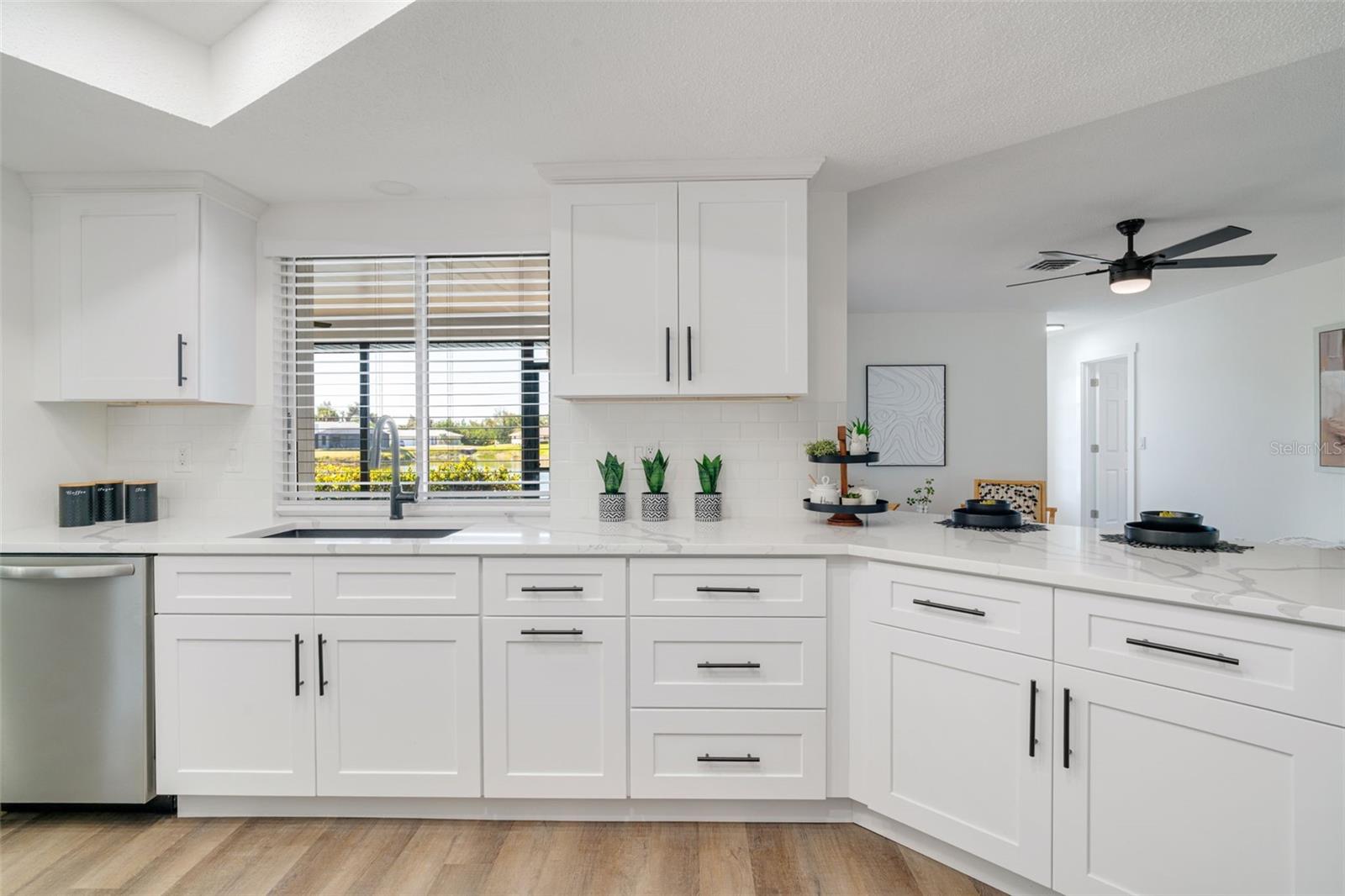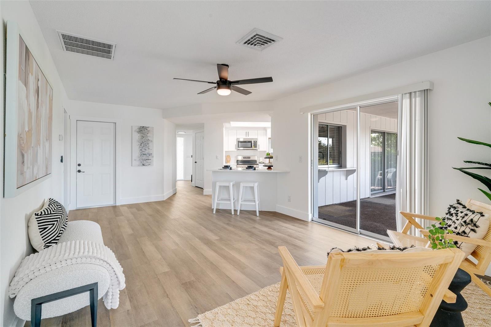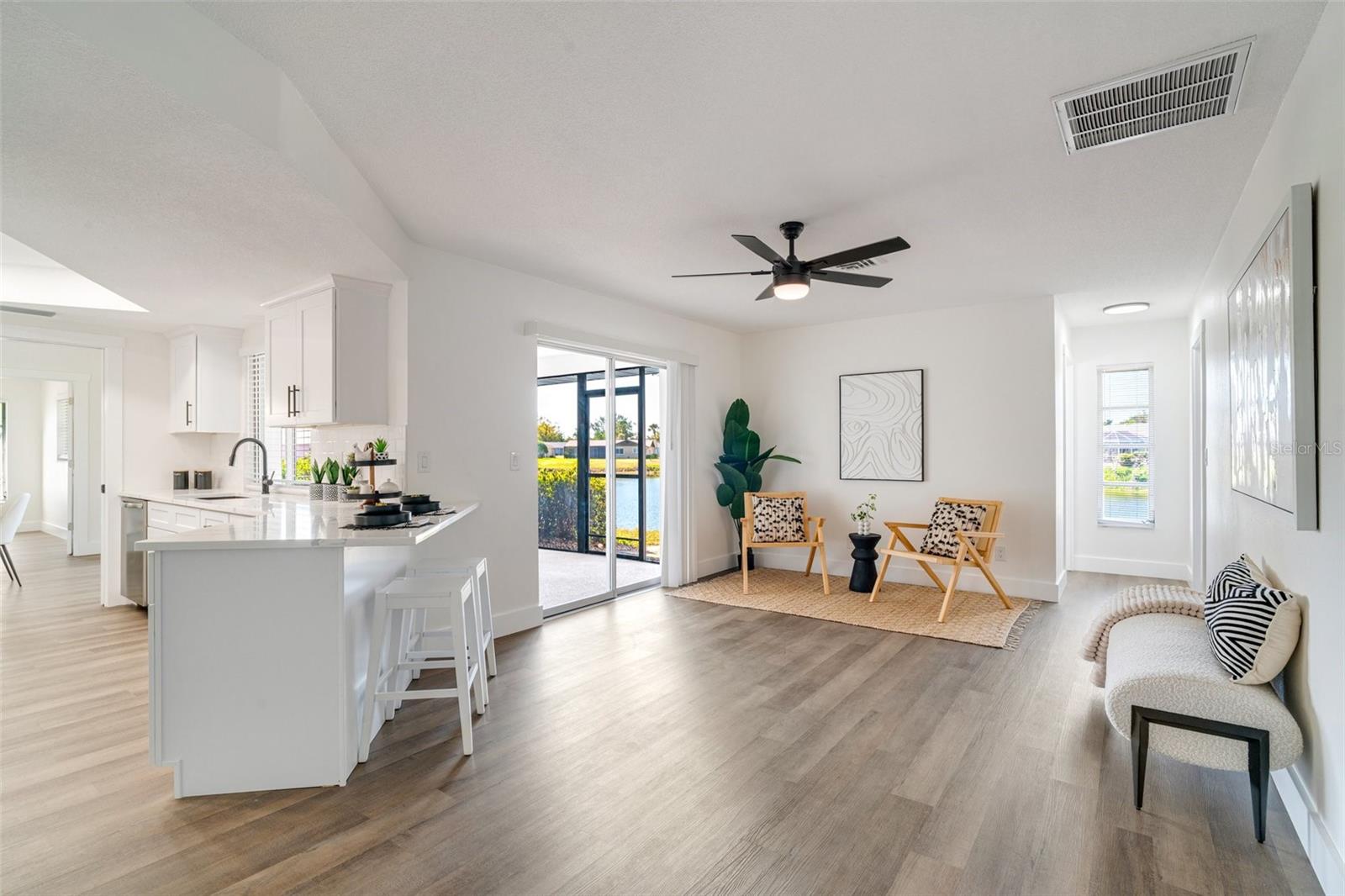 Tucked away on a peaceful cul-de-sac in Venice Gardens Jacaranda West Community, this beautifully remodeled home offers just under 1,700 square feet of comfortable living space. With a brand-new roof and all major systems recently replaced, you can move in with peace of mind and enjoy many years of worry-free living. Inside, you'll find luxury vinyl flooring that flows seamlessly through the main living areas, complimented by elegant tile in the remodeled bathrooms. The L-shaped living and dining room is perfect for relaxing gatherings, while the additional family room off the kitchen creates an ideal space for entertaining family and friends. The modern kitchen showcases stone countertops, a suite of stainless steel appliances, and a pantry, all complemented by a window that overlooks the serene pond. The split floor plan ensures privacy, with the primary suite offering a peaceful retreat, complete with an updated en-suite bathroom and a spacious walk-in closet. Two additional bedrooms are located on the opposite side of the home, sharing a well-appointed second bathroom. Step outside to the screened-in lanai, where you can unwind or entertain while enjoying the tranquil pond views and surrounding natural beauty. Whether you're sipping coffee in the morning or enjoying a quiet evening, this outdoor space provides the perfect backdrop, with peaceful water reflections and occasional sightings of Florida's wildlife. Conveniently located just minutes from Venice Beach and a short drive to Manasota Key, this home is also close to the vibrant Historic Downtown Venice area, where you'll find unique shops, restaurants, and cultural attractions. Outdoor enthusiasts will love the nearby golf courses, boating opportunities, and nature trails, while Wellen Park offers entertainment, Spring Training games, and waterfront dining. **THIS PROPERTY QUALIFIES FOR A 1% LENDER INCENTIVE IF USING PREFERRED LENDER. INQUIRE FOR MORE DETAILS.**