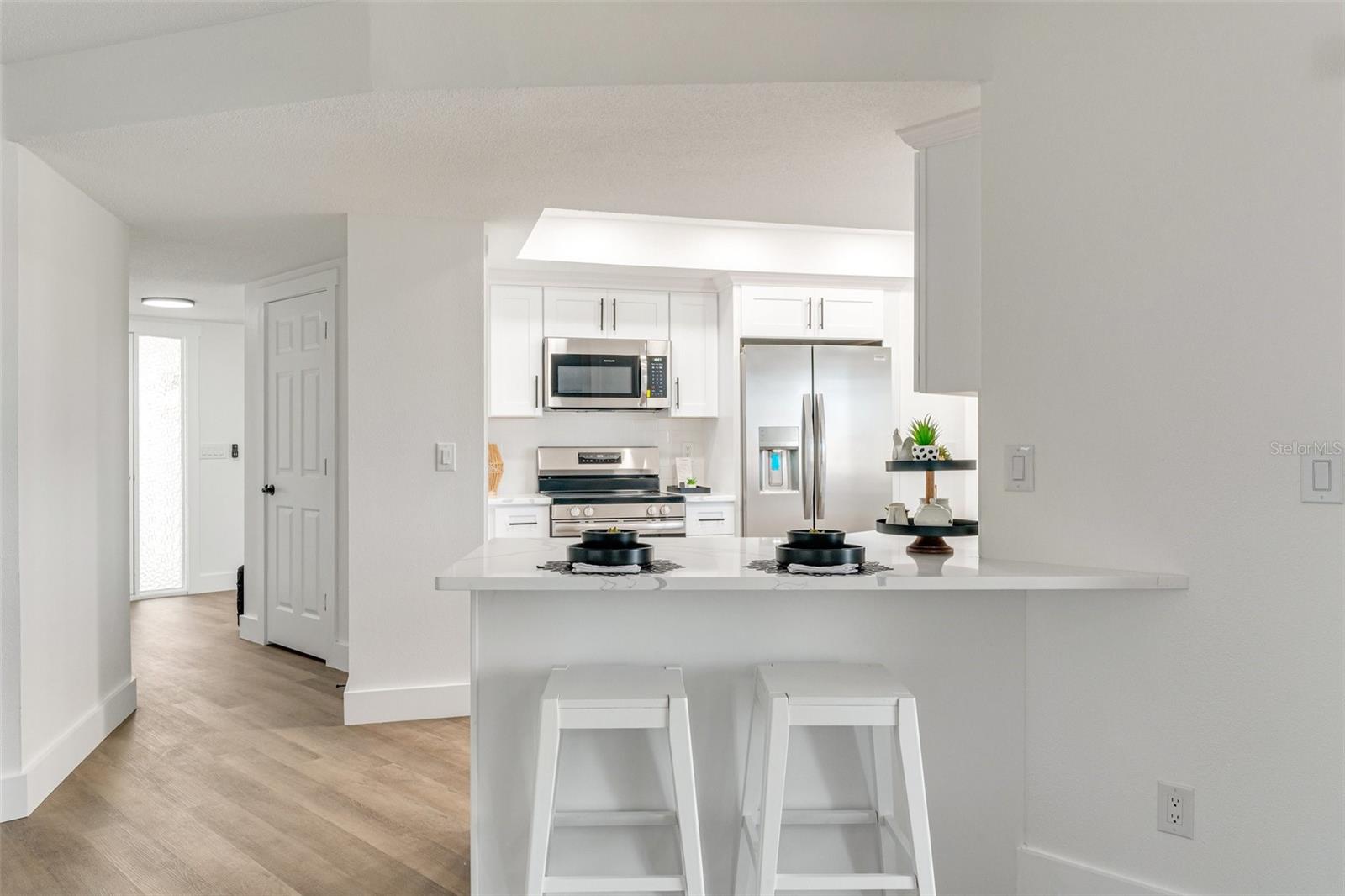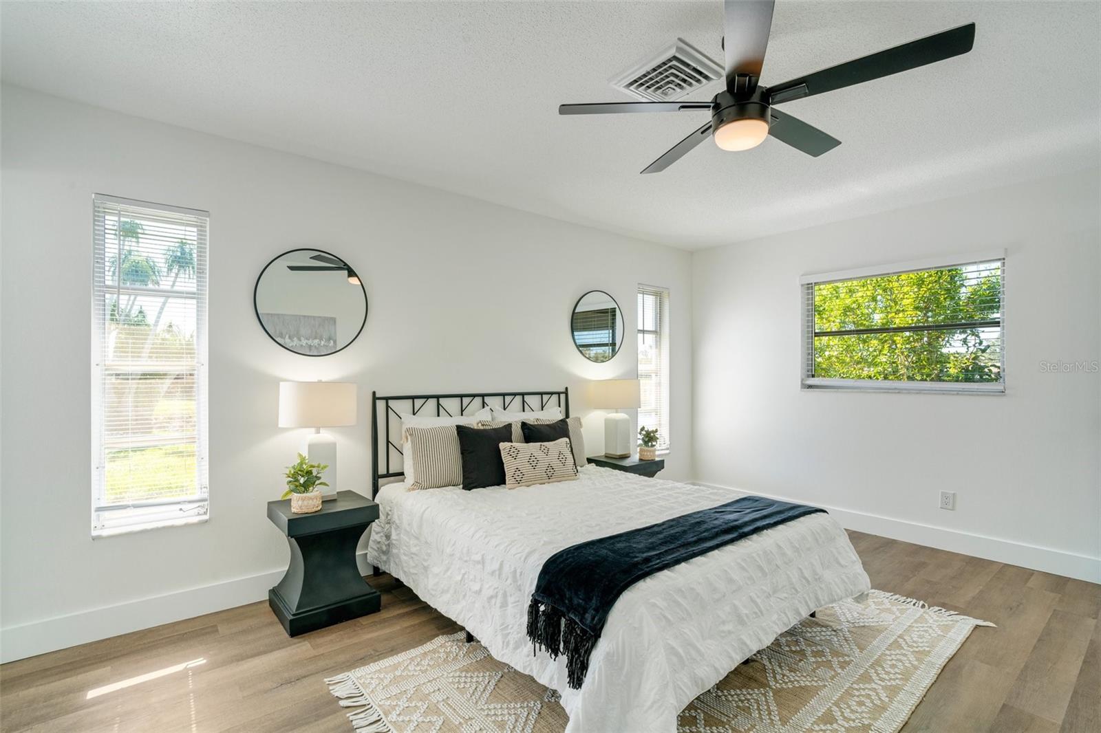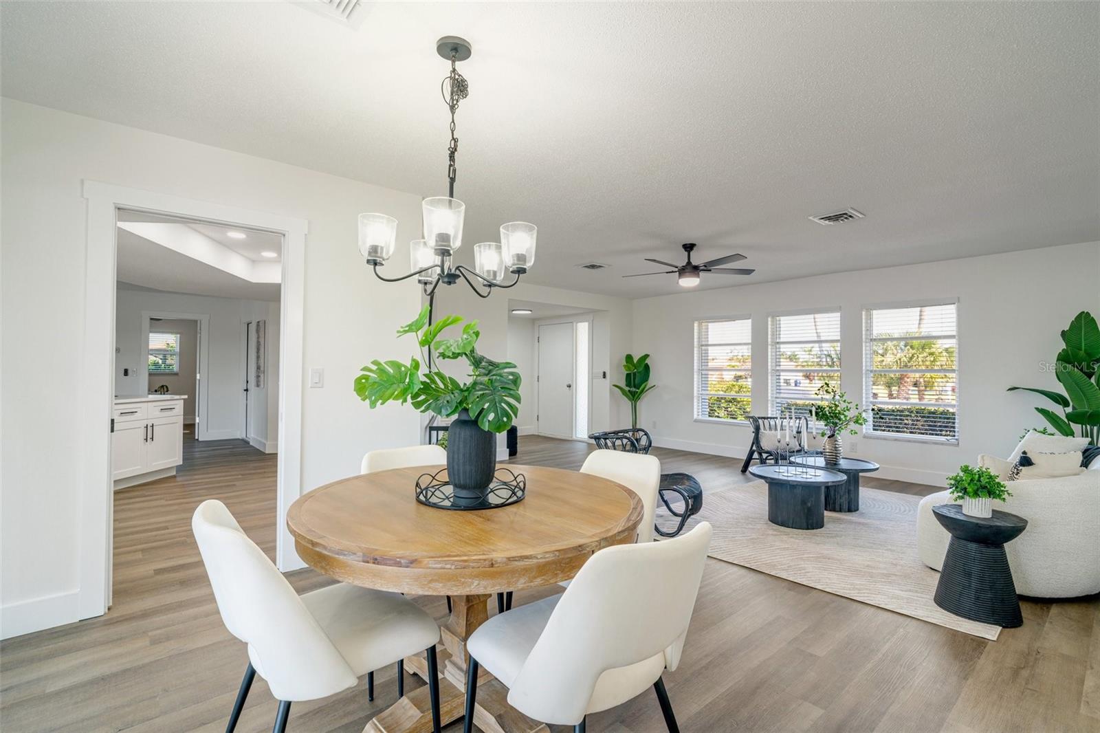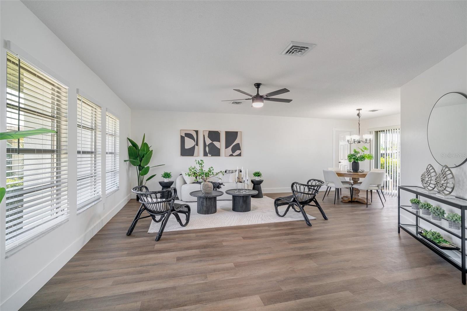 Tucked away on a peaceful cul-de-sac in Venice Gardens Jacaranda West Community, this beautifully remodeled home offers just under 1,700 square feet of comfortable living space. With a brand-new roof and all major systems recently replaced, you can move in with peace of mind and enjoy many years of worry-free living. Inside, you'll find luxury vinyl flooring that flows seamlessly through the main living areas, complimented by elegant tile in the remodeled bathrooms. The L-shaped living and dining room is perfect for relaxing gatherings, while the additional family room off the kitchen creates an ideal space for entertaining family and friends. The modern kitchen showcases stone countertops, a suite of stainless steel appliances, and a pantry, all complemented by a window that overlooks the serene pond. The split floor plan ensures privacy, with the primary suite offering a peaceful retreat, complete with an updated en-suite bathroom and a spacious walk-in closet. Two additional bedrooms are located on the opposite side of the home, sharing a well-appointed second bathroom. Step outside to the screened-in lanai, where you can unwind or entertain while enjoying the tranquil pond views and surrounding natural beauty. Whether you're sipping coffee in the morning or enjoying a quiet evening, this outdoor space provides the perfect backdrop, with peaceful water reflections and occasional sightings of Florida's wildlife. Conveniently located just minutes from Venice Beach and a short drive to Manasota Key, this home is also close to the vibrant Historic Downtown Venice area, where you'll find unique shops, restaurants, and cultural attractions. Outdoor enthusiasts will love the nearby golf courses, boating opportunities, and nature trails, while Wellen Park offers entertainment, Spring Training games, and waterfront dining. **THIS PROPERTY QUALIFIES FOR A 1% LENDER INCENTIVE IF USING PREFERRED LENDER. INQUIRE FOR MORE DETAILS.**