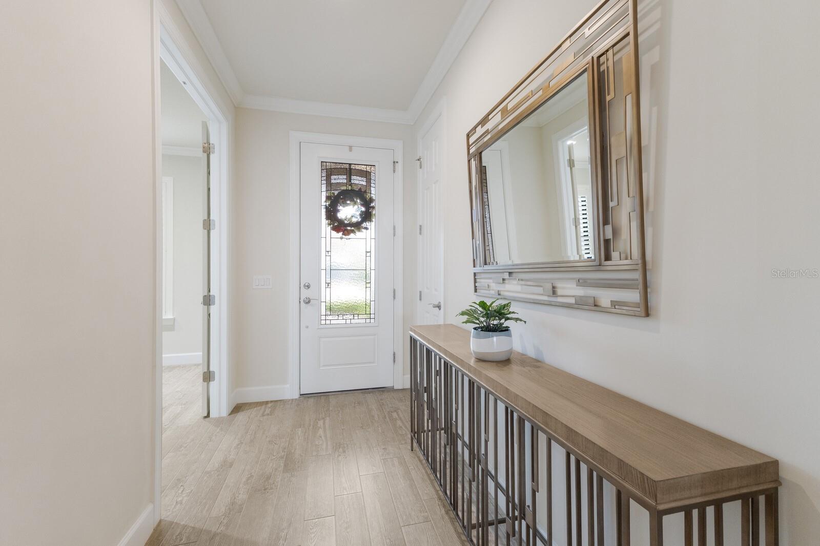 NEW PRICE, this is the one! Welcome to next-level living in this beautifully designed Martin Ray Model, set in the exclusive Del Webb 55+ community of Lakewood Ranch - the nation's top multi-generational hotspot. This stunning home is loaded with custom upgrades, stylish design, and resort-style vibes, perfect for buyers who want the ultimate Florida lifestyle without the hassle of maintenance. With 1,964 sq. ft., this home features 2 bedrooms, 2 bathrooms, and a versatile den in an open, easy-flow floor plan. The den is located off the foyer, allowing for privacy and is a space that effortlessly adapts as a home office, workspace, guest retreat, hobby room, or creative nook--whatever you need it to be. This home is beautifully maintained and looks like a model. Interior upgrades include ceramic plank flooring throughout the entire home in a light/neutral color, neutral paint throughout, plantation shutters on all windows and sliders, crown molding and tall baseboards. Designer lighting lends to the home's style and continuity, all of the extra touches create a seamless flow throughout the entire home. Custom built-in drop zone and closet at entry to garage. Built-in cabinets and laundry tub in the laundry room, which is conveniently located close to the primary bedroom. Owner's suite complete with tray ceiling and ensuite featuring a soaking tub and separate shower, walk-in closet and extra storage. Kitchen dreams start here, it is perfect for foodies, entertainers and everyday convenience with a 10-foot island, separate beverage center and a walk-in pantry. Upgraded stainless steel appliances and gas cooktop, premium cabinets with wood range hood, designer backsplash and under-cabinet lighting. Kinetico water filtration system with water softener. Step outside to your backyard and soak up the Florida Lifestyle. Extended screened-in lanai that is plumbed for an outdoor kitchen and extra outside paver patio area perfect for gardening or to simply watch the beautiful sunsets. Widened paver driveway AND don't miss this garage - there is a complete hobby workshop with countertops and double doors to allow golf cart parking inside, pull-down stairs to access upper and lower storage areas, built-in cabinets and small beverage fridge - this is truly a bonus of quality workmanship. POTENTIAL OPPORTUNITY - This home offers an assumable VA loan with interest rate under 3% (subject to lender/VA approval). Buyer must qualify. Qualified buyers may benefit from favorable terms compared to today's market. The Good Life Starts Here - Elegant, Stylish & Move-In Ready!