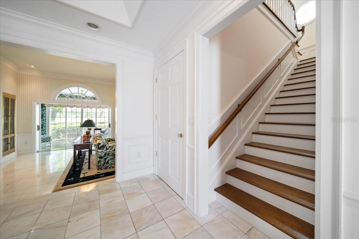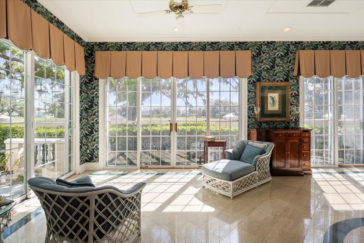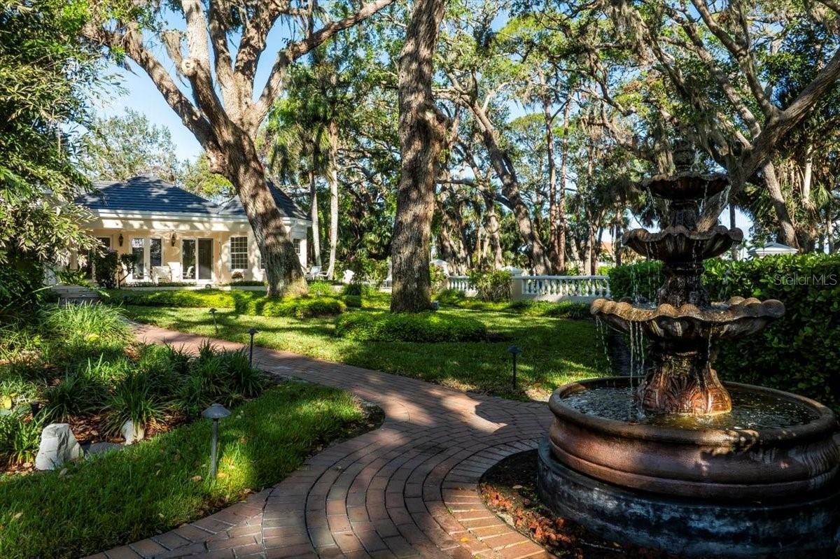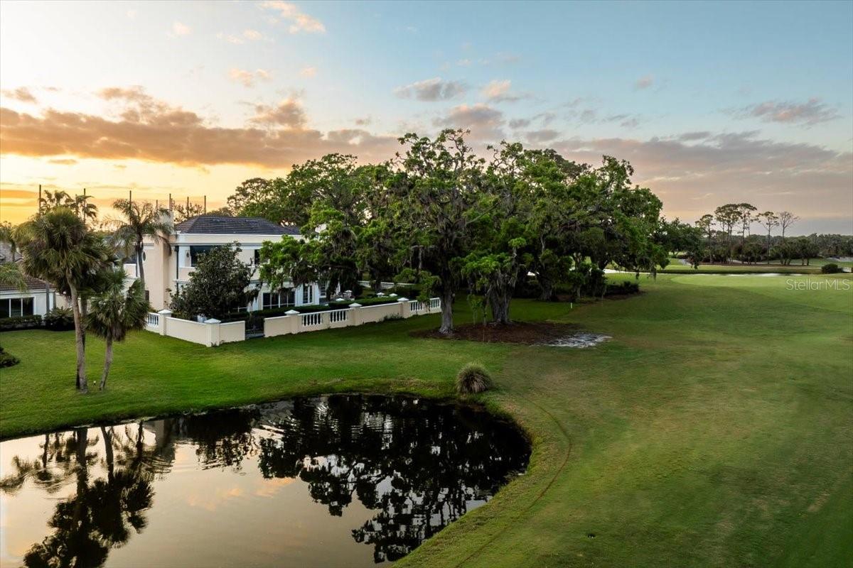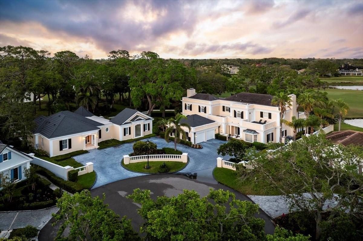 Tucked away in a quiet cul-de-sac on a sprawling double lot beneath majestic oaks, this nearly 5,000 sq ft timeless 2-story residence blends classic elegance with modern luxury. Perfectly positioned on the first hole of one of Sarasota's most sought-after golf courses, the home showcases soaring 11-ft ceilings, gleaming marble floors, and dazzling crystal chandeliers. A Louis XVI fireplace anchors the dramatic sunken living room, while French doors and expansive windows flood the sunroom with natural light and frame sweeping golf course views. Step outside to three inviting patios--ideal for sunset cocktails, lively gatherings, or peaceful mornings overlooking the greens.A brick path winds through lush, manicured gardens to the expansive guest house, creating a true family compound that offers exceptional flexibility for hosting guests or multigenerational living.The nearly 2,000 sq ft guest house features 2 bedrooms, 2 en-suite bathrooms, a generous living room, dining room, outdoor kitchen, and a private laundry room. Overlooking the sparkling pool and spa, this retreat combines privacy with convenience--perfect for extended stays, visiting family, or an in-law suite.The Oaks Club elevates the lifestyle even further with two 18-hole championship golf courses, fitness center, exceptional dining options, a vibrant calendar of social events, and world-class tennis and pickleball facilities. Ideally located near Casey Key and the powdery white sands of Siesta Key, and just a short drive to Downtown Sarasota's thriving arts scene and the boutiques of St. Armands Circle. Membership at The Oaks is required.