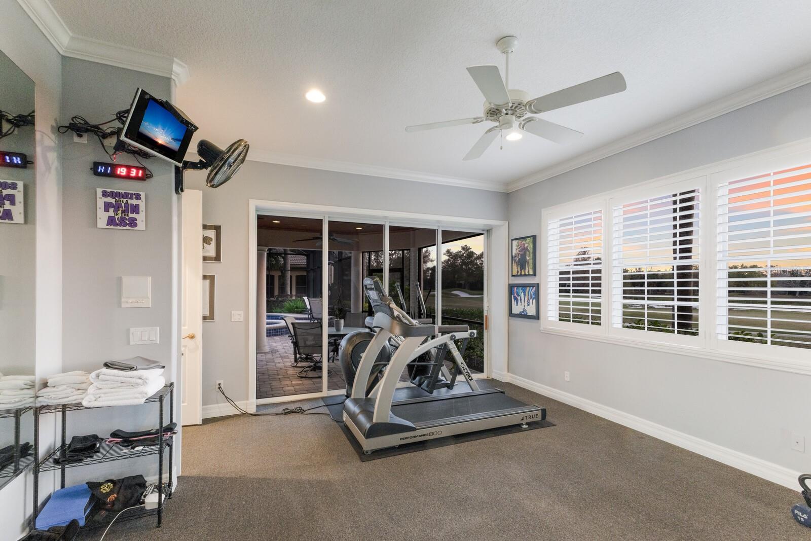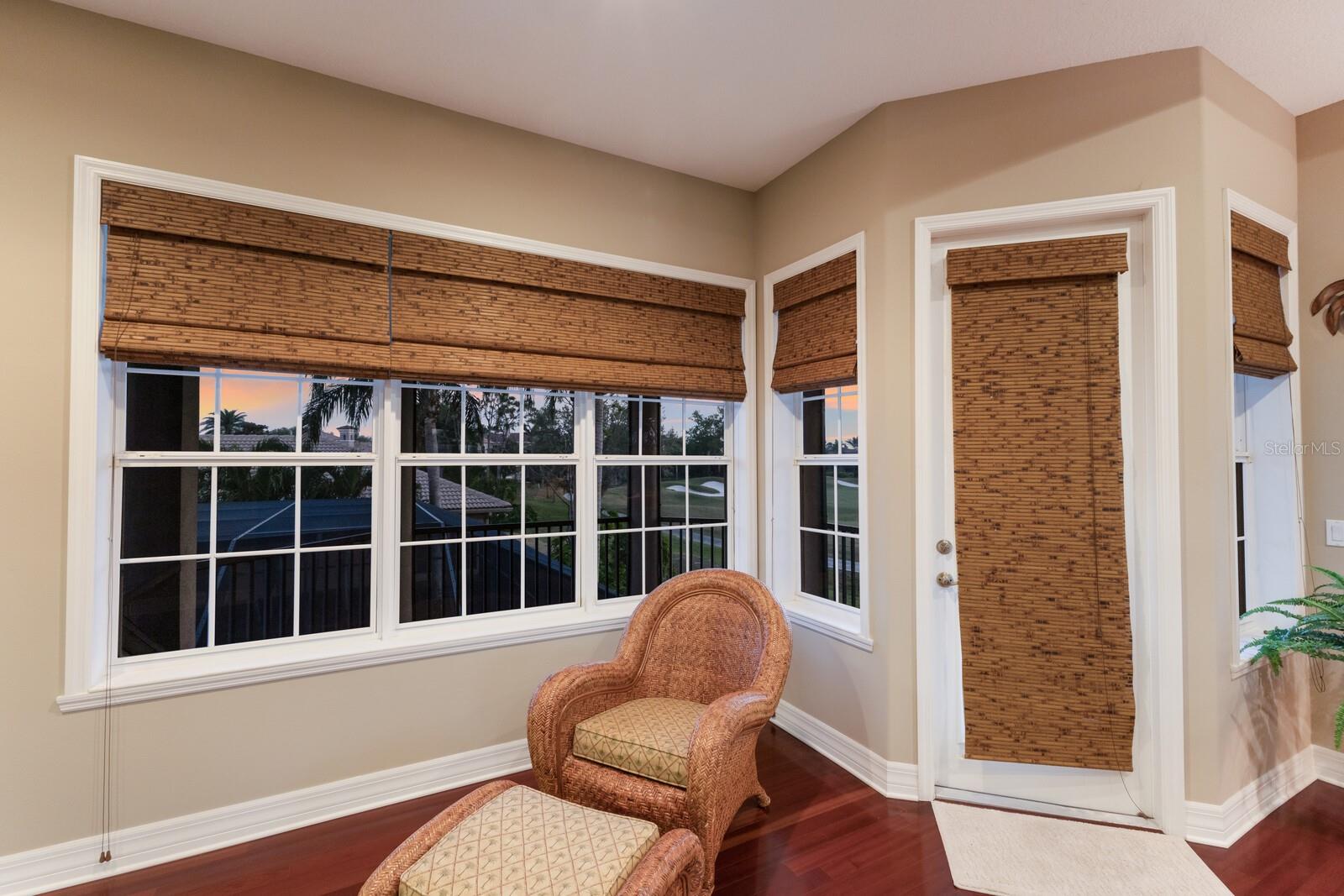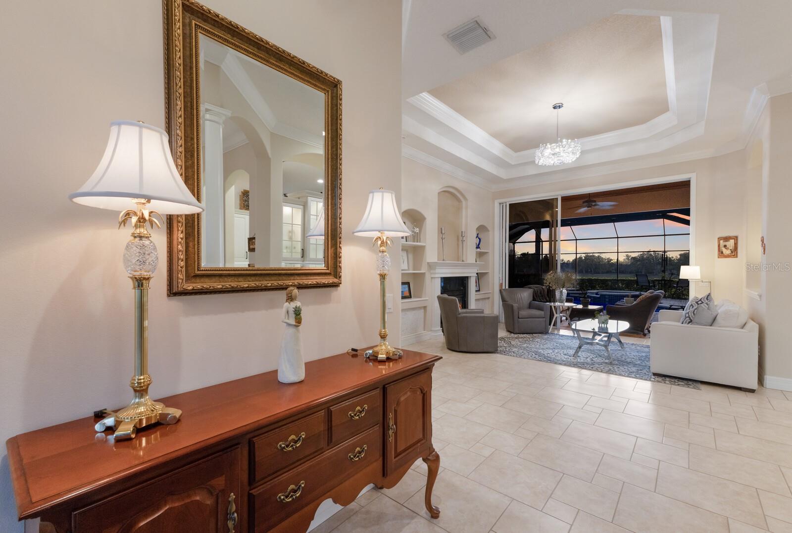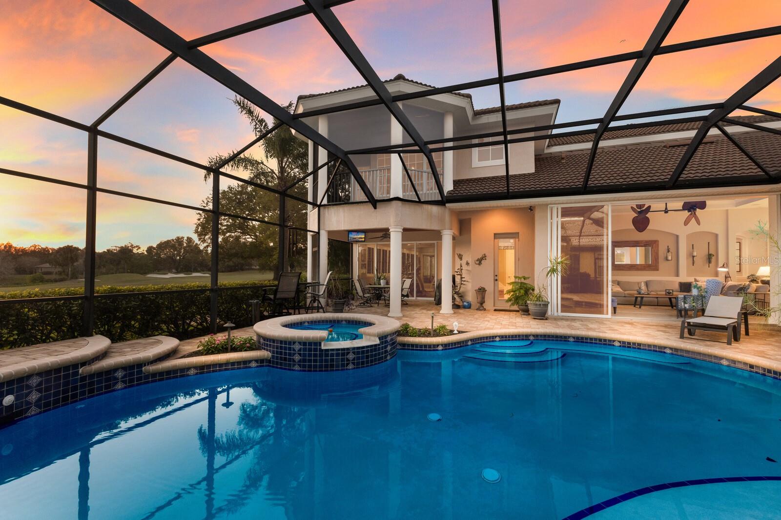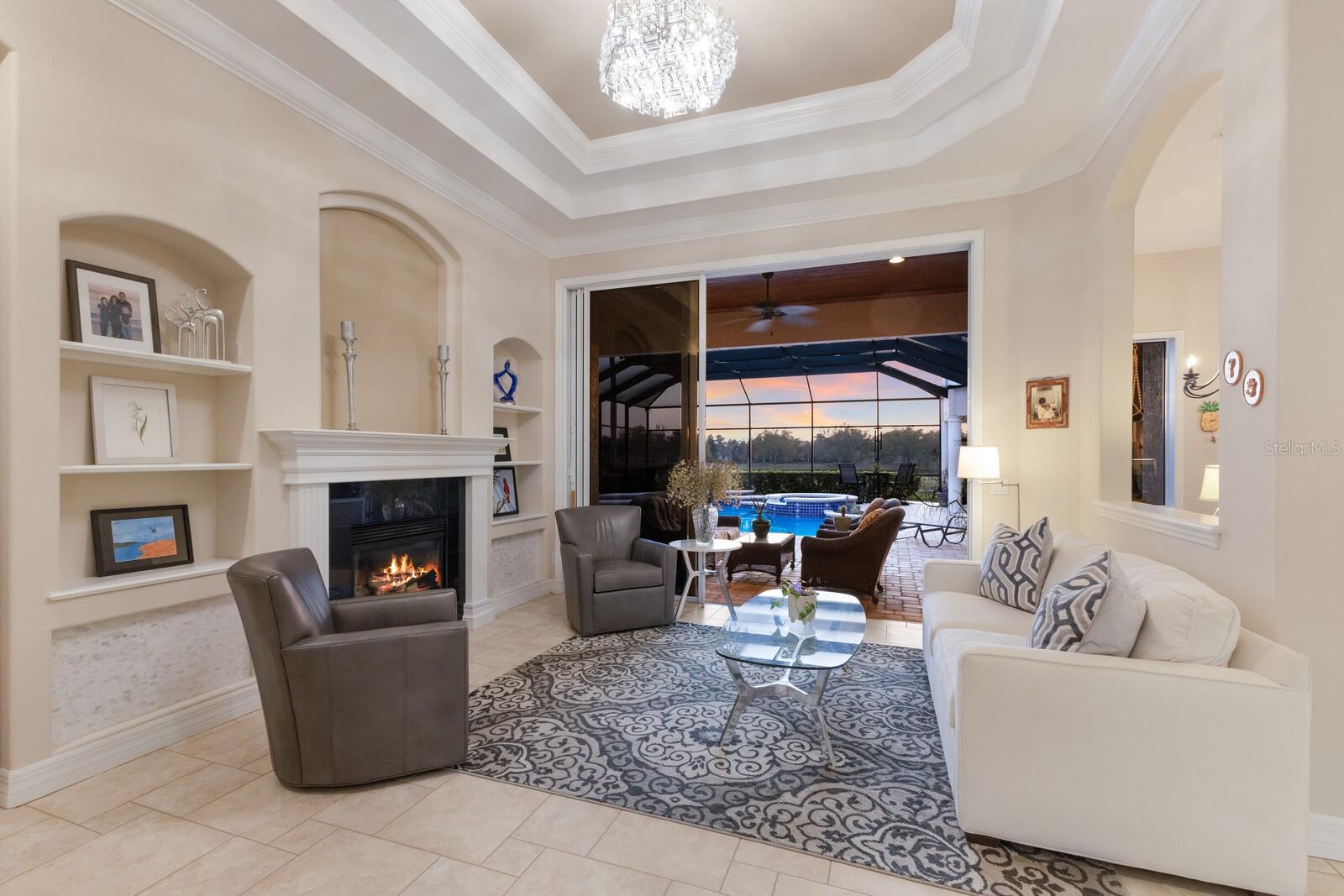 This stunning custom-built Peregrine home is perfectly positioned on one of the most sought-after homesites in Lakewood Ranch Golf & CC! Located on the Arnold Palmer designed Cypress Links #7, it offers breathtaking golf & water views. From the moment you arrive, the impressive curb appeal, circular drive & lush landscape set the stage for the elegance that awaits. Beautiful double glass doors open into a bright & welcoming foyer guiding you to the main living spaces. To the right, you'll find the formal dining area -perfect for hosting elegant dinners & to the left, a private office with French doors, hardwood floors & custom built-ins. Designed for both comfort & sophistication, the living room features a cozy fireplace, tray ceilings & a wall of sliders that draw your eye to the picturesque outdoors. A butler's pantry with ample storage seamlessly connects the dining room to the newly remodeled kitchen, offering both style & functionality. It features an abundance of solid wood cabinetry, new backsplash, stainless appliances, granite countertops, double ovens, a breakfast bar & a spacious walk-in pantry. It also includes a charming eat-in area with a large aquarium window, offering the perfect spot to enjoy a morning coffee. Off the kitchen, the great room is an inviting space for family gatherings with built-in entertainment wall, tile floors, crown moldings, tray ceilings, architectural niches & sliders that bring the tropical outdoors in! At the rear of the home, a generous sized bonus room (currently used as a home gym) provides endless possibilities & is located next to a convenient pool bath. The luxurious primary suite offers a private retreat with a serene sitting area & windows that frame the amazing views. The recently remodeled ensuite bath is a true spa-like escape, featuring double quartz vanities, a huge walk-in shower & an elegant soaking tub. There are TWO walk-in closets with extensive built-in cabinetry providing ample storage, while glass block windows fill the space with natural light. The home's 2nd & 3rd bedrooms share a beautifully remodeled Jack-and-Jill bath with dual quartz vanities, seamless glass shower doors & new fixtures. Both bedrooms exude charm with hand-scraped wood floors, built-in window seats & walk-in closets with custom storage solutions. A beautiful hardwood staircase leads to an incredible second-level bonus suite, ideal for an in-law arrangement or private guest retreat. This space features a spacious living area with blackout blinds, a wet bar with fridge, a 4th bedroom & a full bath! A large 2nd floor screened-in balcony offers a peaceful place to sip a glass of wine while overlooking the tranquil natural surroundings. Designed for Florida's coveted indoor-outdoor lifestyle, this home boasts an expansive outdoor space with 2 covered areas adorned with cypress ceilings, perfect for relaxing or dining al fresco. A stunning heated pool with sun deck & spa create the ultimate backyard oasis. Bonus of a 3-car garage offering ample storage & epoxy flooring. LWR Golf & CC offers Social, Athletic & Golf memberships which are all OPTIONAL. These include FOUR 18-hole championship courses, a state-of-the-art fitness center, a junior Olympic pool, tennis, pickleball, dining, social activities year-round & MORE! Enjoy close proximity to endless shopping, incredible restaurants, vibrant arts, easy access to I-75, top-notch healthcare, A-rated schools & our award-winning area beaches!