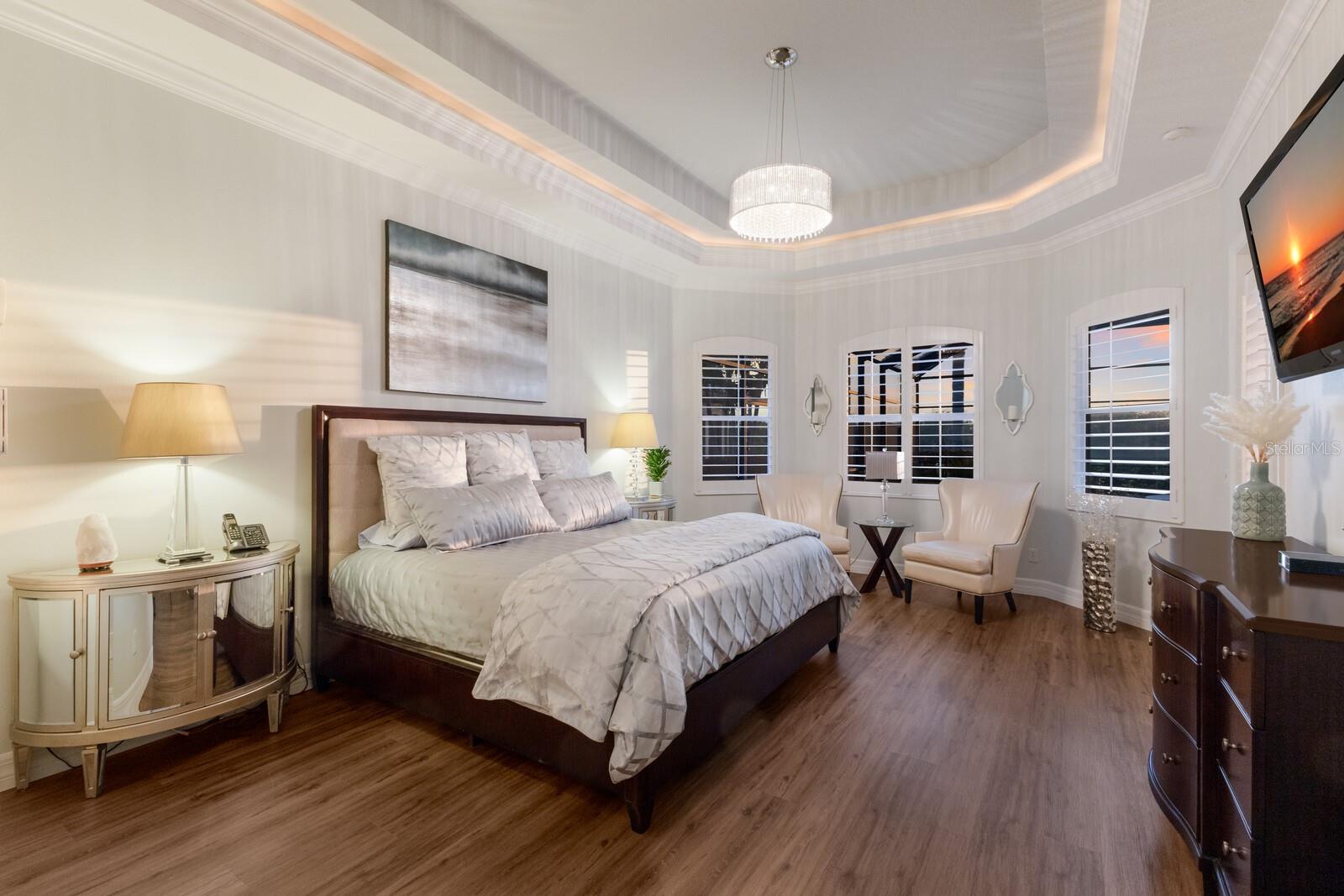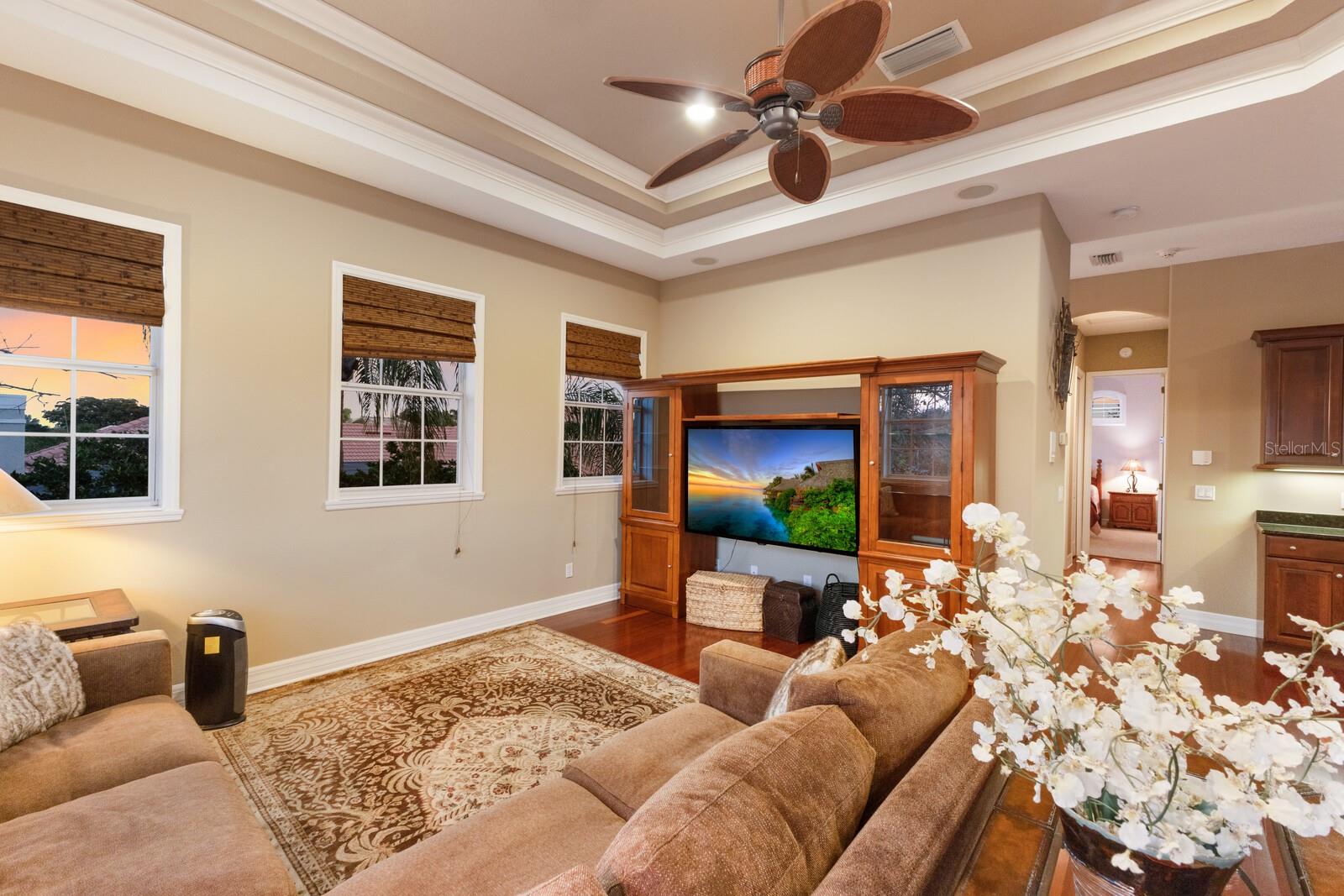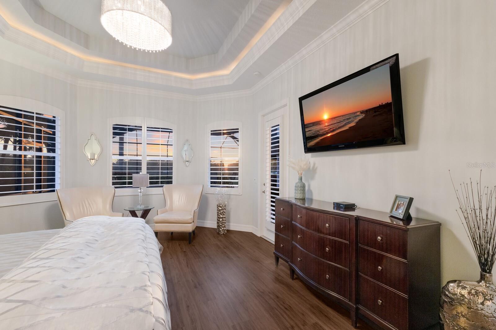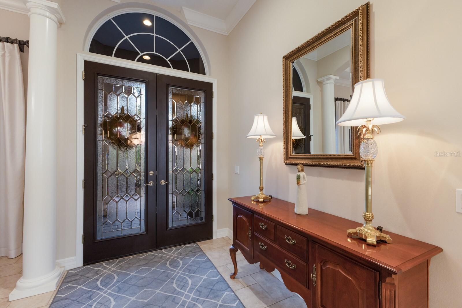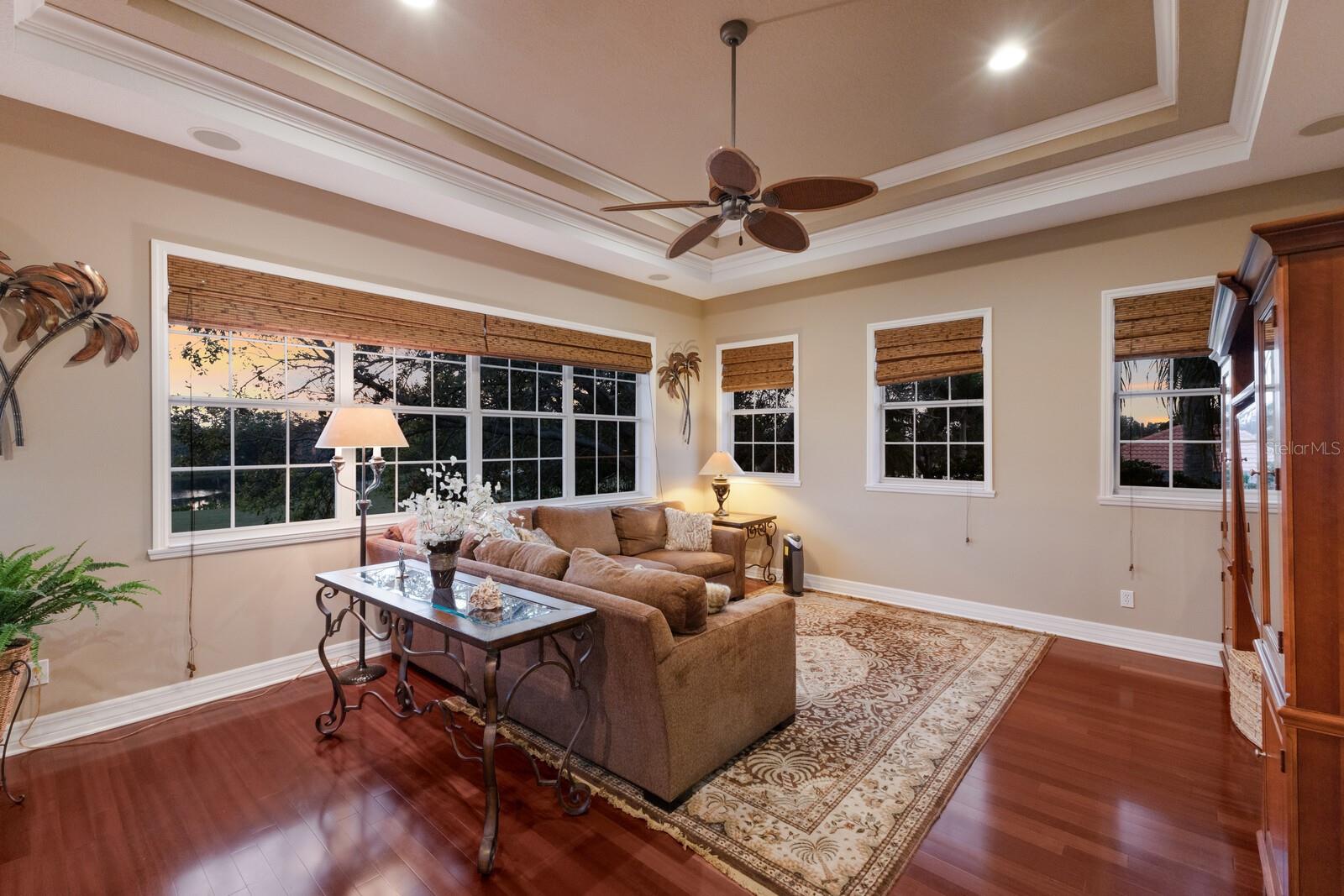This stunning custom-built Peregrine home is perfectly positioned on one of the most sought-after homesites in Lakewood Ranch Golf & CC! Located on the Arnold Palmer designed Cypress Links #7, it offers breathtaking golf & water views. From the moment you arrive, the impressive curb appeal, circular drive & lush landscape set the stage for the elegance that awaits. Beautiful double glass doors open into a bright & welcoming foyer guiding you to the main living spaces. To the right, you'll find the formal dining area -perfect for hosting elegant dinners & to the left, a private office with French doors, hardwood floors & custom built-ins. Designed for both comfort & sophistication, the living room features a cozy fireplace, tray ceilings & a wall of sliders that draw your eye to the picturesque outdoors. A butler's pantry with ample storage seamlessly connects the dining room to the newly remodeled kitchen, offering both style & functionality. It features an abundance of solid wood cabinetry, new backsplash, stainless appliances, granite countertops, double ovens, a breakfast bar & a spacious walk-in pantry. It also includes a charming eat-in area with a large aquarium window, offering the perfect spot to enjoy a morning coffee. Off the kitchen, the great room is an inviting space for family gatherings with built-in entertainment wall, tile floors, crown moldings, tray ceilings, architectural niches & sliders that bring the tropical outdoors in! At the rear of the home, a generous sized bonus room (currently used as a home gym) provides endless possibilities & is located next to a convenient pool bath. The luxurious primary suite offers a private retreat with a serene sitting area & windows that frame the amazing views. The recently remodeled ensuite bath is a true spa-like escape, featuring double quartz vanities, a huge walk-in shower & an elegant soaking tub. There are TWO walk-in closets with extensive built-in cabinetry providing ample storage, while glass block windows fill the space with natural light. The home's 2nd & 3rd bedrooms share a beautifully remodeled Jack-and-Jill bath with dual quartz vanities, seamless glass shower doors & new fixtures. Both bedrooms exude charm with hand-scraped wood floors, built-in window seats & walk-in closets with custom storage solutions. A beautiful hardwood staircase leads to an incredible second-level bonus suite, ideal for an in-law arrangement or private guest retreat. This space features a spacious living area with blackout blinds, a wet bar with fridge, a 4th bedroom & a full bath! A large 2nd floor screened-in balcony offers a peaceful place to sip a glass of wine while overlooking the tranquil natural surroundings. Designed for Florida's coveted indoor-outdoor lifestyle, this home boasts an expansive outdoor space with 2 covered areas adorned with cypress ceilings, perfect for relaxing or dining al fresco. A stunning heated pool with sun deck & spa create the ultimate backyard oasis. Bonus of a 3-car garage offering ample storage & epoxy flooring. LWR Golf & CC offers Social, Athletic & Golf memberships which are all OPTIONAL. These include FOUR 18-hole championship courses, a state-of-the-art fitness center, a junior Olympic pool, tennis, pickleball, dining, social activities year-round & MORE! Enjoy close proximity to endless shopping, incredible restaurants, vibrant arts, easy access to I-75, top-notch healthcare, A-rated schools & our award-winning area beaches!