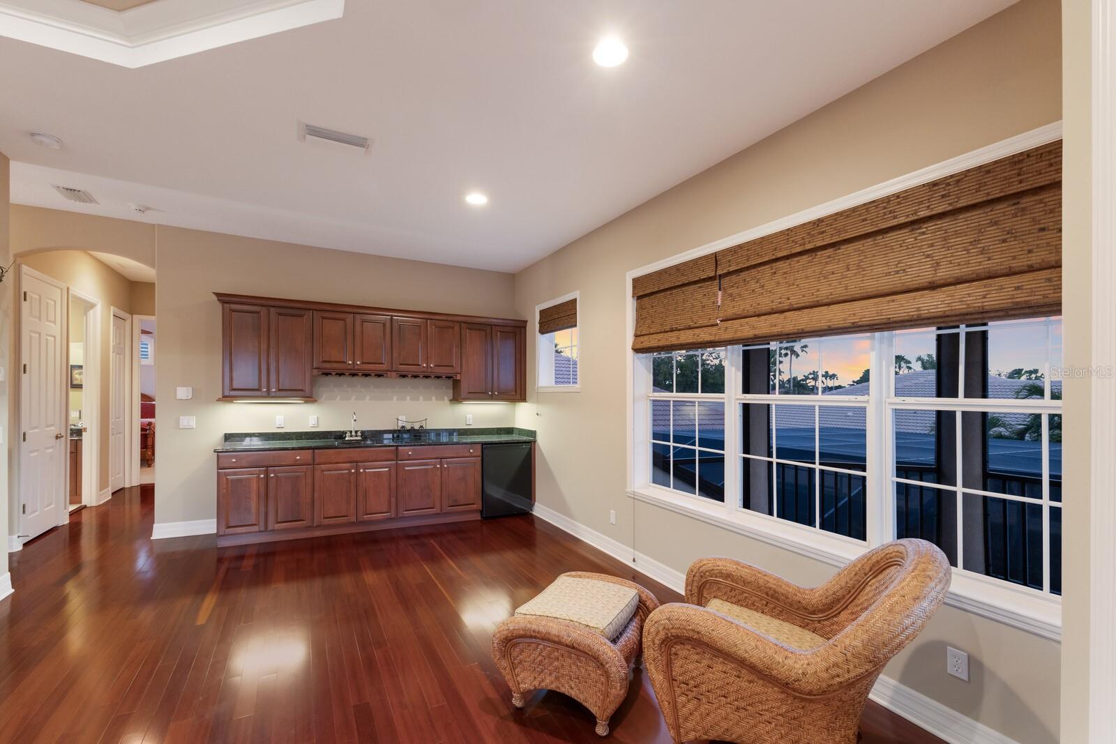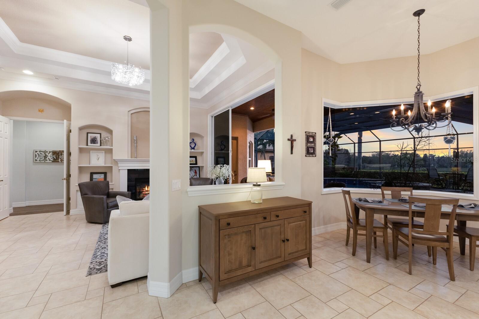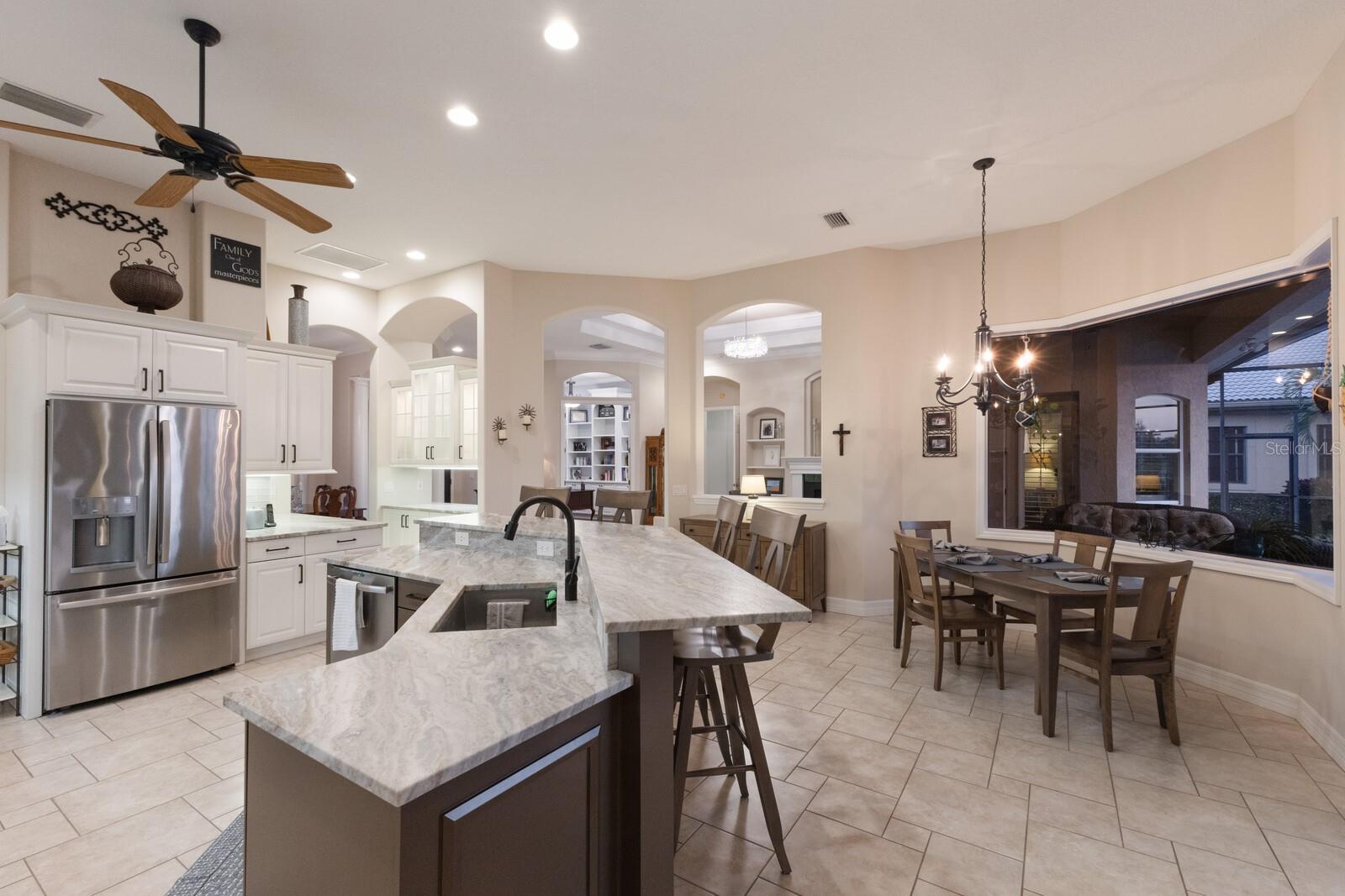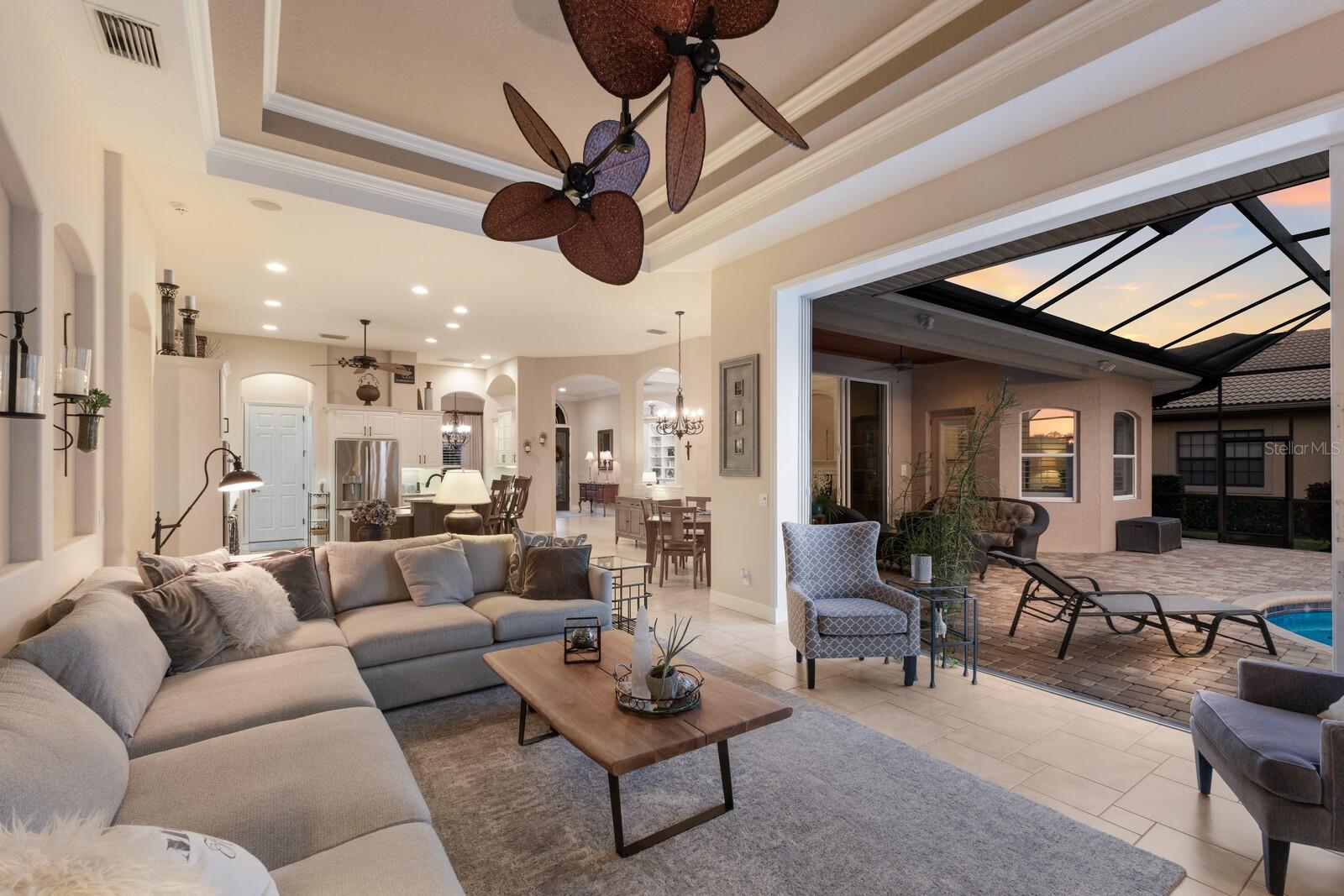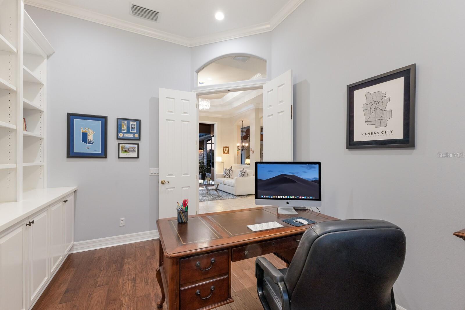 This stunning custom-built Peregrine home is perfectly positioned on one of the most sought-after homesites in Lakewood Ranch Golf & CC! Located on the Arnold Palmer designed Cypress Links #7, it offers breathtaking golf & water views. From the moment you arrive, the impressive curb appeal, circular drive & lush landscape set the stage for the elegance that awaits. Beautiful double glass doors open into a bright & welcoming foyer guiding you to the main living spaces. To the right, you'll find the formal dining area -perfect for hosting elegant dinners & to the left, a private office with French doors, hardwood floors & custom built-ins. Designed for both comfort & sophistication, the living room features a cozy fireplace, tray ceilings & a wall of sliders that draw your eye to the picturesque outdoors. A butler's pantry with ample storage seamlessly connects the dining room to the newly remodeled kitchen, offering both style & functionality. It features an abundance of solid wood cabinetry, new backsplash, stainless appliances, granite countertops, double ovens, a breakfast bar & a spacious walk-in pantry. It also includes a charming eat-in area with a large aquarium window, offering the perfect spot to enjoy a morning coffee. Off the kitchen, the great room is an inviting space for family gatherings with built-in entertainment wall, tile floors, crown moldings, tray ceilings, architectural niches & sliders that bring the tropical outdoors in! At the rear of the home, a generous sized bonus room (currently used as a home gym) provides endless possibilities & is located next to a convenient pool bath. The luxurious primary suite offers a private retreat with a serene sitting area & windows that frame the amazing views. The recently remodeled ensuite bath is a true spa-like escape, featuring double quartz vanities, a huge walk-in shower & an elegant soaking tub. There are TWO walk-in closets with extensive built-in cabinetry providing ample storage, while glass block windows fill the space with natural light. The home's 2nd & 3rd bedrooms share a beautifully remodeled Jack-and-Jill bath with dual quartz vanities, seamless glass shower doors & new fixtures. Both bedrooms exude charm with hand-scraped wood floors, built-in window seats & walk-in closets with custom storage solutions. A beautiful hardwood staircase leads to an incredible second-level bonus suite, ideal for an in-law arrangement or private guest retreat. This space features a spacious living area with blackout blinds, a wet bar with fridge, a 4th bedroom & a full bath! A large 2nd floor screened-in balcony offers a peaceful place to sip a glass of wine while overlooking the tranquil natural surroundings. Designed for Florida's coveted indoor-outdoor lifestyle, this home boasts an expansive outdoor space with 2 covered areas adorned with cypress ceilings, perfect for relaxing or dining al fresco. A stunning heated pool with sun deck & spa create the ultimate backyard oasis. Bonus of a 3-car garage offering ample storage & epoxy flooring. LWR Golf & CC offers Social, Athletic & Golf memberships which are all OPTIONAL. These include FOUR 18-hole championship courses, a state-of-the-art fitness center, a junior Olympic pool, tennis, pickleball, dining, social activities year-round & MORE! Enjoy close proximity to endless shopping, incredible restaurants, vibrant arts, easy access to I-75, top-notch healthcare, A-rated schools & our award-winning area beaches!