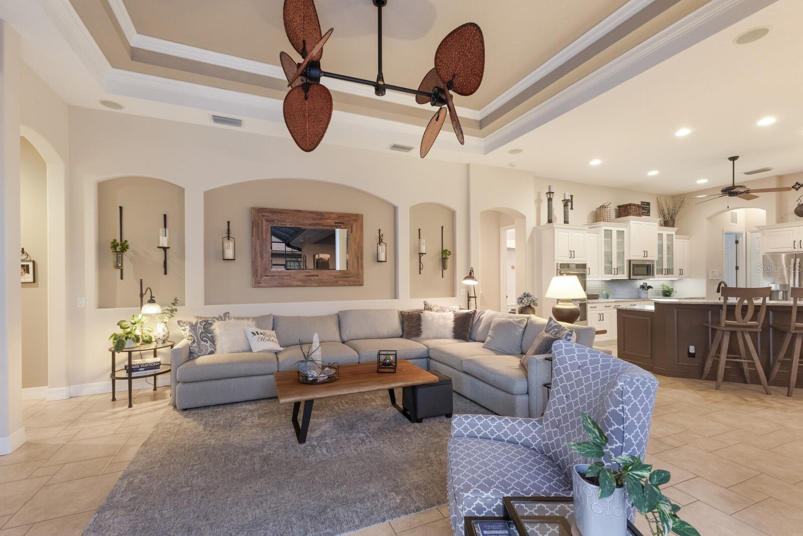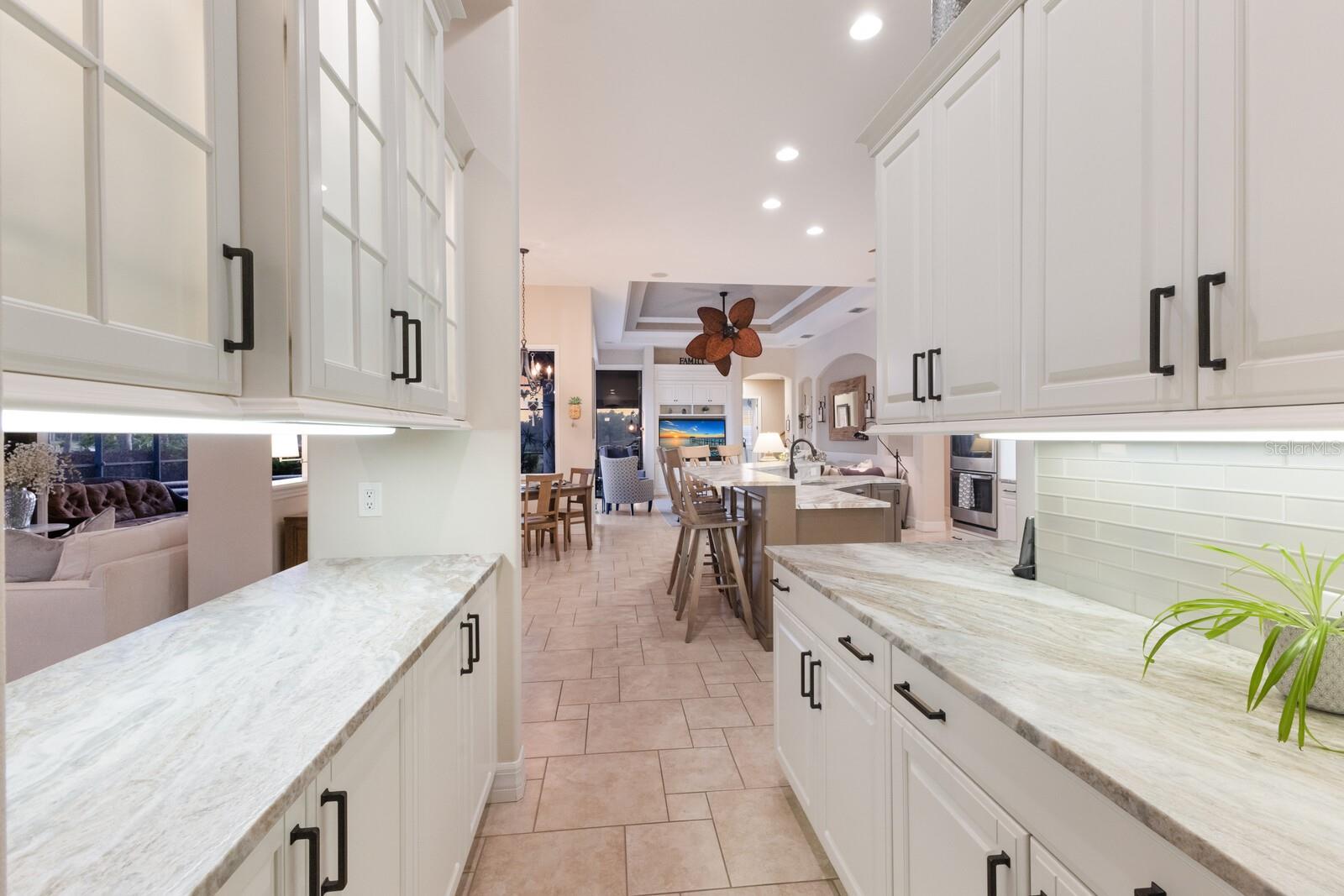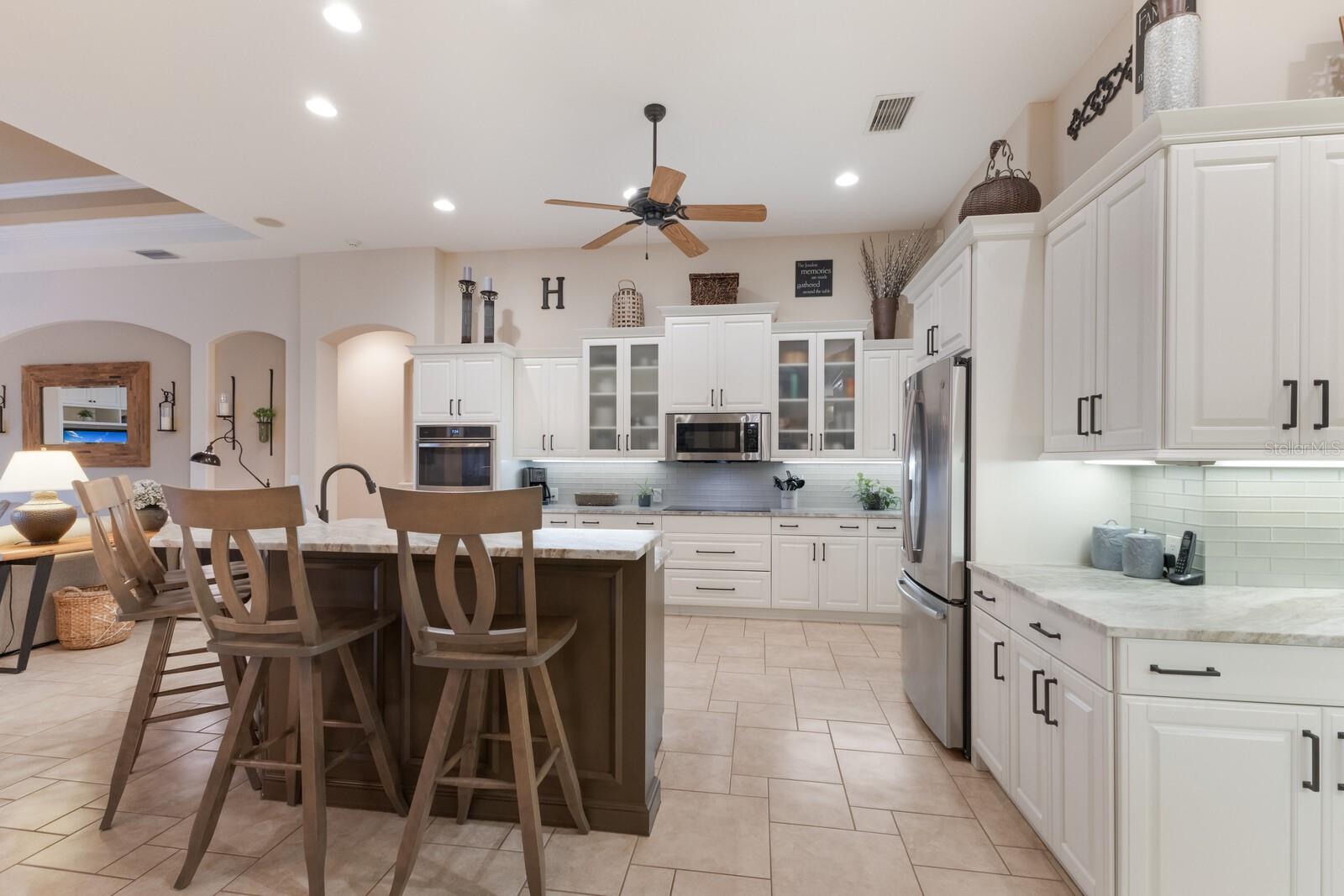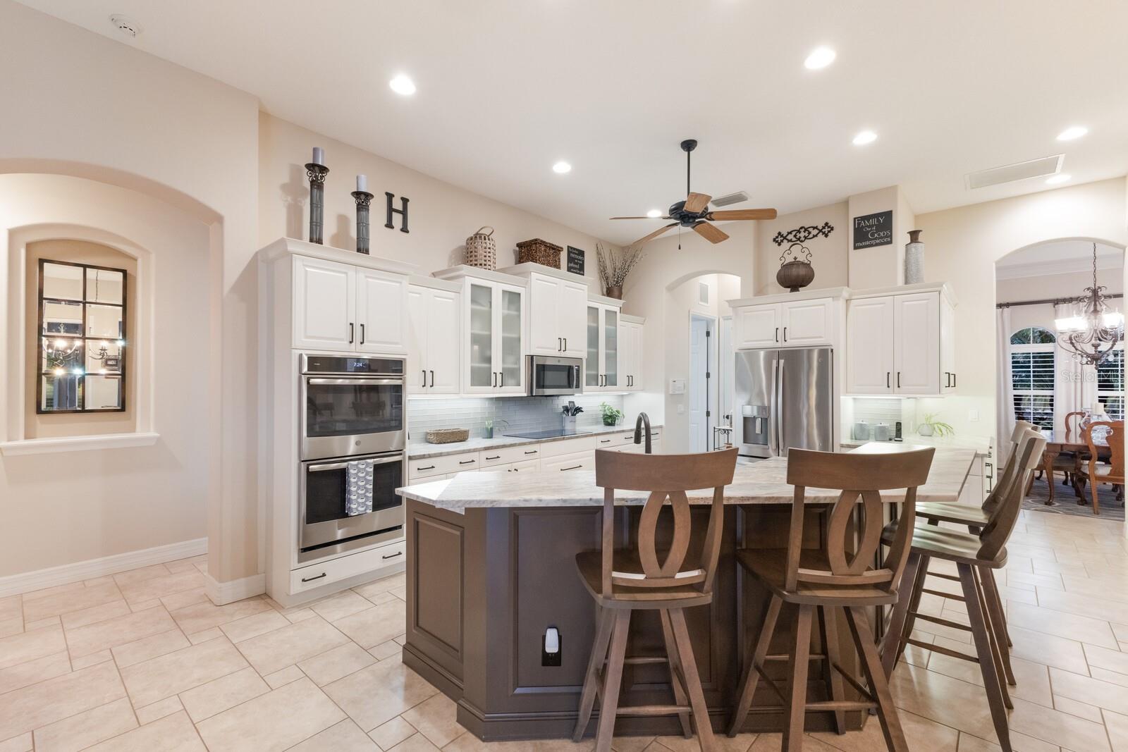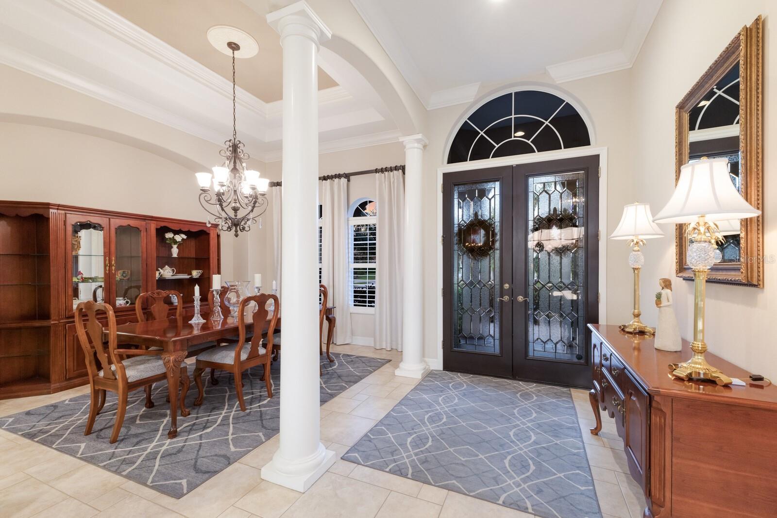 This stunning custom-built Peregrine home is perfectly positioned on one of the most sought-after homesites in Lakewood Ranch Golf & CC! Located on the Arnold Palmer designed Cypress Links #7, it offers breathtaking golf & water views. From the moment you arrive, the impressive curb appeal, circular drive & lush landscape set the stage for the elegance that awaits. Beautiful double glass doors open into a bright & welcoming foyer guiding you to the main living spaces. To the right, you'll find the formal dining area -perfect for hosting elegant dinners & to the left, a private office with French doors, hardwood floors & custom built-ins. Designed for both comfort & sophistication, the living room features a cozy fireplace, tray ceilings & a wall of sliders that draw your eye to the picturesque outdoors. A butler's pantry with ample storage seamlessly connects the dining room to the newly remodeled kitchen, offering both style & functionality. It features an abundance of solid wood cabinetry, new backsplash, stainless appliances, granite countertops, double ovens, a breakfast bar & a spacious walk-in pantry. It also includes a charming eat-in area with a large aquarium window, offering the perfect spot to enjoy a morning coffee. Off the kitchen, the great room is an inviting space for family gatherings with built-in entertainment wall, tile floors, crown moldings, tray ceilings, architectural niches & sliders that bring the tropical outdoors in! At the rear of the home, a generous sized bonus room (currently used as a home gym) provides endless possibilities & is located next to a convenient pool bath. The luxurious primary suite offers a private retreat with a serene sitting area & windows that frame the amazing views. The recently remodeled ensuite bath is a true spa-like escape, featuring double quartz vanities, a huge walk-in shower & an elegant soaking tub. There are TWO walk-in closets with extensive built-in cabinetry providing ample storage, while glass block windows fill the space with natural light. The home's 2nd & 3rd bedrooms share a beautifully remodeled Jack-and-Jill bath with dual quartz vanities, seamless glass shower doors & new fixtures. Both bedrooms exude charm with hand-scraped wood floors, built-in window seats & walk-in closets with custom storage solutions. A beautiful hardwood staircase leads to an incredible second-level bonus suite, ideal for an in-law arrangement or private guest retreat. This space features a spacious living area with blackout blinds, a wet bar with fridge, a 4th bedroom & a full bath! A large 2nd floor screened-in balcony offers a peaceful place to sip a glass of wine while overlooking the tranquil natural surroundings. Designed for Florida's coveted indoor-outdoor lifestyle, this home boasts an expansive outdoor space with 2 covered areas adorned with cypress ceilings, perfect for relaxing or dining al fresco. A stunning heated pool with sun deck & spa create the ultimate backyard oasis. Bonus of a 3-car garage offering ample storage & epoxy flooring. LWR Golf & CC offers Social, Athletic & Golf memberships which are all OPTIONAL. These include FOUR 18-hole championship courses, a state-of-the-art fitness center, a junior Olympic pool, tennis, pickleball, dining, social activities year-round & MORE! Enjoy close proximity to endless shopping, incredible restaurants, vibrant arts, easy access to I-75, top-notch healthcare, A-rated schools & our award-winning area beaches!