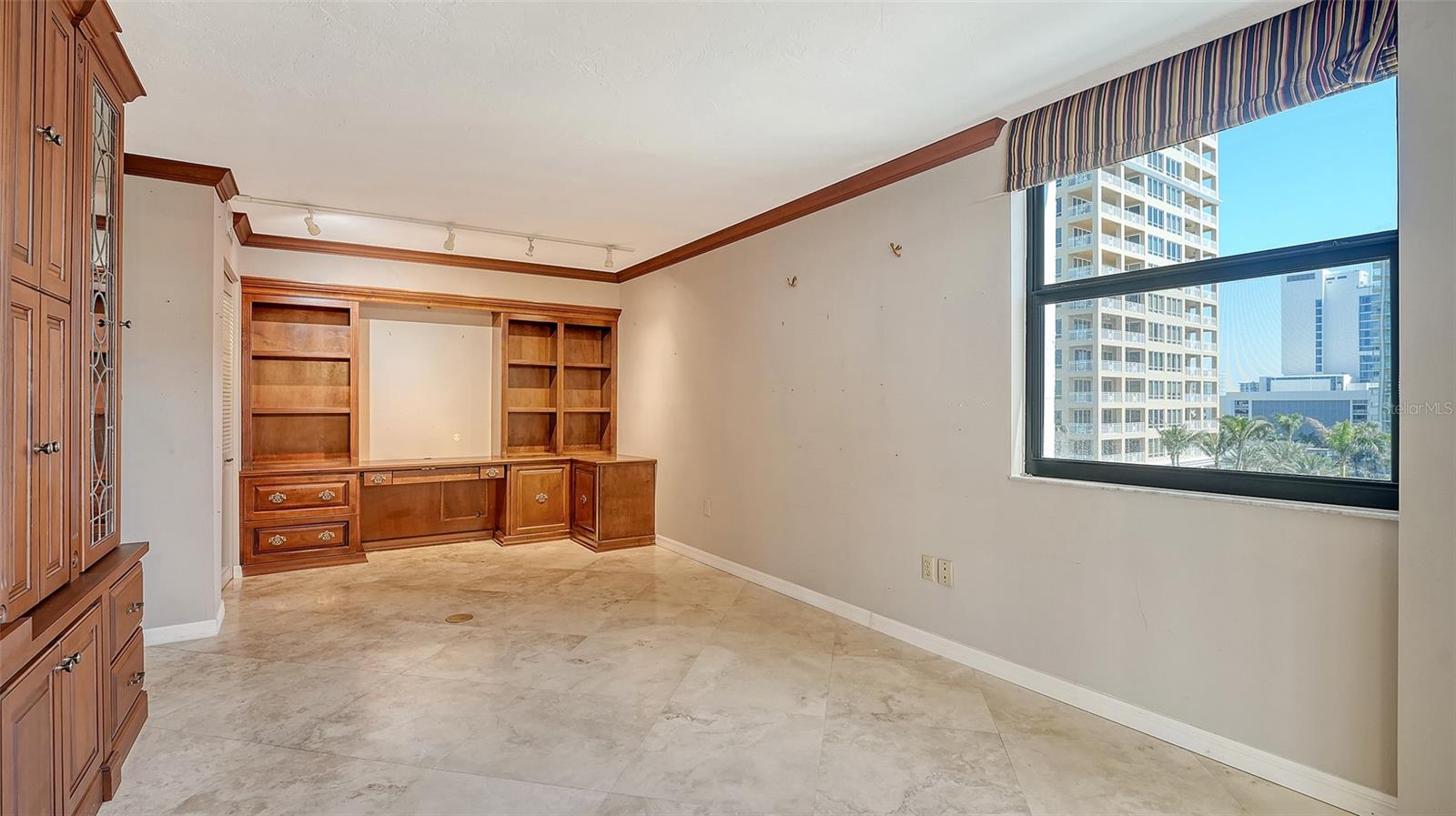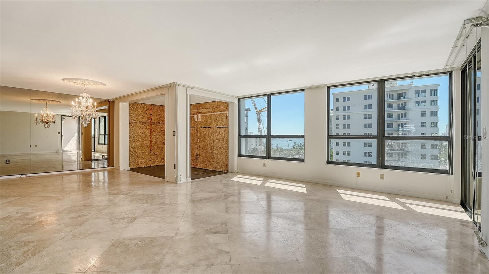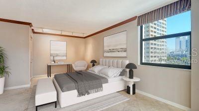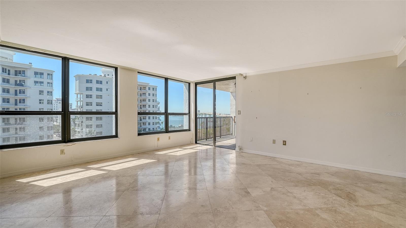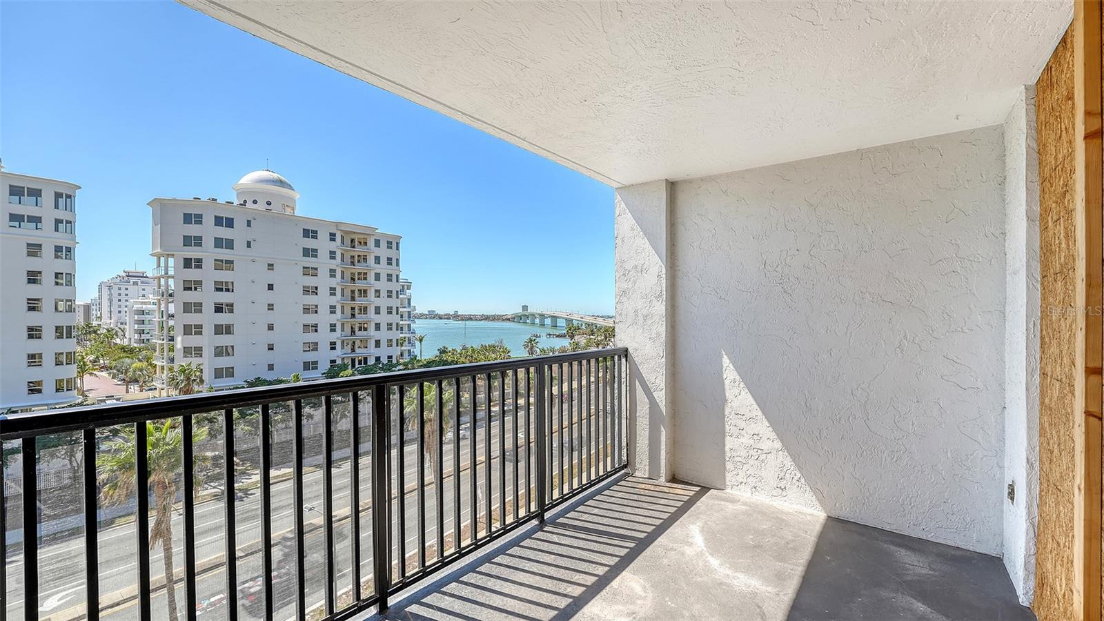 One or more photo(s) has been virtually staged. Don't miss this excellent opportunity to create your own downtown bay front home in one of the city's most valuable locations. Sunset Towers, which is named for the amazing sunsets we treasure every day, boasts a bay front saltwater pool, direct waterfrontage, a beautiful, elevated sun deck to enjoy the breezes off the bay, a private fitness center, a grilling and picnic area, kayak storage with water access and even a small beach. This fifth-floor corner unit captures one of the best locations in the building with views stretching from the waters of Sarasota Bay to the lights of the graceful arch of the Ringling Bridge and islands on the Gulf. Ready for your personal touches, this unit has marble floors, a previously redone kitchen with a pantry & stone counter, redone master and guest baths, two spacious split bedrooms, one with custom wood built-ins and a balcony. Located in the heart of downtown, residents of Sunset Towers enjoy an urban lifestyle with water and outdoor recreation, dining, theater, open air markets, art galleries, museums, boat parades, outdoor concerts, shopping and the myriad of the city's ever-changing activities at your doorstep. And Sunset Towers is a pet friendly building.