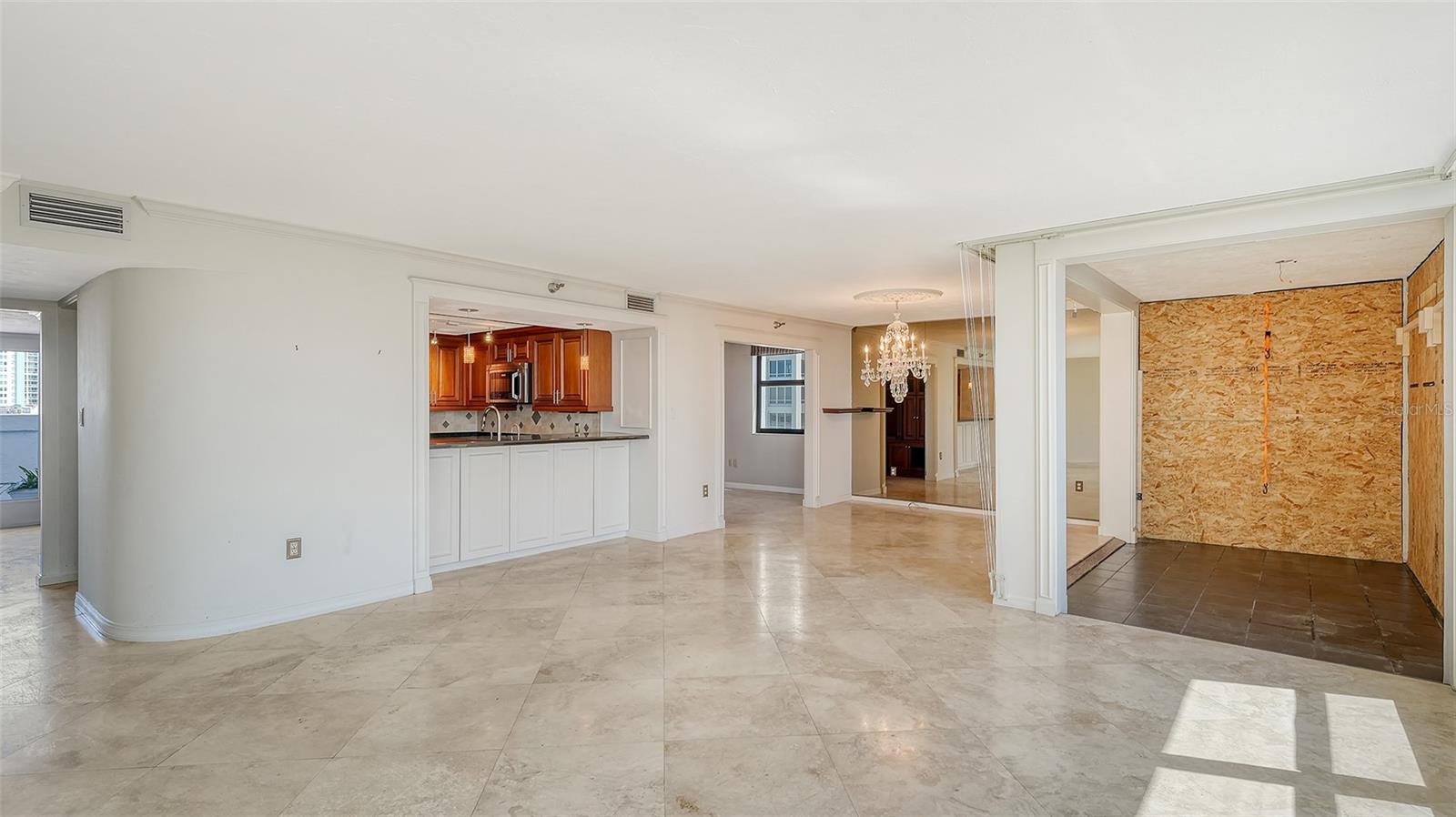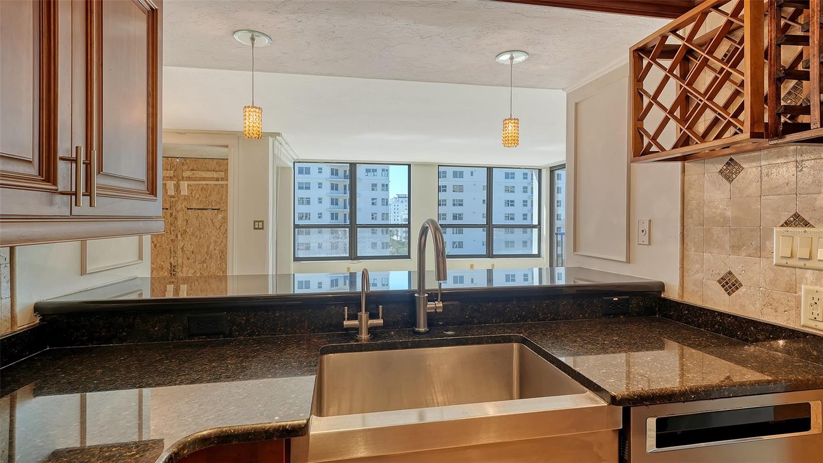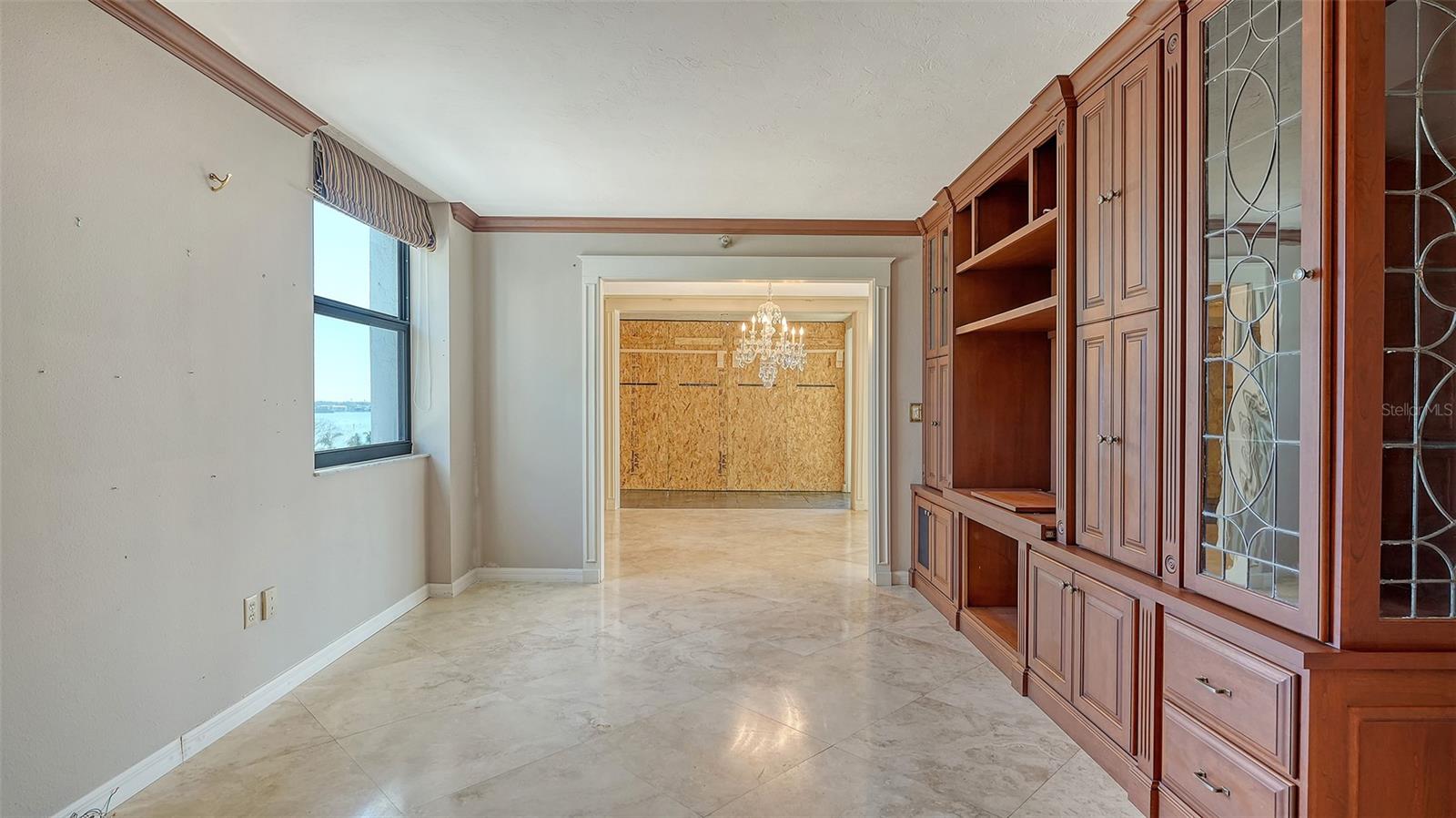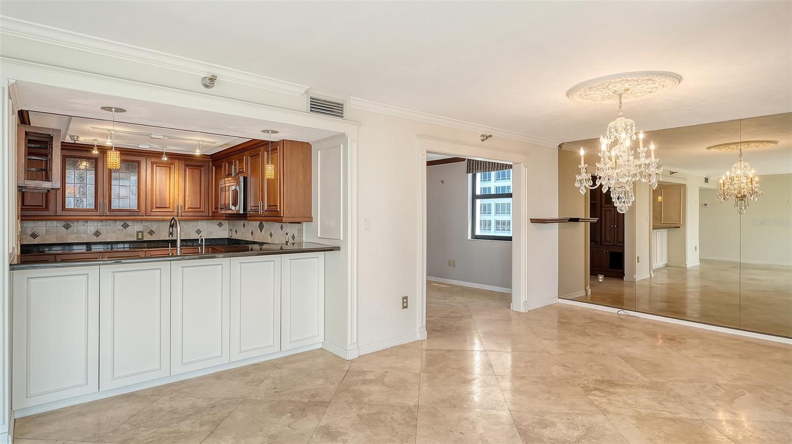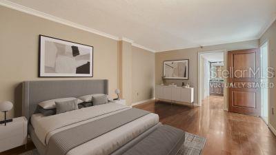One or more photo(s) has been virtually staged. Don't miss this excellent opportunity to create your own downtown bay front home in one of the city's most valuable locations. Sunset Towers, which is named for the amazing sunsets we treasure every day, boasts a bay front saltwater pool, direct waterfrontage, a beautiful, elevated sun deck to enjoy the breezes off the bay, a private fitness center, a grilling and picnic area, kayak storage with water access and even a small beach. This fifth-floor corner unit captures one of the best locations in the building with views stretching from the waters of Sarasota Bay to the lights of the graceful arch of the Ringling Bridge and islands on the Gulf. Ready for your personal touches, this unit has marble floors, a previously redone kitchen with a pantry & stone counter, redone master and guest baths, two spacious split bedrooms, one with custom wood built-ins and a balcony. Located in the heart of downtown, residents of Sunset Towers enjoy an urban lifestyle with water and outdoor recreation, dining, theater, open air markets, art galleries, museums, boat parades, outdoor concerts, shopping and the myriad of the city's ever-changing activities at your doorstep. And Sunset Towers is a pet friendly building.