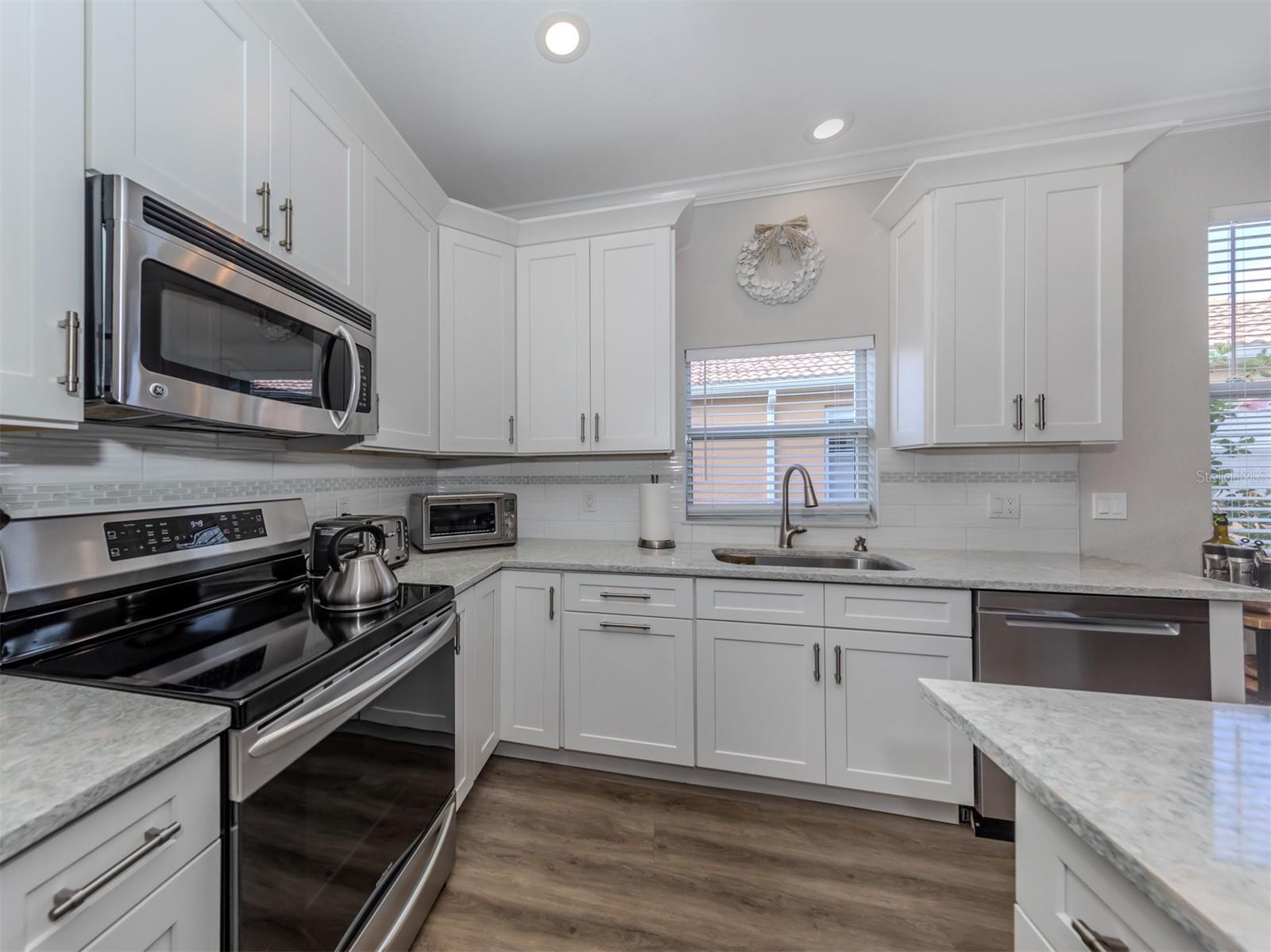 Brand new tile roof installed December 2024. Welcome to the serene Stonybrook community, where modern elegance meets spacious comfort in this stunning 3-bedroom plus large den/office, 2-bathroom property. Nestled amidst pristine surroundings, this home boasts a generous floor plan with ample storage space throughout, including extra storage with shelving and ceiling racks installed in the garage. The heart of the home features a gorgeous island, complemented by sleek cabinets, an induction range with air fryer, and quartz countertops installed in the laundry area with washer and dryer. Step outside to discover the ultimate oasis, complete with new landscaping and irrigation system, along with a brand new enclosure surrounding the inviting pool, finished with a pristine surface around the lanai with a waterview. Additional highlights include a newer pool heater for year-round enjoyment, newer AC system with air purification for optimal efficiency and better air quality, and extra wide gutters around the entire roof for added convenience. All of this with low association dues, ensuring both luxury and affordability. Office can be converted into another bedroom. Welcome to your dream home! https://player.vimeo.com/video/939603257?h=c2def308f1