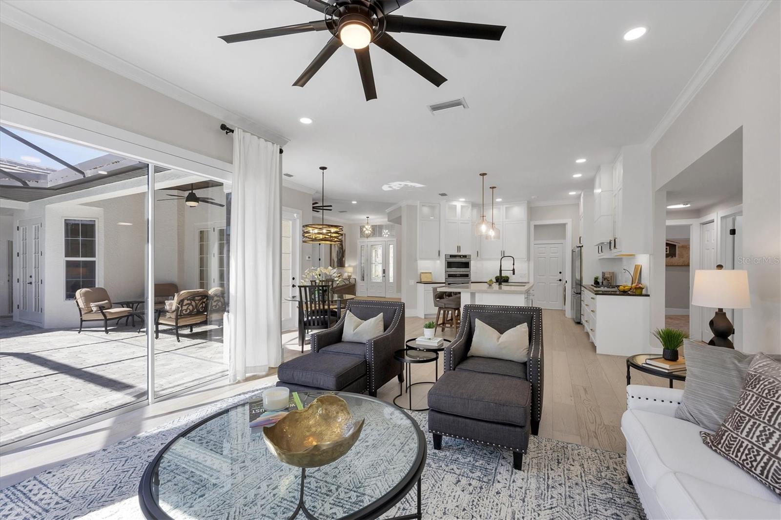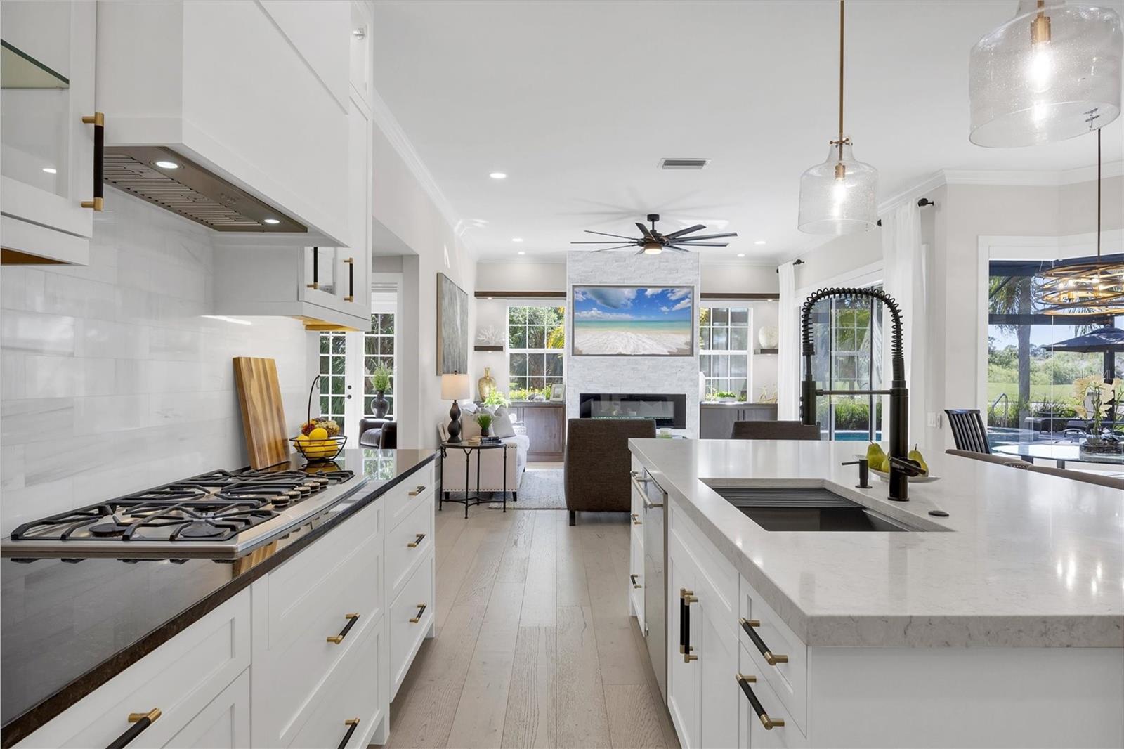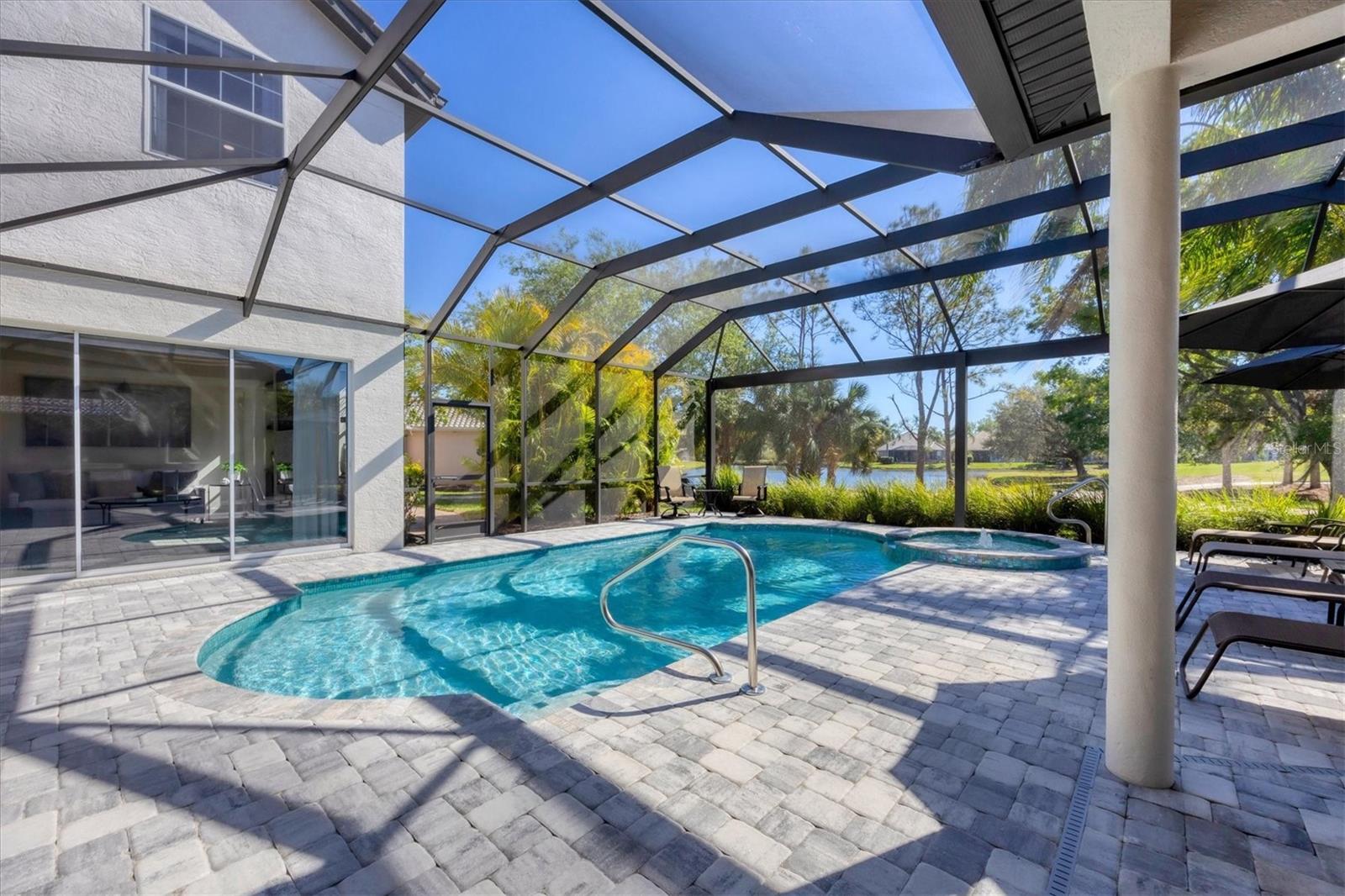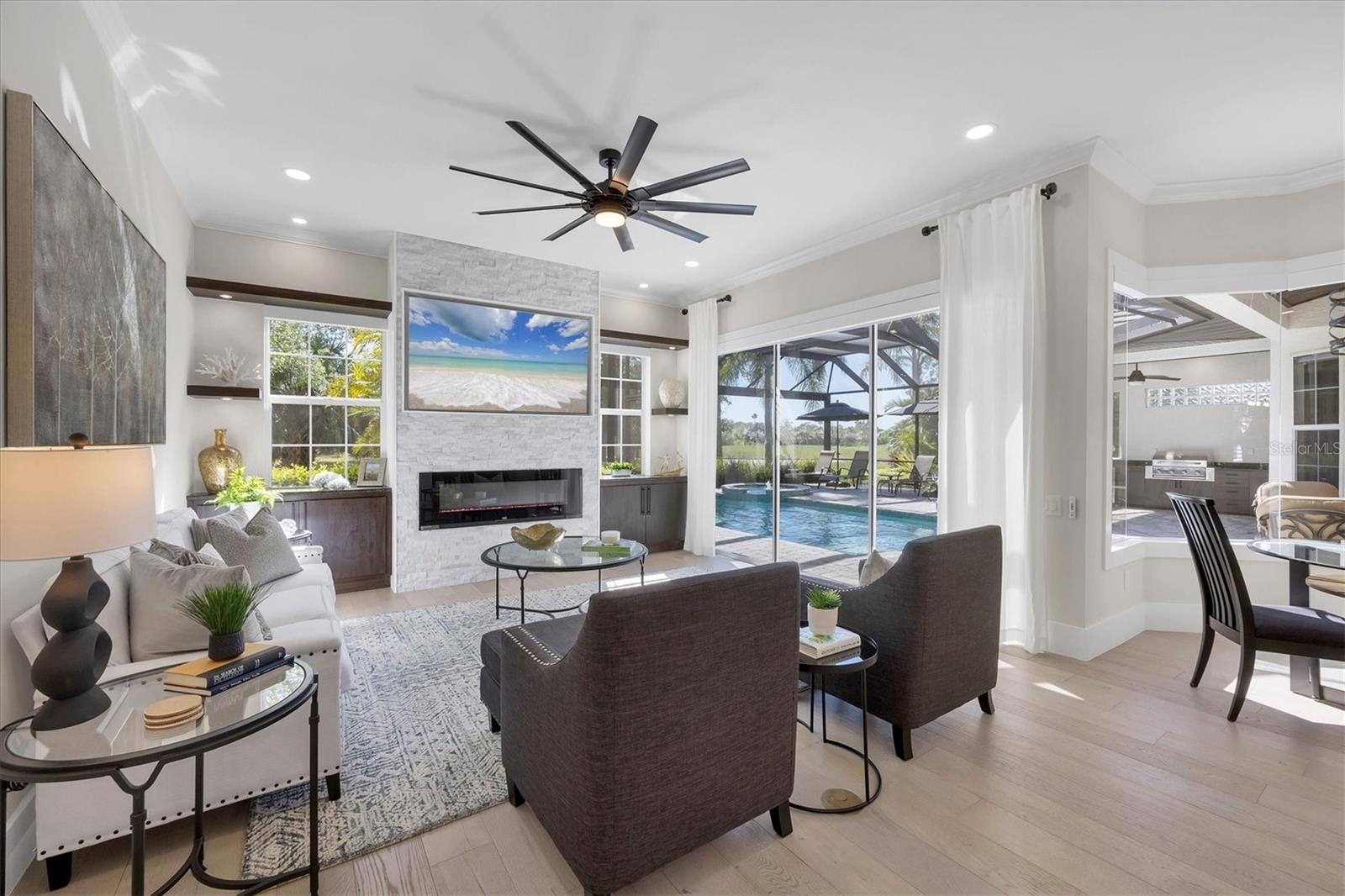 Luxury Living on the Fairway, 6540 The Masters Avenue 2-story home in Lakewood Ranch is sold furnished and ready for immediate occupancy. Nestled in the highly sought after community of Lakewood Ranch Country Club, this stunningly updated estate home offers an unparalleled blend of elegance and modern convenience. Overlooking the sixth hole of The Legacy Golf Course, this 5-bedroom, 4-bathroom home, complete with a large second floor bonus room and dedicated office with french doors, delivers breathtaking golf course views and refined indoor-outdoor living. Step inside to discover a fully renovated interior, where new engineered wood flooring flows throughout the open-concept layout on the first level. The chef's kitchen is a masterpiece, featuring new cabinetry, quartz counters, GE Monogram appliances and island with seating...perfect for entertaining. The outdoor space is a true showstopper, with a newly resurfaced and retiled pool, updated panoramic pool screens, and brand-new pavers enhancing the expansive lanai. Enjoy Florida's year-round sunshine in your new summer kitchen, ideal for al fresco dining while soaking in the picturesque golf course views. With a newer roof (2018), new electronic blinds and recent exterior and interior paint, this home is move-in ready and designed for effortless luxury. All the closets have custom built in cabinetry and primary closet has extra room for large safe. All bathrooms were updated in 2022, including the half bath in the lanai. Enjoy the front porch with matching rocking chairs for early morning coffee or evening glass of wine. The side load, 3-car garage has epoxy floor and extra storage room in a loft space above! Don't miss this rare opportunity to own an exquisite golf course retreat in one of Lakewood Ranch's most coveted communities with the low HOA fees of $150 a year! Convenience is key, located just minutes to Waterside, UTC, Interstate 75, the beautiful beaches of Sarasota and Sarasota/Bradenton airport! Hurry in and make this house your next home sweet home!