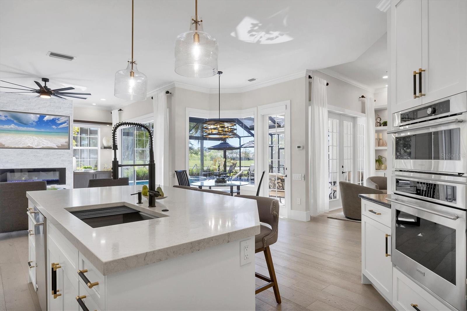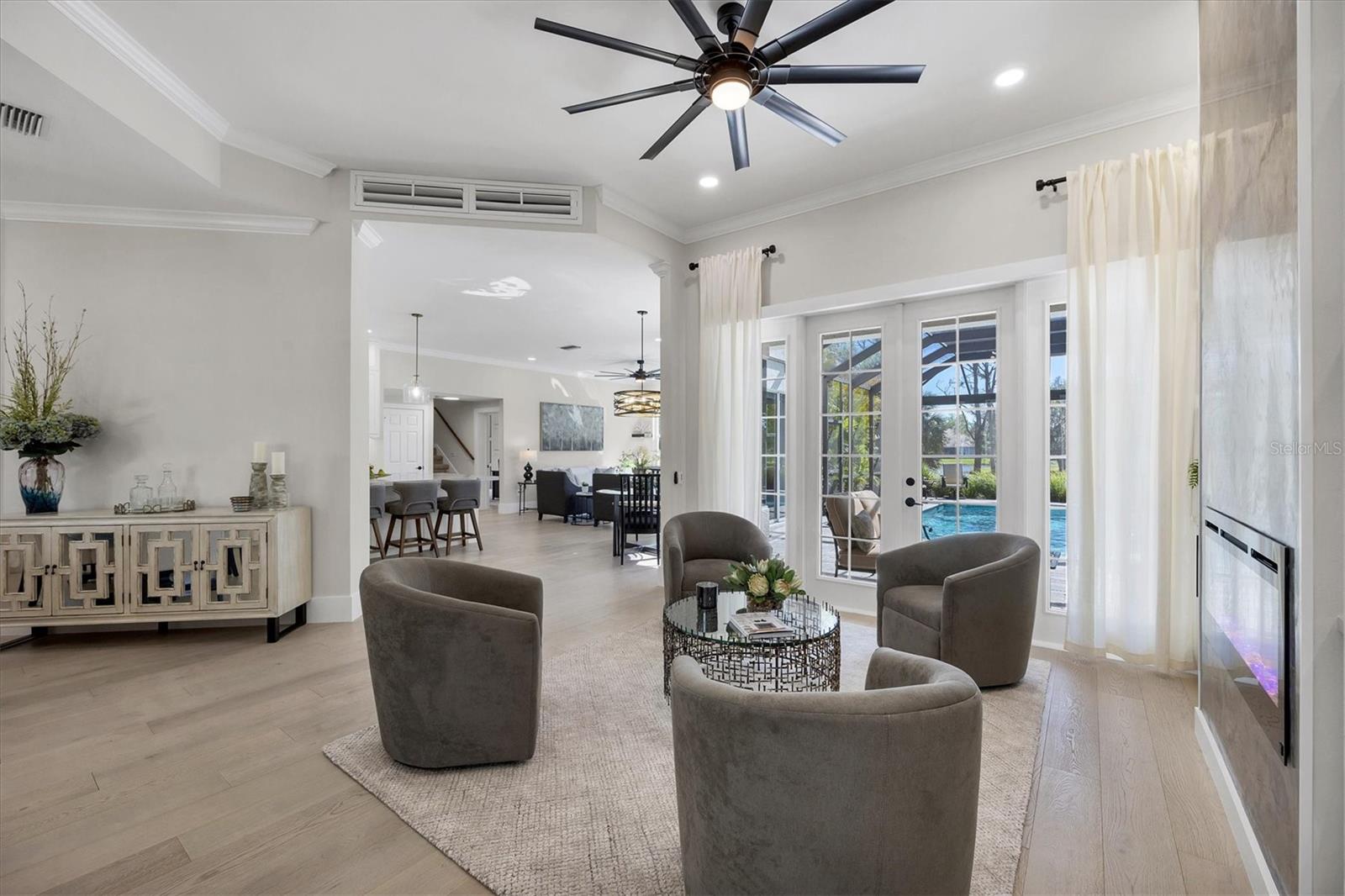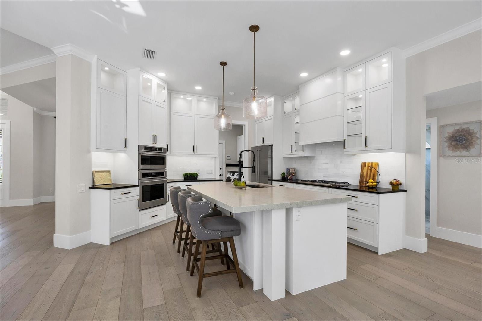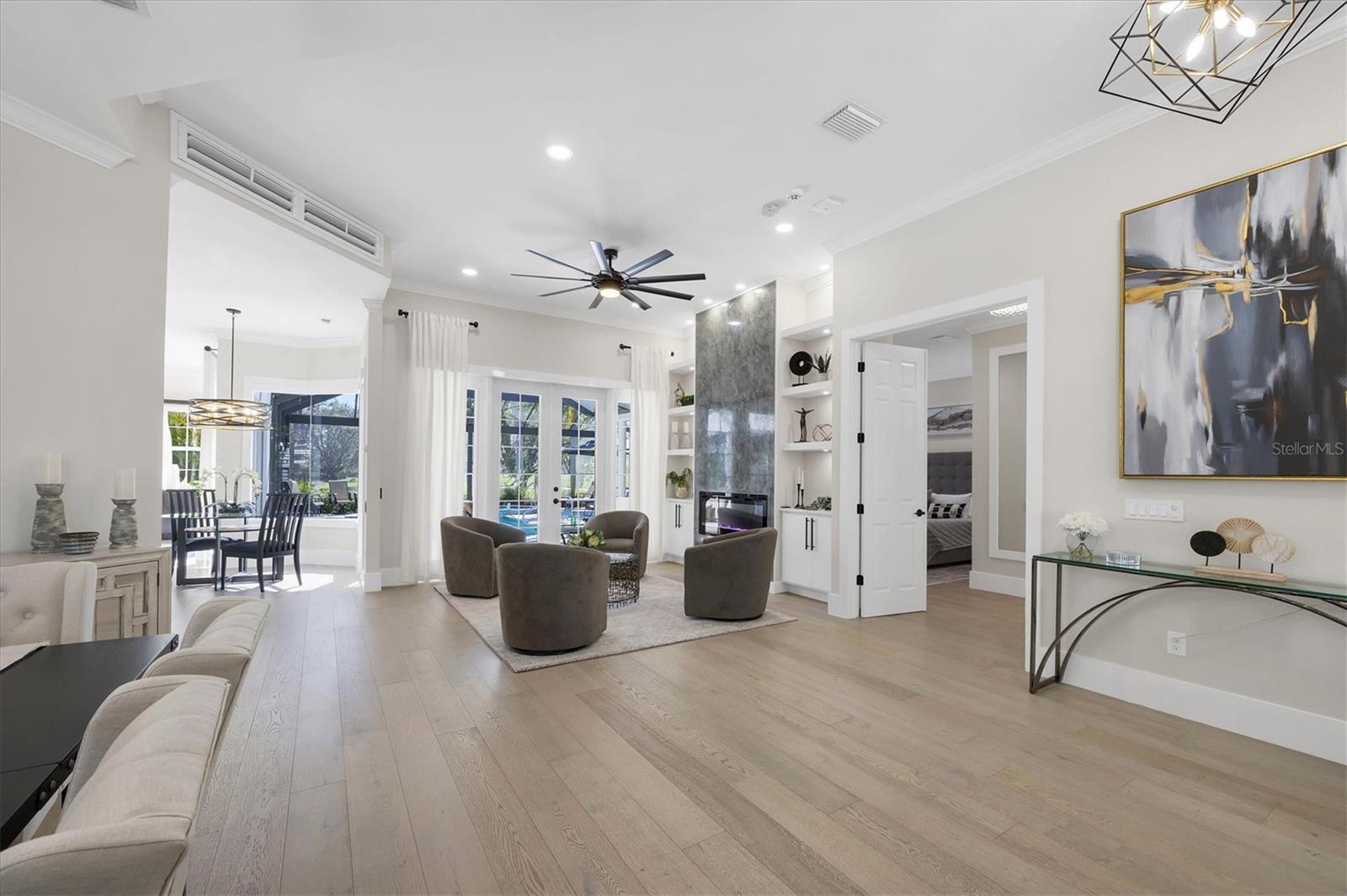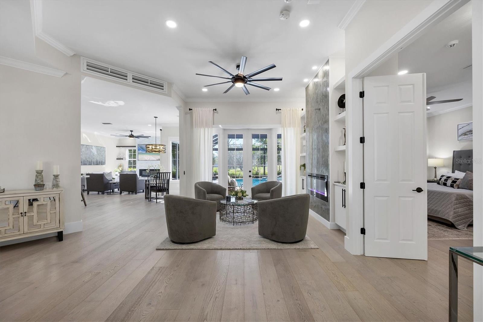 Luxury Living on the Fairway, 6540 The Masters Avenue 2-story home in Lakewood Ranch is sold furnished and ready for immediate occupancy. Nestled in the highly sought after community of Lakewood Ranch Country Club, this stunningly updated estate home offers an unparalleled blend of elegance and modern convenience. Overlooking the sixth hole of The Legacy Golf Course, this 5-bedroom, 4-bathroom home, complete with a large second floor bonus room and dedicated office with french doors, delivers breathtaking golf course views and refined indoor-outdoor living. Step inside to discover a fully renovated interior, where new engineered wood flooring flows throughout the open-concept layout on the first level. The chef's kitchen is a masterpiece, featuring new cabinetry, quartz counters, GE Monogram appliances and island with seating...perfect for entertaining. The outdoor space is a true showstopper, with a newly resurfaced and retiled pool, updated panoramic pool screens, and brand-new pavers enhancing the expansive lanai. Enjoy Florida's year-round sunshine in your new summer kitchen, ideal for al fresco dining while soaking in the picturesque golf course views. With a newer roof (2018), new electronic blinds and recent exterior and interior paint, this home is move-in ready and designed for effortless luxury. All the closets have custom built in cabinetry and primary closet has extra room for large safe. All bathrooms were updated in 2022, including the half bath in the lanai. Enjoy the front porch with matching rocking chairs for early morning coffee or evening glass of wine. The side load, 3-car garage has epoxy floor and extra storage room in a loft space above! Don't miss this rare opportunity to own an exquisite golf course retreat in one of Lakewood Ranch's most coveted communities with the low HOA fees of $150 a year! Convenience is key, located just minutes to Waterside, UTC, Interstate 75, the beautiful beaches of Sarasota and Sarasota/Bradenton airport! Hurry in and make this house your next home sweet home!