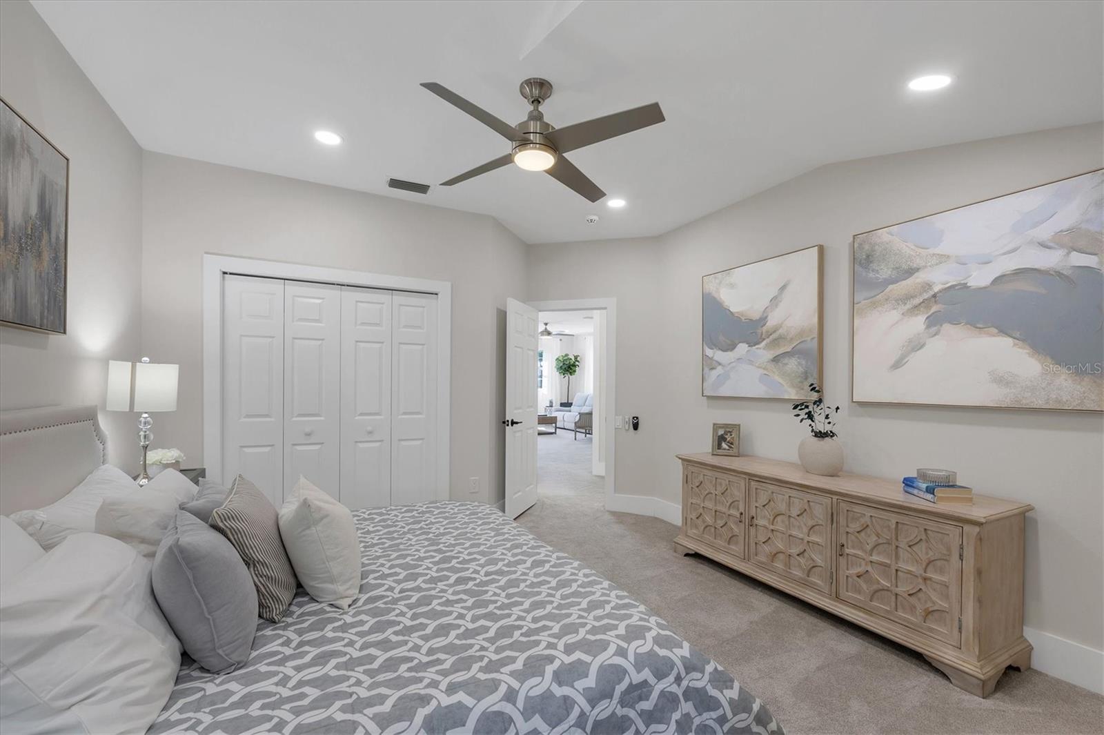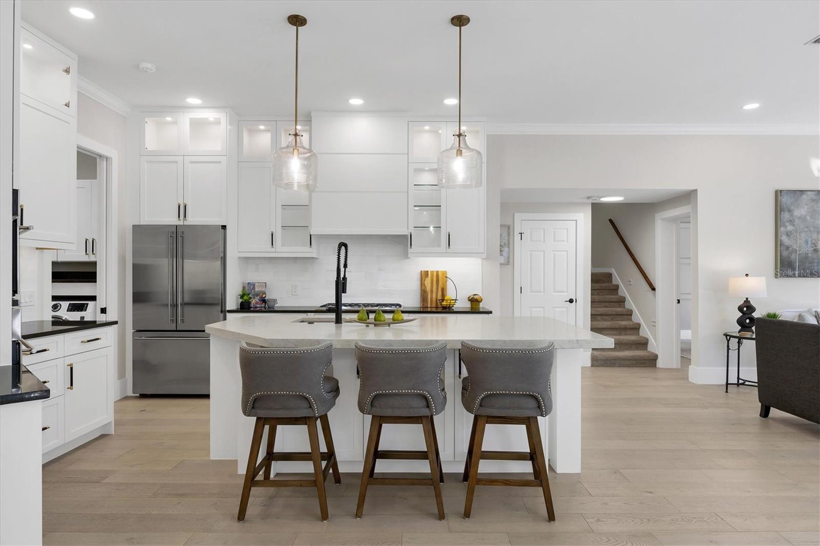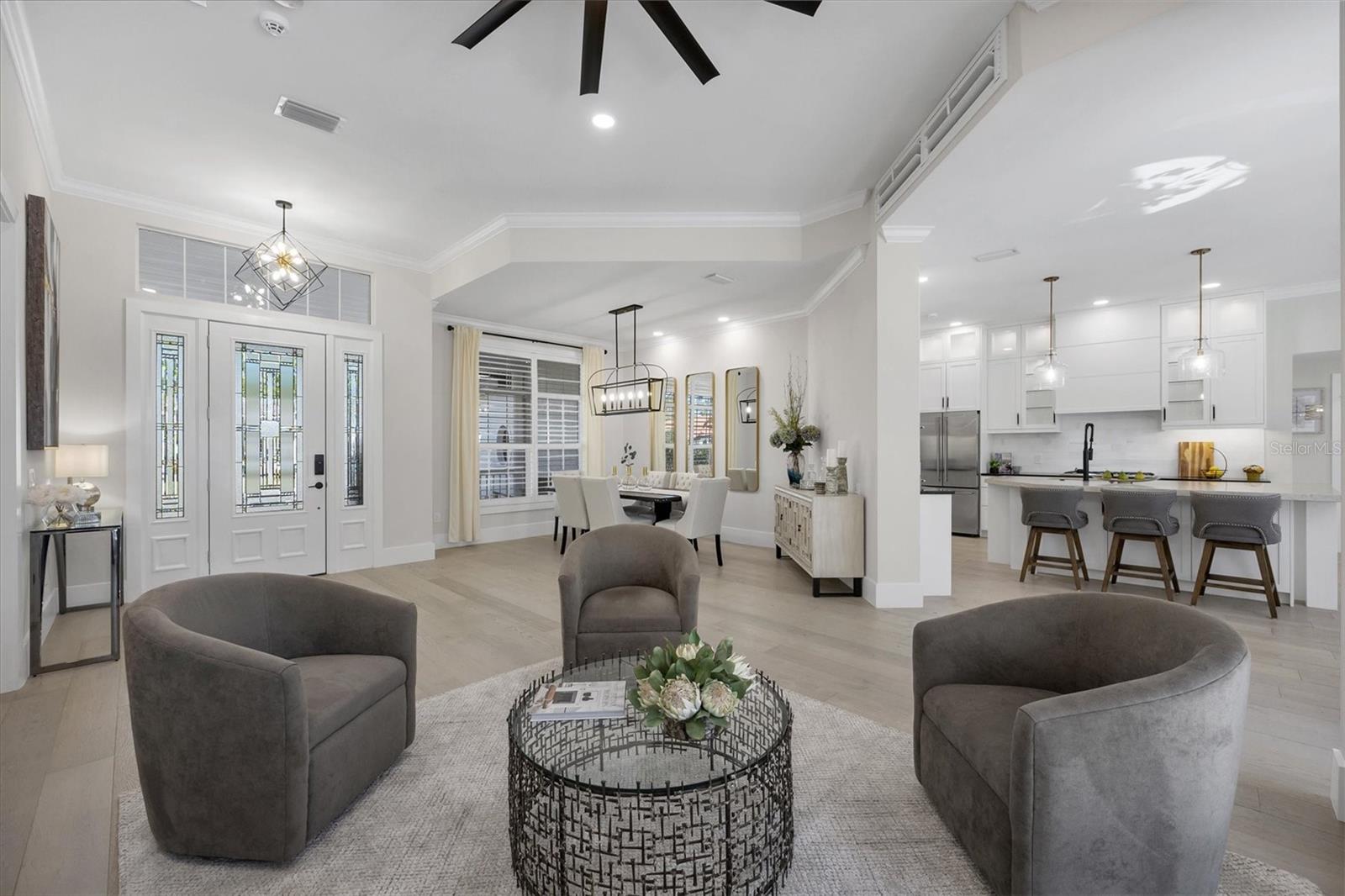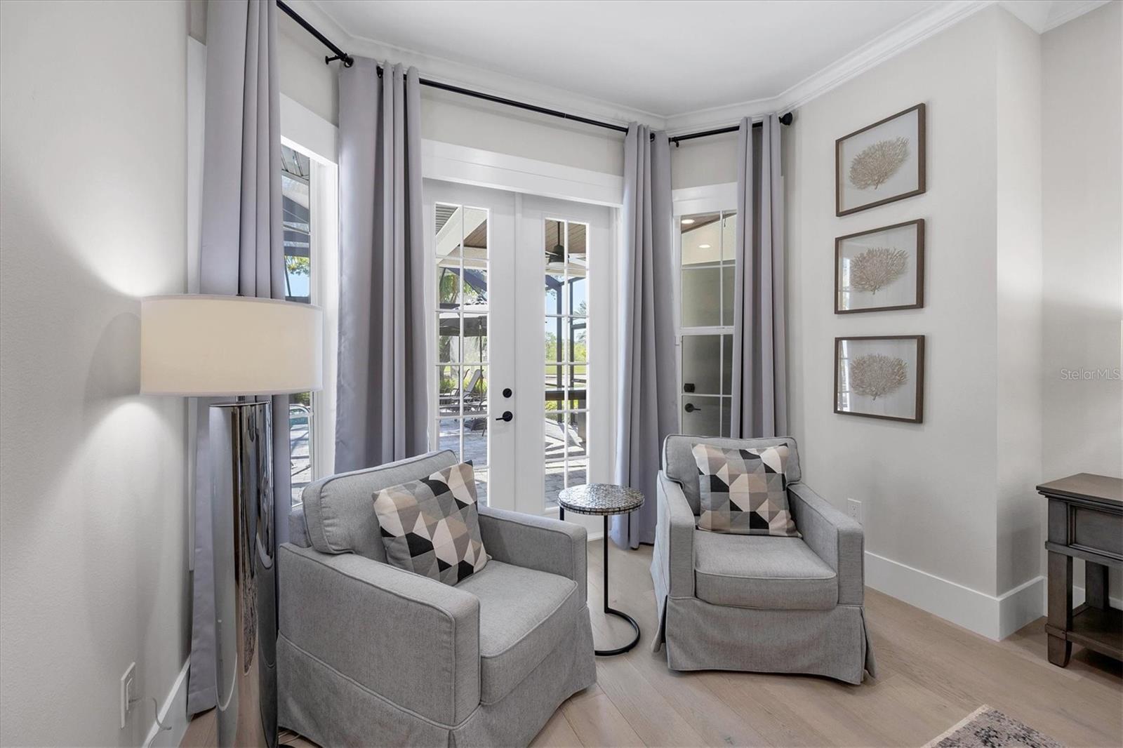 Luxury Living on the Fairway, 6540 The Masters Avenue 2-story home in Lakewood Ranch is sold furnished and ready for immediate occupancy. Nestled in the highly sought after community of Lakewood Ranch Country Club, this stunningly updated estate home offers an unparalleled blend of elegance and modern convenience. Overlooking the sixth hole of The Legacy Golf Course, this 5-bedroom, 4-bathroom home, complete with a large second floor bonus room and dedicated office with french doors, delivers breathtaking golf course views and refined indoor-outdoor living. Step inside to discover a fully renovated interior, where new engineered wood flooring flows throughout the open-concept layout on the first level. The chef's kitchen is a masterpiece, featuring new cabinetry, quartz counters, GE Monogram appliances and island with seating...perfect for entertaining. The outdoor space is a true showstopper, with a newly resurfaced and retiled pool, updated panoramic pool screens, and brand-new pavers enhancing the expansive lanai. Enjoy Florida's year-round sunshine in your new summer kitchen, ideal for al fresco dining while soaking in the picturesque golf course views. With a newer roof (2018), new electronic blinds and recent exterior and interior paint, this home is move-in ready and designed for effortless luxury. All the closets have custom built in cabinetry and primary closet has extra room for large safe. All bathrooms were updated in 2022, including the half bath in the lanai. Enjoy the front porch with matching rocking chairs for early morning coffee or evening glass of wine. The side load, 3-car garage has epoxy floor and extra storage room in a loft space above! Don't miss this rare opportunity to own an exquisite golf course retreat in one of Lakewood Ranch's most coveted communities with the low HOA fees of $150 a year! Convenience is key, located just minutes to Waterside, UTC, Interstate 75, the beautiful beaches of Sarasota and Sarasota/Bradenton airport! Hurry in and make this house your next home sweet home!