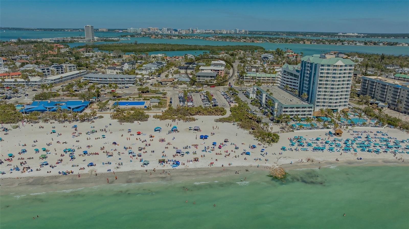 This bright and inviting 1,200 sq. ft. condo is perched on the top fourth floor of the Riviera of Lido Beach, a charming 14-unit complex just steps from the powdery sand of Lido Beach. Large windows fill the space with natural light, while the private terrace offers picturesque city views and stunning sunrises. The updated kitchen features stone countertops and a breakfast bar, perfect for casual dining or entertaining. Both bedrooms offer private full bath access, and the in-unit laundry room adds extra convenience.The well-maintained complex includes a private pool, reserved parking with a storage closet, fenced grounds, and a generator for added peace of mind. Recent updates include hurricane rated windows and slider doors. Complex also has new entry doors. Located just across the street from Lido Beach, this condo offers easy access to sun and surf, while a nearby public kayak launch provides the perfect spot for water adventures. St. Armands Circle, known for its vibrant mix of dining, shopping, and entertainment, is just a short walk away. Downtown Sarasota, with its renowned arts scene and waterfront charm, is only a quick drive, along with Sarasota-Bradenton International Airport for added travel convenience. Experience the best of Lido Key living.