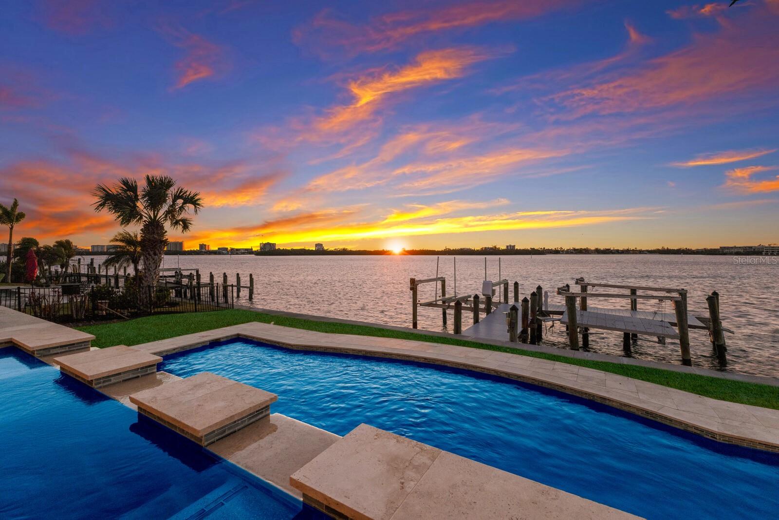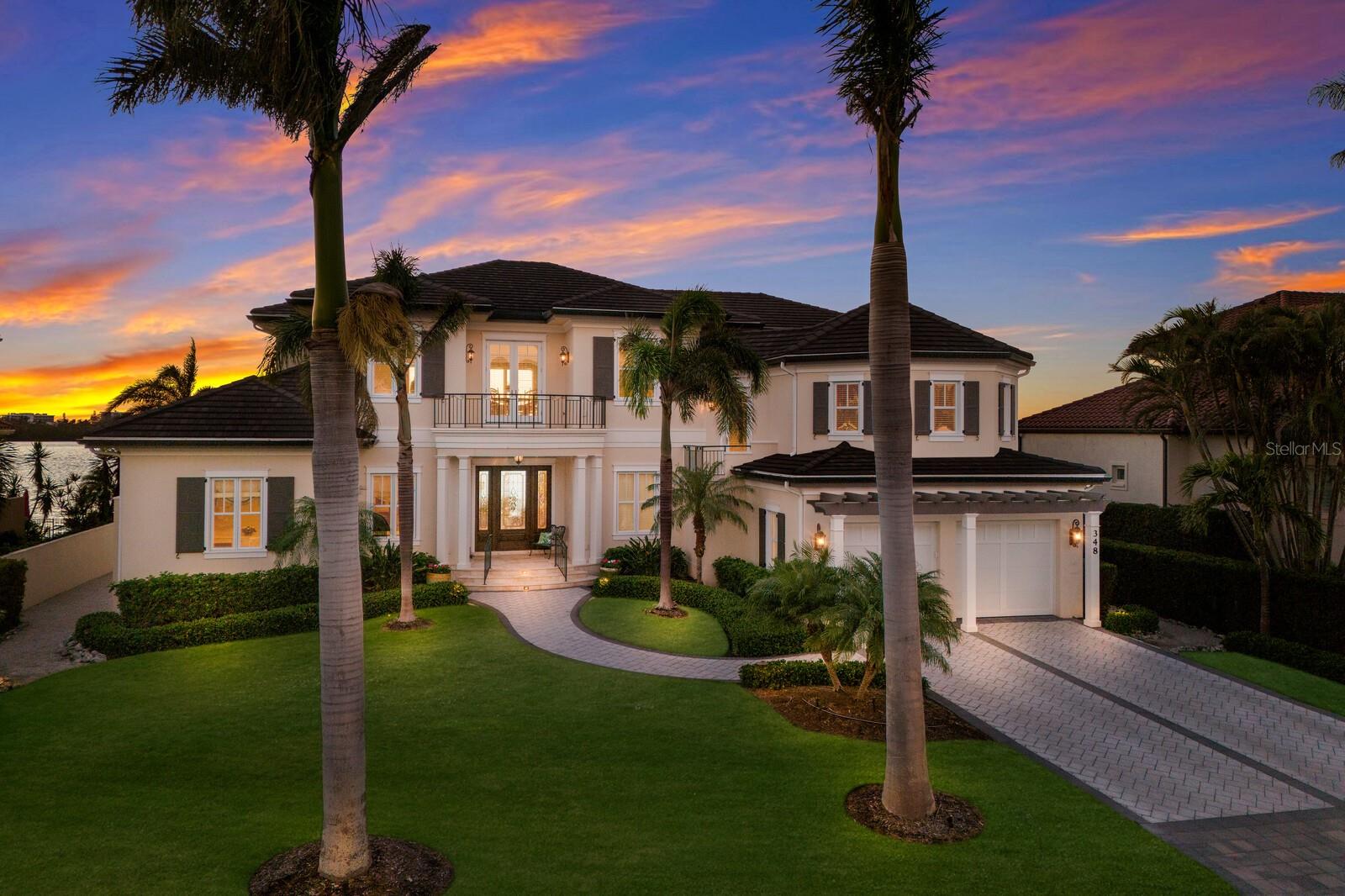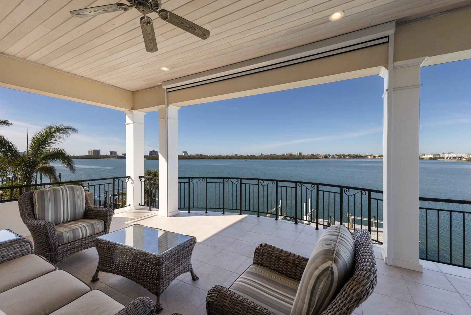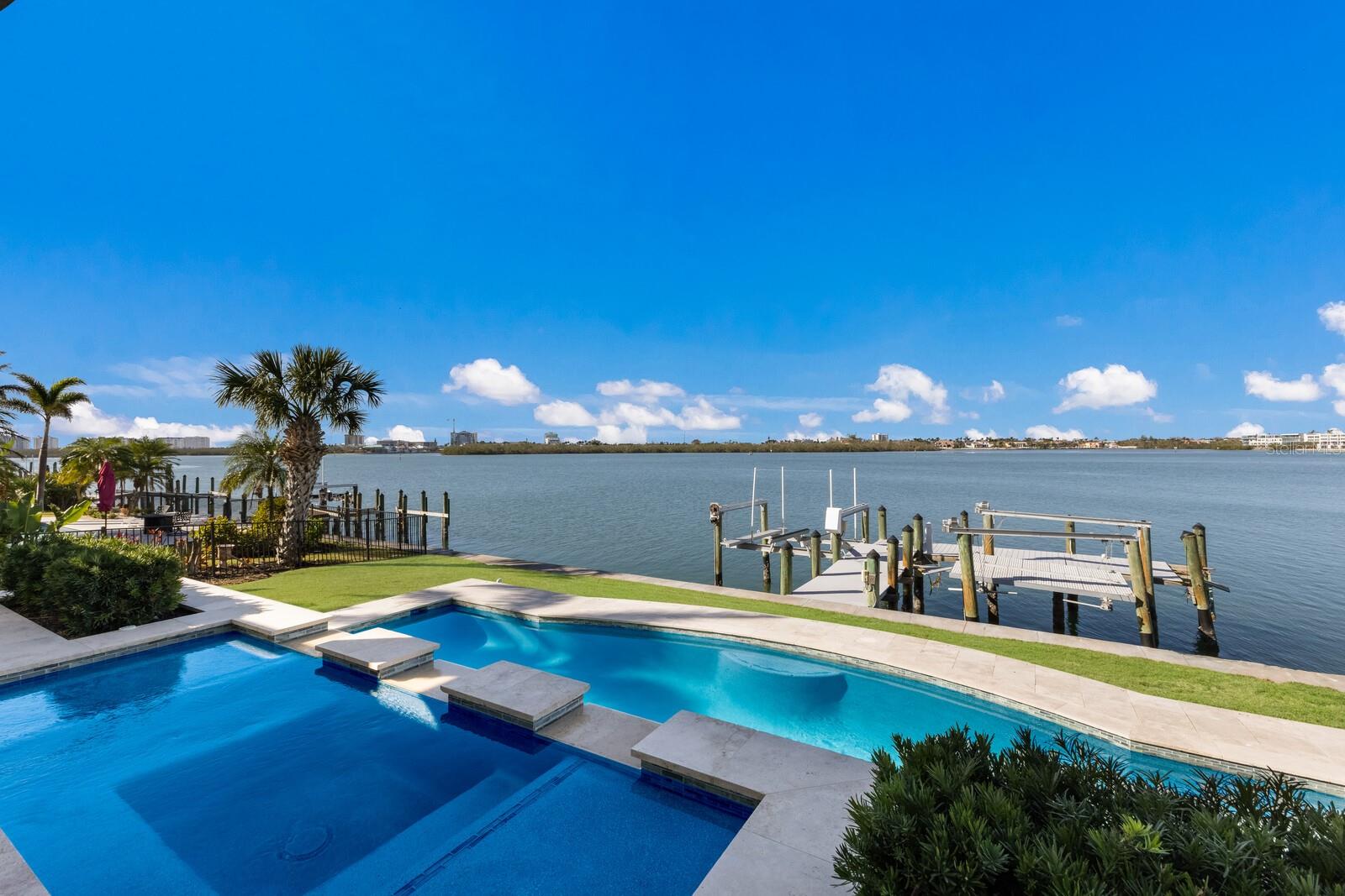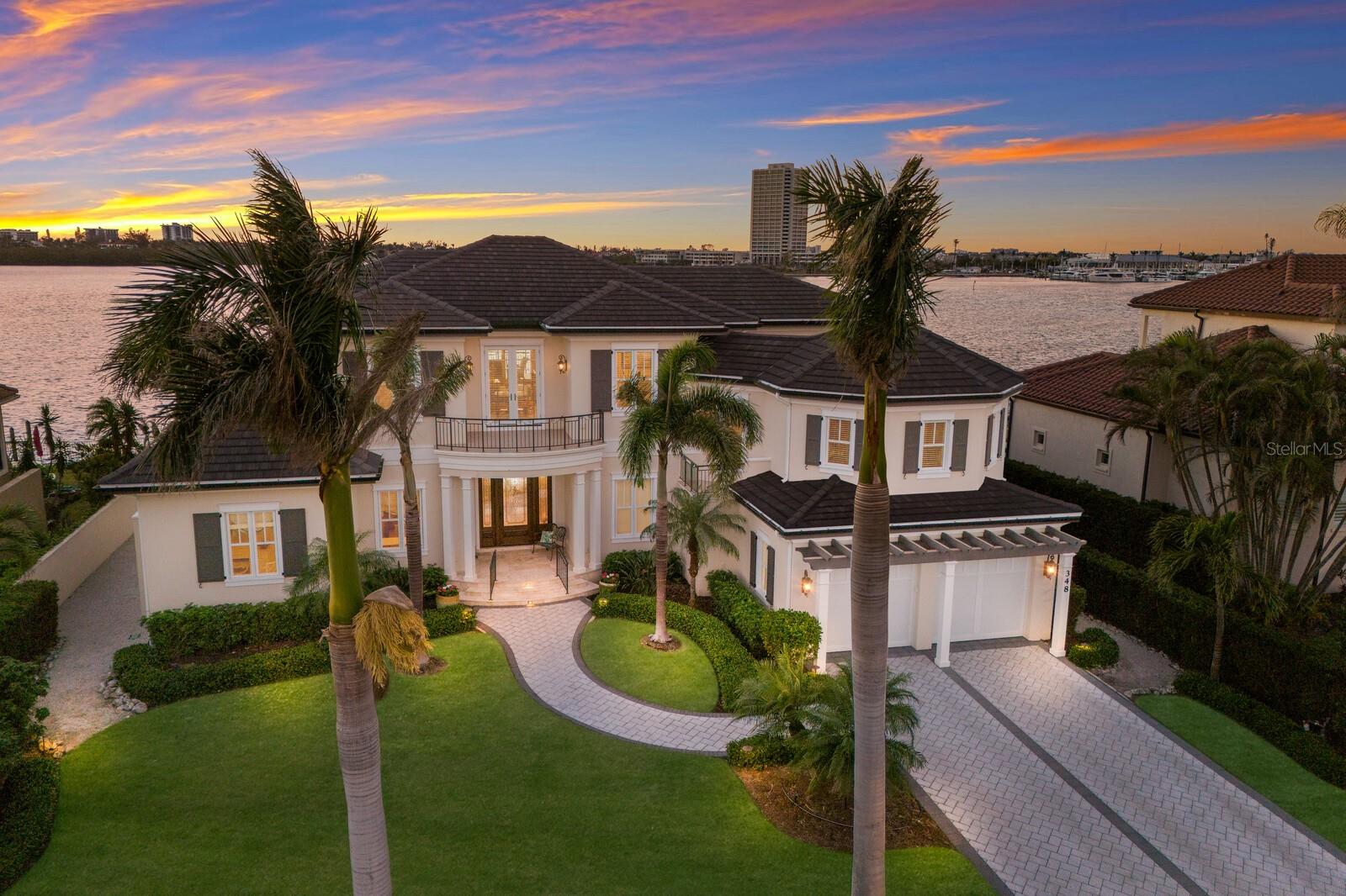 This exceptional Bayfront residence is perfectly positioned in one of Bird Key's most sought-after locations, offering breathtaking western-facing views of Sarasota Bay from a quiet cul-de-sac. Custom-built in 2017 by renowned builder Murray Homes, this home exemplifies superior craftsmanship, thoughtful design, and exquisite finishes. From the moment you arrive, this well-appointed home makes a striking impression with its manicured front lawn, lush landscaping, and impeccable curb appeal. Inside, natural light floods the space, drawing attention to the panoramic water views through expansive walls of glass. The open-concept split floor plan seamlessly blends well-defined yet flowing living areas, striking an effortless balance of comfort and elegance. The chef's kitchen, designed for both function and style, flows seamlessly into the family room and informal dining area, making it ideal for both everyday living and entertaining. A formal living room with a gas fireplace and a separate dining room add a refined touch, while the office with custom built-ins provides a peaceful workspace. The primary suite on the main level, features direct terrace access and serene Bay views. Ascending the staircase or taking the elevator to the second floor, where two guest suites with en-suite bathrooms offer comfort and privacy. A sitting area and informal dining space open onto what is arguably the most captivating part of the home--a large, west-facing terrace that showcases unrivaled waterfront views and breathtaking sunsets over Lido Key. Additional features of this custom-built home include a spacious mezzanine-level room, which has been used as a hobby space and can easily be converted into a fourth bedroom with its own bathroom and walk-in closet (image is digitally staged). The owner has remodeling plans and quotes available to share with prospective buyers. There is also a large dedicated internal storage room that can be utilized as a second office, playroom, gym, or art studio. Unexpected in size, the large laundry room offers incredible versatility and has been used as a sewing room, office, and laundry combination. Designed for Sarasota's signature indoor-outdoor lifestyle, the exterior living spaces are equally impressive. A modern saltwater pool with a spillover hot tub takes center stage, surrounded by ample covered seating and lounging areas perfect for relaxation. The outdoor kitchen provides an ideal setting for entertaining, while the private dock--complete with an 8,000 lb boat lift, a kayak lift, and a newer seawall--offers direct access to Sarasota Bay. Throughout the home, high-quality oak wood flooring, notable Level 5 wall finishes, and a home generator with automatic switchover reflect the meticulous attention to detail. An oversized double-car garage provides convenient elevator access to all four levels. This is a rare opportunity to own a waterfront home built to the highest standards, offering the advantage of a 12-foot elevation while being only eight years old. Ideally located just minutes from Lido Beach, St. Armands Circle, and downtown Sarasota, Bird Key offers an unparalleled lifestyle of convenience and exclusivity. The Bird Key Yacht Club is also undergoing a complete rebuild, set to become one of Sarasota's premier social, tennis, and boating clubs upon its anticipated completion in 2026.