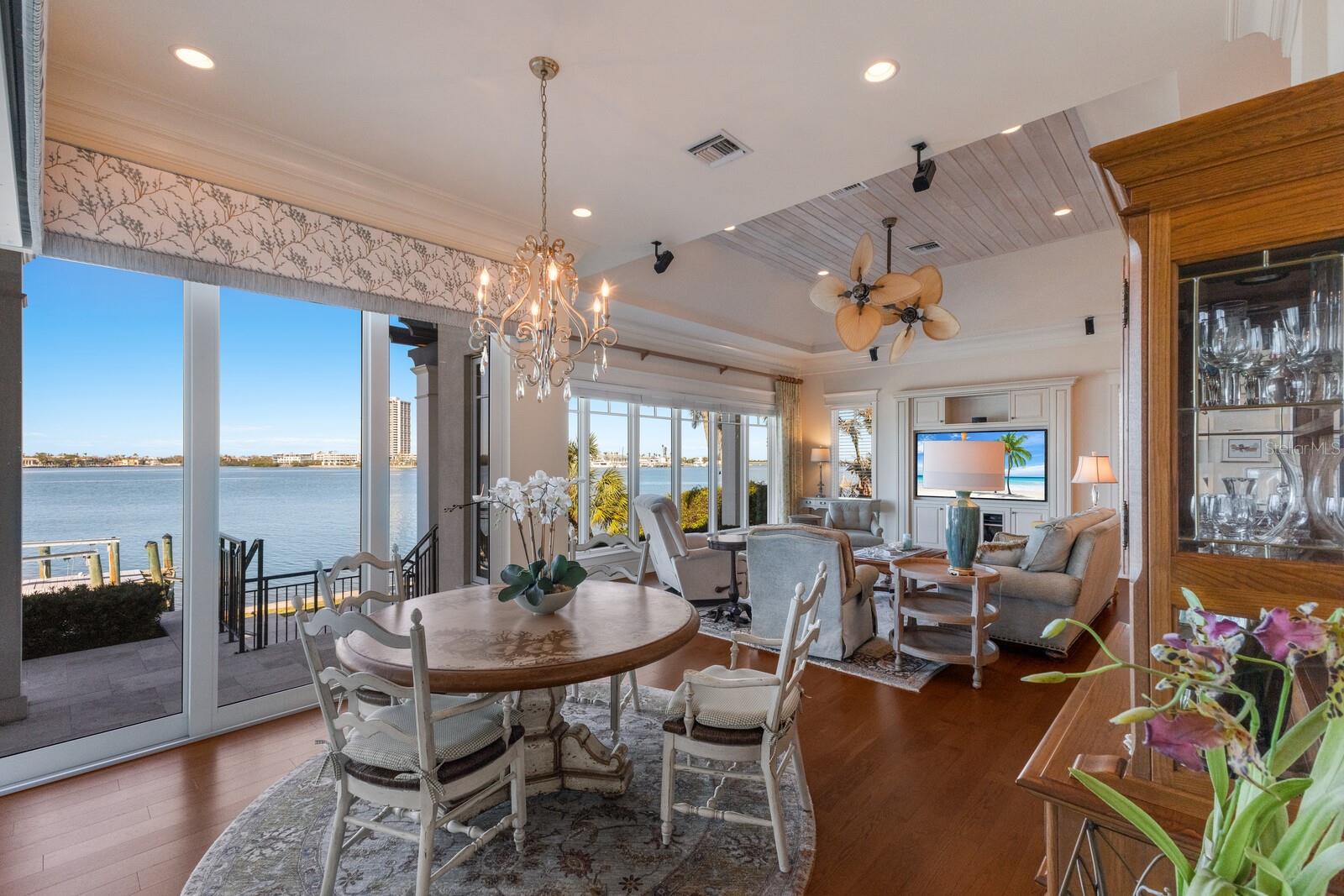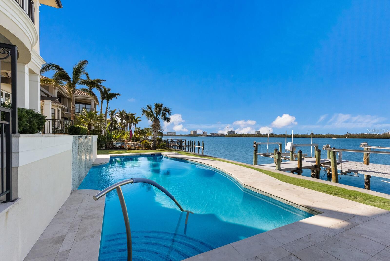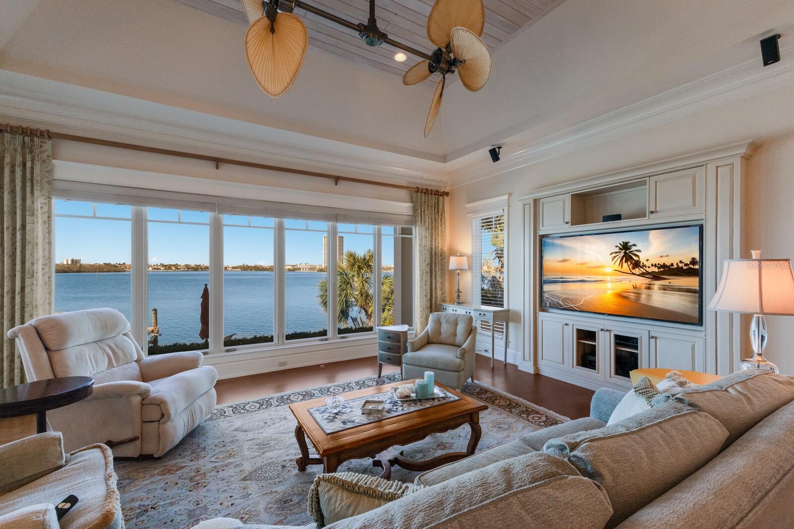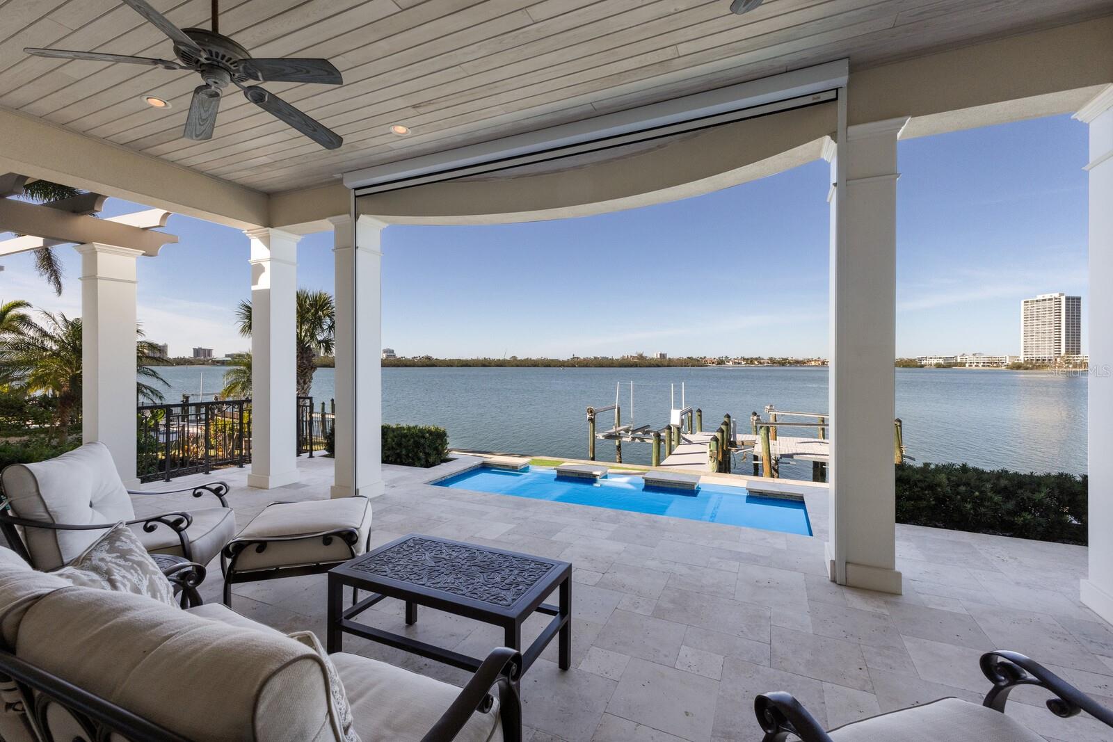 This exceptional Bayfront residence is perfectly positioned in one of Bird Key's most sought-after locations, offering breathtaking western-facing views of Sarasota Bay from a quiet cul-de-sac. Custom-built in 2017 by renowned builder Murray Homes, this home exemplifies superior craftsmanship, thoughtful design, and exquisite finishes. From the moment you arrive, this well-appointed home makes a striking impression with its manicured front lawn, lush landscaping, and impeccable curb appeal. Inside, natural light floods the space, drawing attention to the panoramic water views through expansive walls of glass. The open-concept split floor plan seamlessly blends well-defined yet flowing living areas, striking an effortless balance of comfort and elegance. The chef's kitchen, designed for both function and style, flows seamlessly into the family room and informal dining area, making it ideal for both everyday living and entertaining. A formal living room with a gas fireplace and a separate dining room add a refined touch, while the office with custom built-ins provides a peaceful workspace. The primary suite on the main level, features direct terrace access and serene Bay views. Ascending the staircase or taking the elevator to the second floor, where two guest suites with en-suite bathrooms offer comfort and privacy. A sitting area and informal dining space open onto what is arguably the most captivating part of the home--a large, west-facing terrace that showcases unrivaled waterfront views and breathtaking sunsets over Lido Key. Additional features of this custom-built home include a spacious mezzanine-level room, which has been used as a hobby space and can easily be converted into a fourth bedroom with its own bathroom and walk-in closet (image is digitally staged). The owner has remodeling plans and quotes available to share with prospective buyers. There is also a large dedicated internal storage room that can be utilized as a second office, playroom, gym, or art studio. Unexpected in size, the large laundry room offers incredible versatility and has been used as a sewing room, office, and laundry combination. Designed for Sarasota's signature indoor-outdoor lifestyle, the exterior living spaces are equally impressive. A modern saltwater pool with a spillover hot tub takes center stage, surrounded by ample covered seating and lounging areas perfect for relaxation. The outdoor kitchen provides an ideal setting for entertaining, while the private dock--complete with an 8,000 lb boat lift, a kayak lift, and a newer seawall--offers direct access to Sarasota Bay. Throughout the home, high-quality oak wood flooring, notable Level 5 wall finishes, and a home generator with automatic switchover reflect the meticulous attention to detail. An oversized double-car garage provides convenient elevator access to all four levels. This is a rare opportunity to own a waterfront home built to the highest standards, offering the advantage of a 12-foot elevation while being only eight years old. Ideally located just minutes from Lido Beach, St. Armands Circle, and downtown Sarasota, Bird Key offers an unparalleled lifestyle of convenience and exclusivity. The Bird Key Yacht Club is also undergoing a complete rebuild, set to become one of Sarasota's premier social, tennis, and boating clubs upon its anticipated completion in 2026.