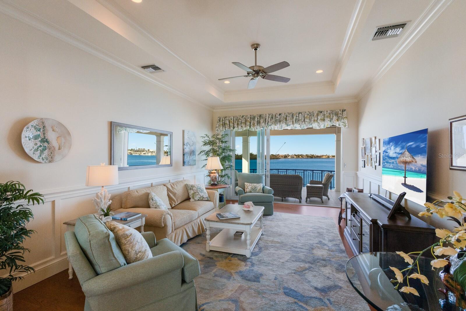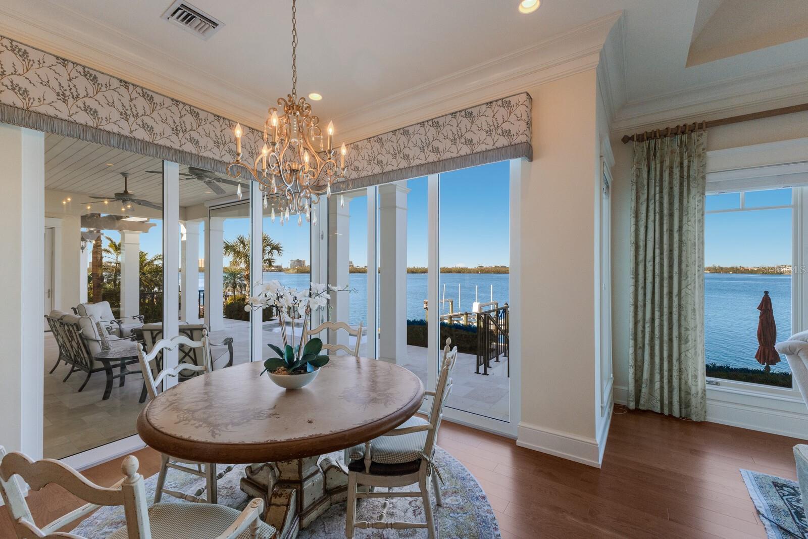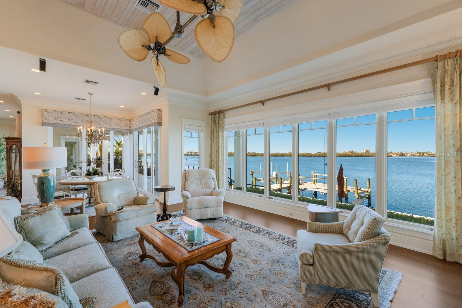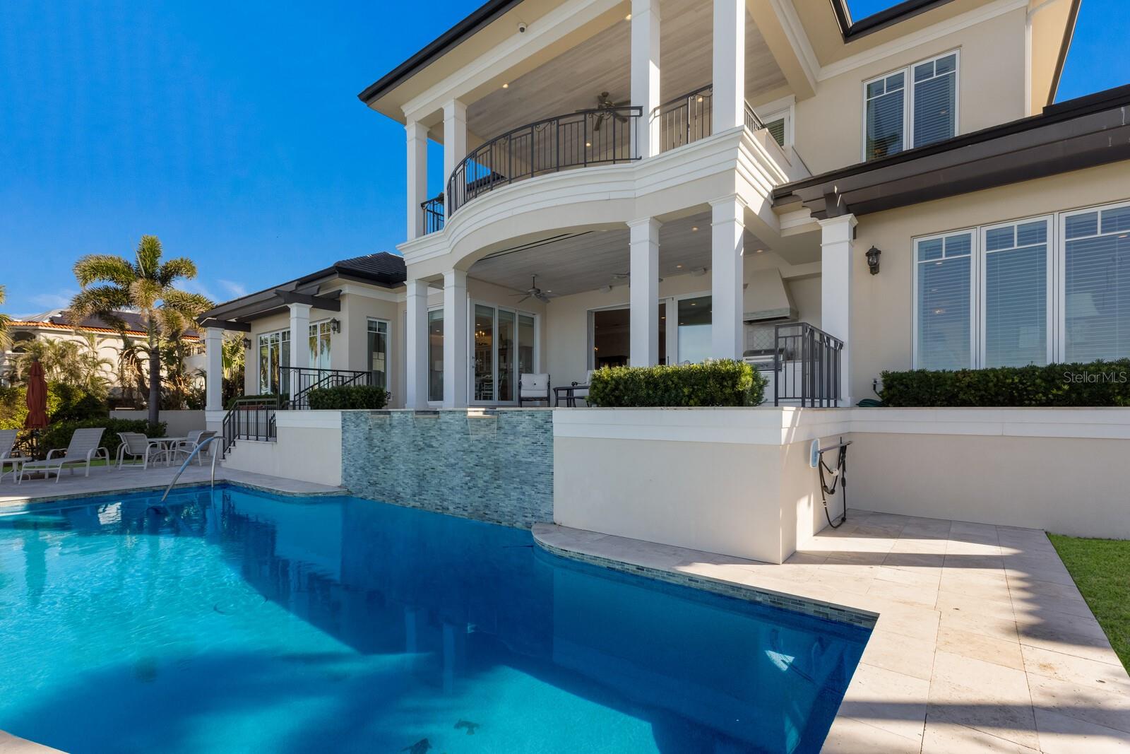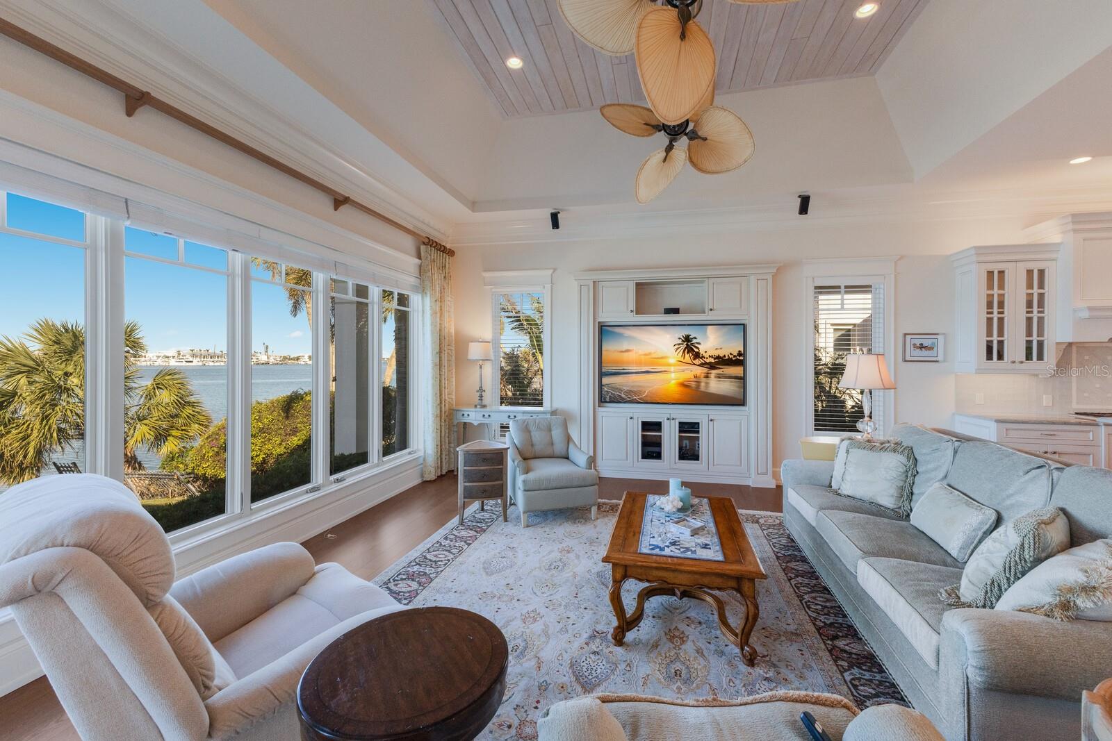 This exceptional Bayfront residence is perfectly positioned in one of Bird Key's most sought-after locations, offering breathtaking western-facing views of Sarasota Bay from a quiet cul-de-sac. Custom-built in 2017 by renowned builder Murray Homes, this home exemplifies superior craftsmanship, thoughtful design, and exquisite finishes. From the moment you arrive, this well-appointed home makes a striking impression with its manicured front lawn, lush landscaping, and impeccable curb appeal. Inside, natural light floods the space, drawing attention to the panoramic water views through expansive walls of glass. The open-concept split floor plan seamlessly blends well-defined yet flowing living areas, striking an effortless balance of comfort and elegance. The chef's kitchen, designed for both function and style, flows seamlessly into the family room and informal dining area, making it ideal for both everyday living and entertaining. A formal living room with a gas fireplace and a separate dining room add a refined touch, while the office with custom built-ins provides a peaceful workspace. The primary suite on the main level, features direct terrace access and serene Bay views. Ascending the staircase or taking the elevator to the second floor, where two guest suites with en-suite bathrooms offer comfort and privacy. A sitting area and informal dining space open onto what is arguably the most captivating part of the home--a large, west-facing terrace that showcases unrivaled waterfront views and breathtaking sunsets over Lido Key. Additional features of this custom-built home include a spacious mezzanine-level room, which has been used as a hobby space and can easily be converted into a fourth bedroom with its own bathroom and walk-in closet (image is digitally staged). The owner has remodeling plans and quotes available to share with prospective buyers. There is also a large dedicated internal storage room that can be utilized as a second office, playroom, gym, or art studio. Unexpected in size, the large laundry room offers incredible versatility and has been used as a sewing room, office, and laundry combination. Designed for Sarasota's signature indoor-outdoor lifestyle, the exterior living spaces are equally impressive. A modern saltwater pool with a spillover hot tub takes center stage, surrounded by ample covered seating and lounging areas perfect for relaxation. The outdoor kitchen provides an ideal setting for entertaining, while the private dock--complete with an 8,000 lb boat lift, a kayak lift, and a newer seawall--offers direct access to Sarasota Bay. Throughout the home, high-quality oak wood flooring, notable Level 5 wall finishes, and a home generator with automatic switchover reflect the meticulous attention to detail. An oversized double-car garage provides convenient elevator access to all four levels. This is a rare opportunity to own a waterfront home built to the highest standards, offering the advantage of a 12-foot elevation while being only eight years old. Ideally located just minutes from Lido Beach, St. Armands Circle, and downtown Sarasota, Bird Key offers an unparalleled lifestyle of convenience and exclusivity. The Bird Key Yacht Club is also undergoing a complete rebuild, set to become one of Sarasota's premier social, tennis, and boating clubs upon its anticipated completion in 2026.