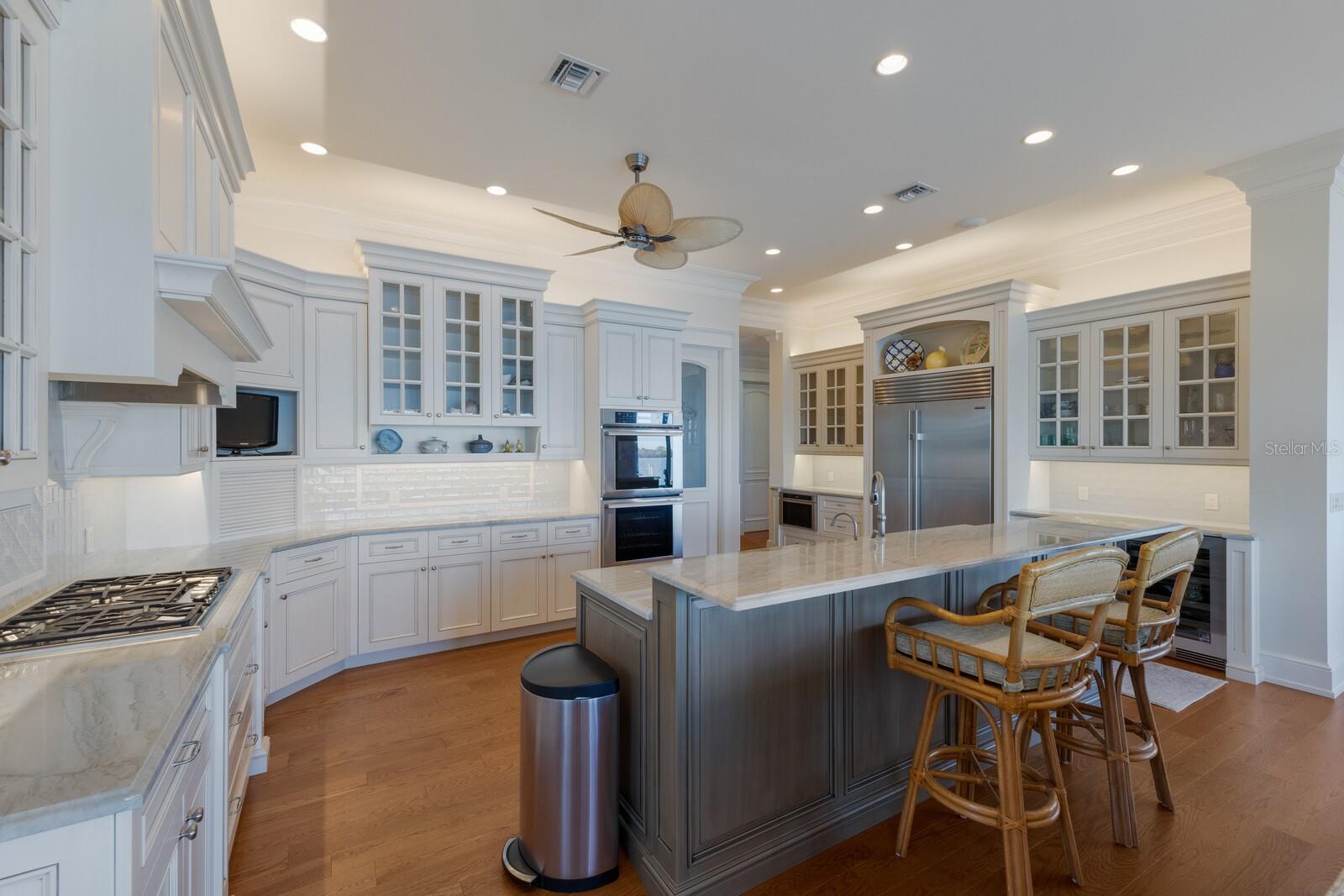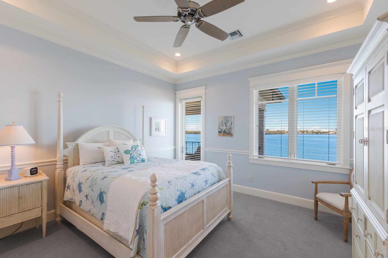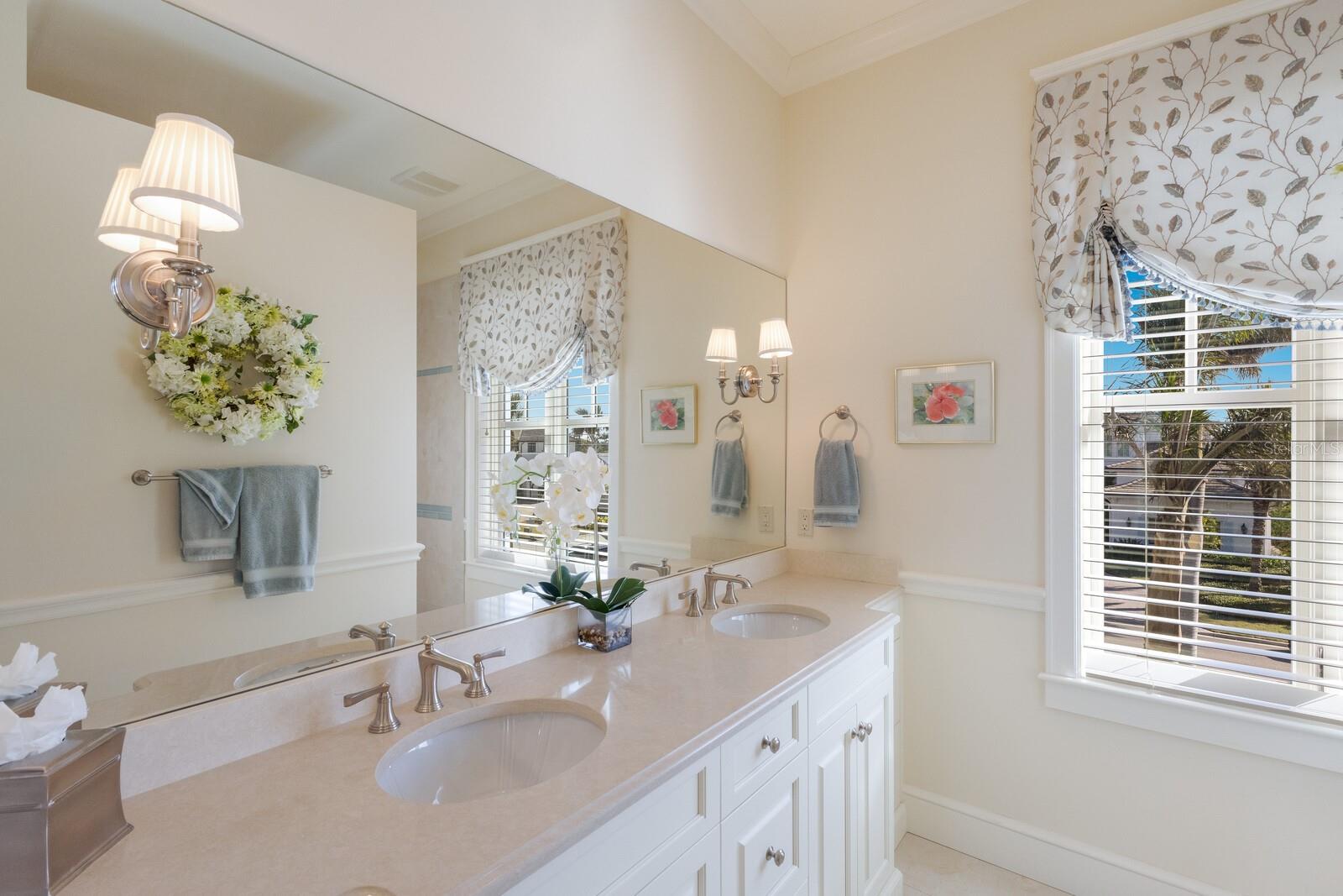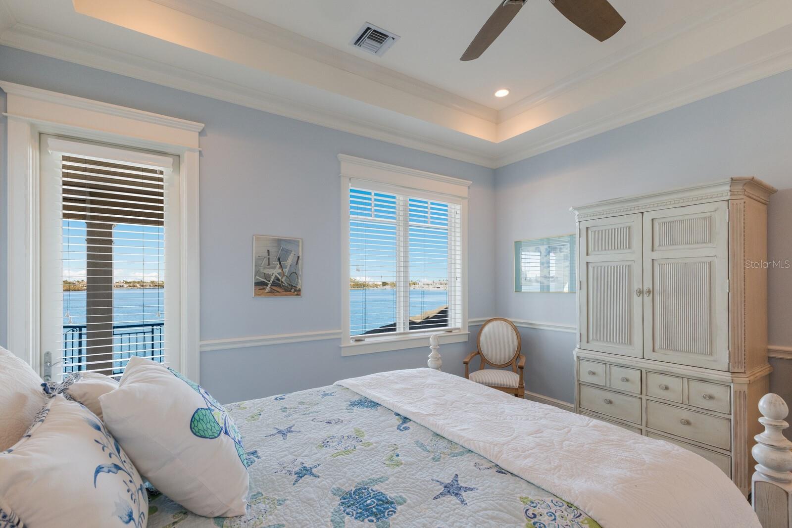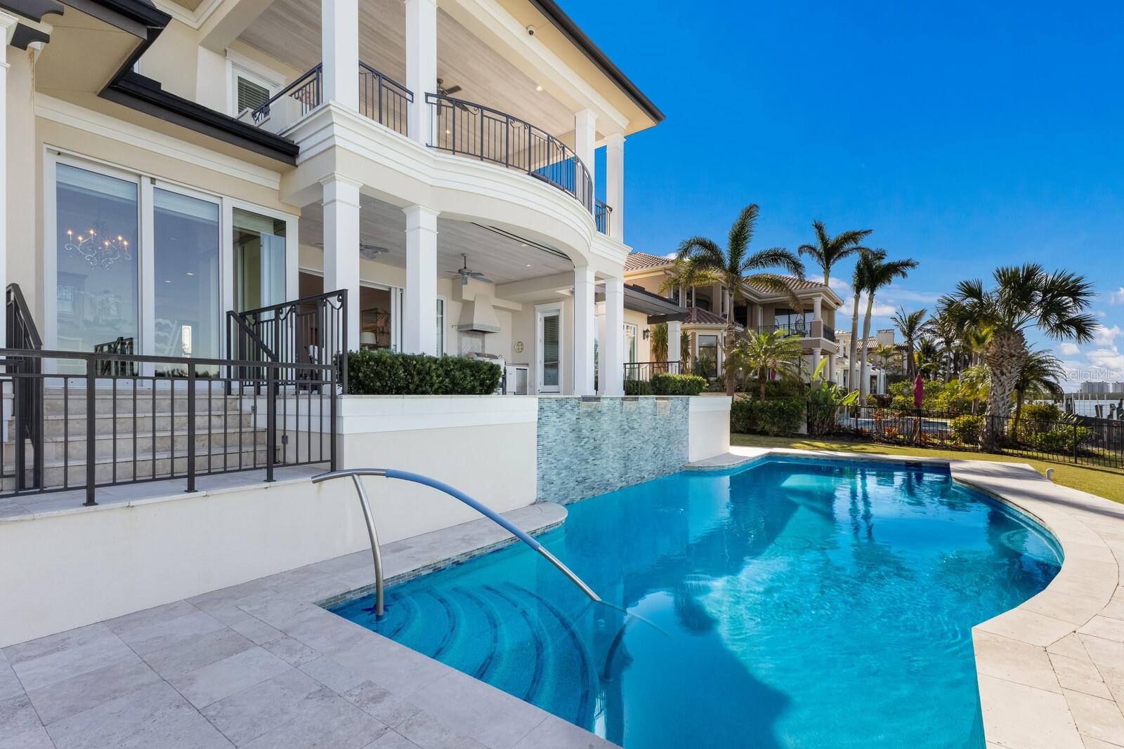 This exceptional Bayfront residence is perfectly positioned in one of Bird Key's most sought-after locations, offering breathtaking western-facing views of Sarasota Bay from a quiet cul-de-sac. Custom-built in 2017 by renowned builder Murray Homes, this home exemplifies superior craftsmanship, thoughtful design, and exquisite finishes. From the moment you arrive, this well-appointed home makes a striking impression with its manicured front lawn, lush landscaping, and impeccable curb appeal. Inside, natural light floods the space, drawing attention to the panoramic water views through expansive walls of glass. The open-concept split floor plan seamlessly blends well-defined yet flowing living areas, striking an effortless balance of comfort and elegance. The chef's kitchen, designed for both function and style, flows seamlessly into the family room and informal dining area, making it ideal for both everyday living and entertaining. A formal living room with a gas fireplace and a separate dining room add a refined touch, while the office with custom built-ins provides a peaceful workspace. The primary suite on the main level, features direct terrace access and serene Bay views. Ascending the staircase or taking the elevator to the second floor, where two guest suites with en-suite bathrooms offer comfort and privacy. A sitting area and informal dining space open onto what is arguably the most captivating part of the home--a large, west-facing terrace that showcases unrivaled waterfront views and breathtaking sunsets over Lido Key. Additional features of this custom-built home include a spacious mezzanine-level room, which has been used as a hobby space and can easily be converted into a fourth bedroom with its own bathroom and walk-in closet (image is digitally staged). The owner has remodeling plans and quotes available to share with prospective buyers. There is also a large dedicated internal storage room that can be utilized as a second office, playroom, gym, or art studio. Unexpected in size, the large laundry room offers incredible versatility and has been used as a sewing room, office, and laundry combination. Designed for Sarasota's signature indoor-outdoor lifestyle, the exterior living spaces are equally impressive. A modern saltwater pool with a spillover hot tub takes center stage, surrounded by ample covered seating and lounging areas perfect for relaxation. The outdoor kitchen provides an ideal setting for entertaining, while the private dock--complete with an 8,000 lb boat lift, a kayak lift, and a newer seawall--offers direct access to Sarasota Bay. Throughout the home, high-quality oak wood flooring, notable Level 5 wall finishes, and a home generator with automatic switchover reflect the meticulous attention to detail. An oversized double-car garage provides convenient elevator access to all four levels. This is a rare opportunity to own a waterfront home built to the highest standards, offering the advantage of a 12-foot elevation while being only eight years old. Ideally located just minutes from Lido Beach, St. Armands Circle, and downtown Sarasota, Bird Key offers an unparalleled lifestyle of convenience and exclusivity. The Bird Key Yacht Club is also undergoing a complete rebuild, set to become one of Sarasota's premier social, tennis, and boating clubs upon its anticipated completion in 2026.