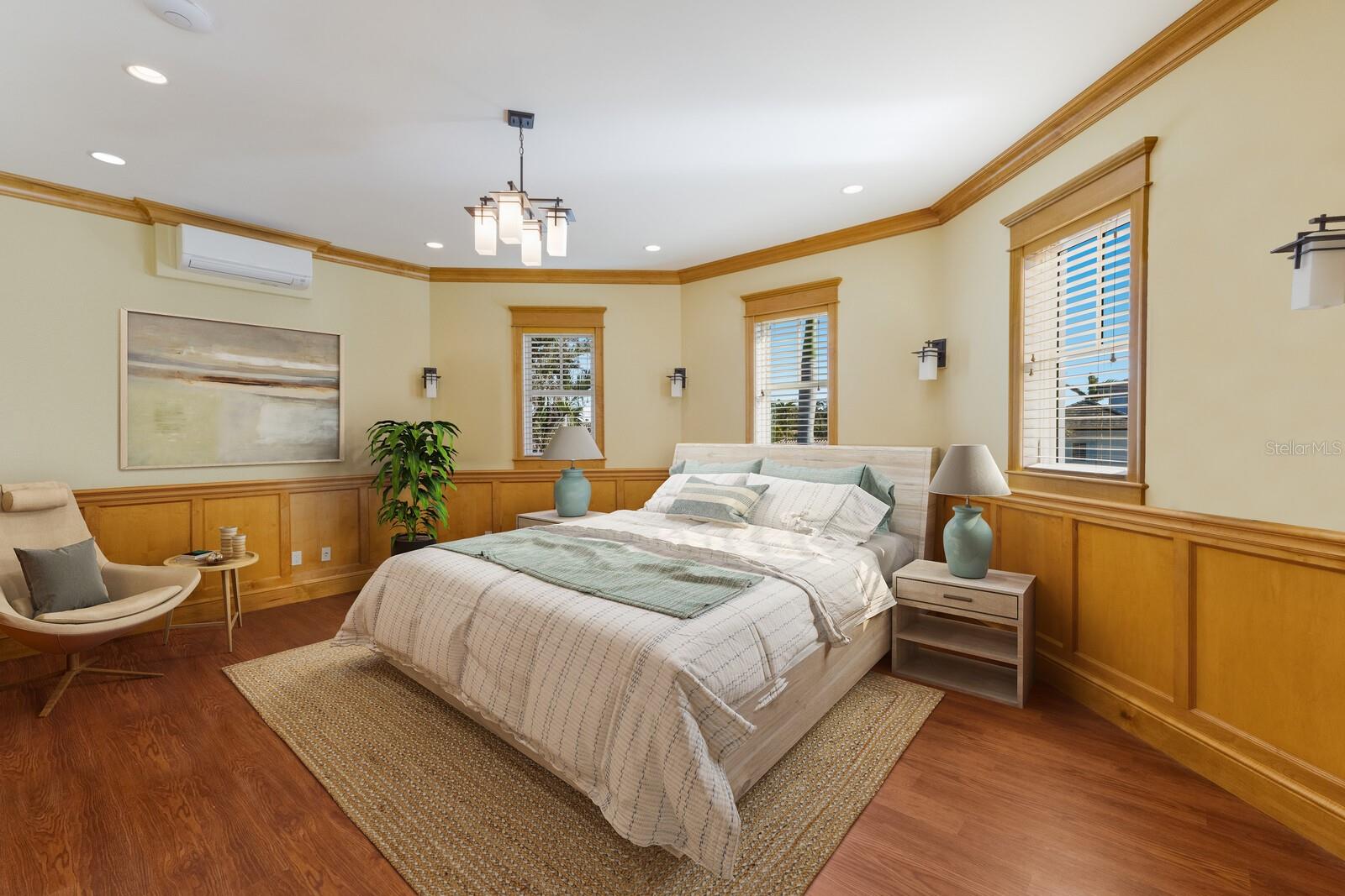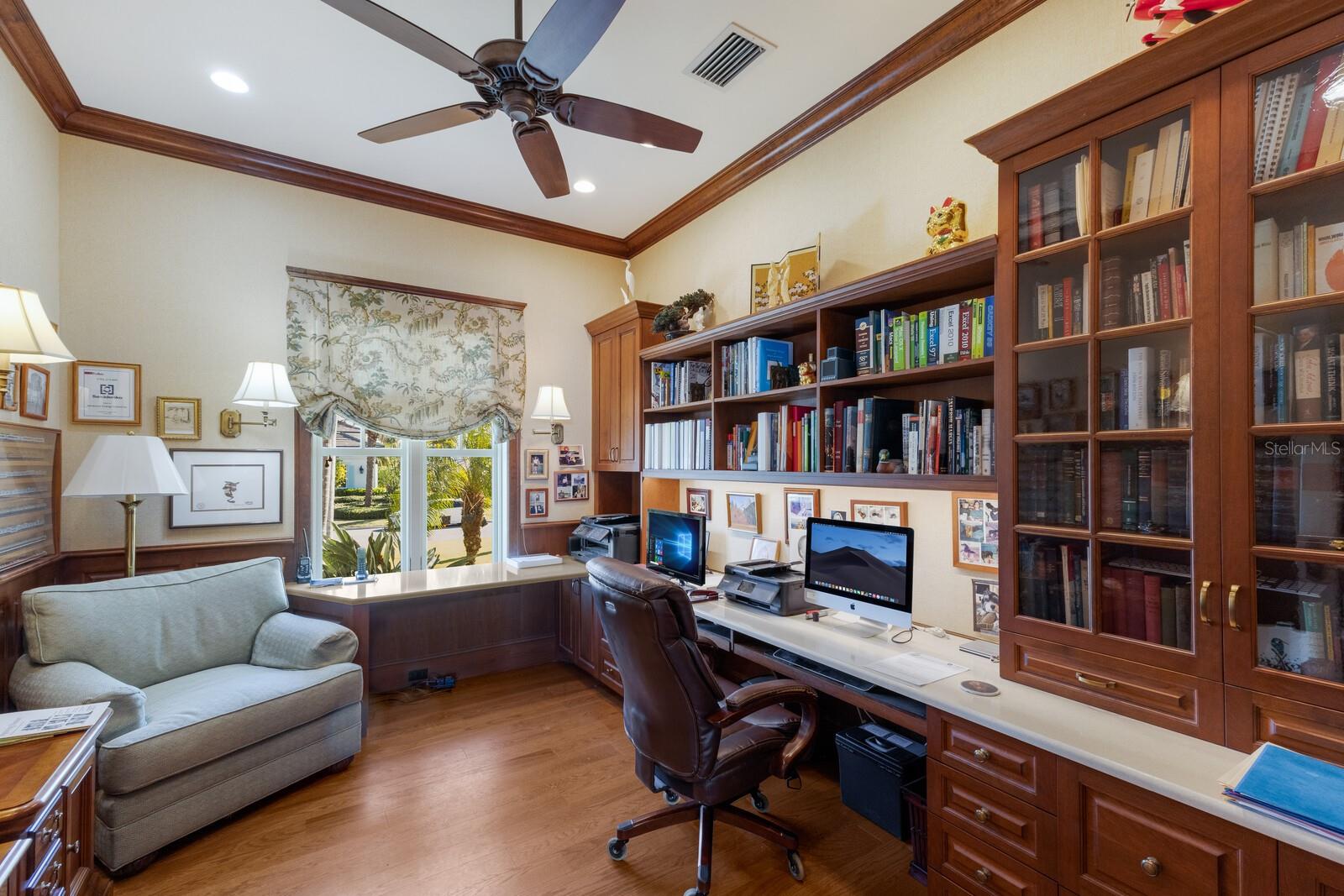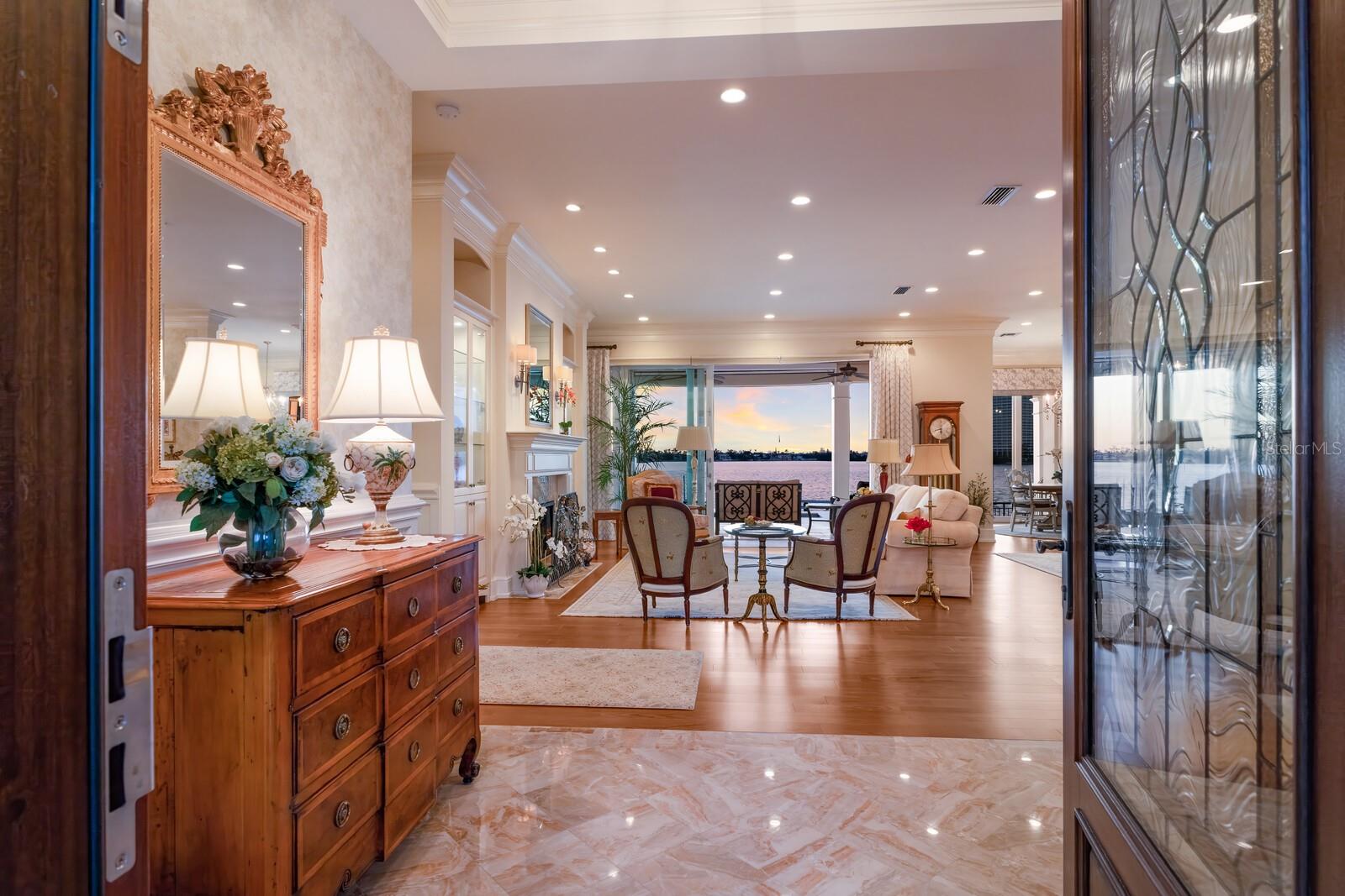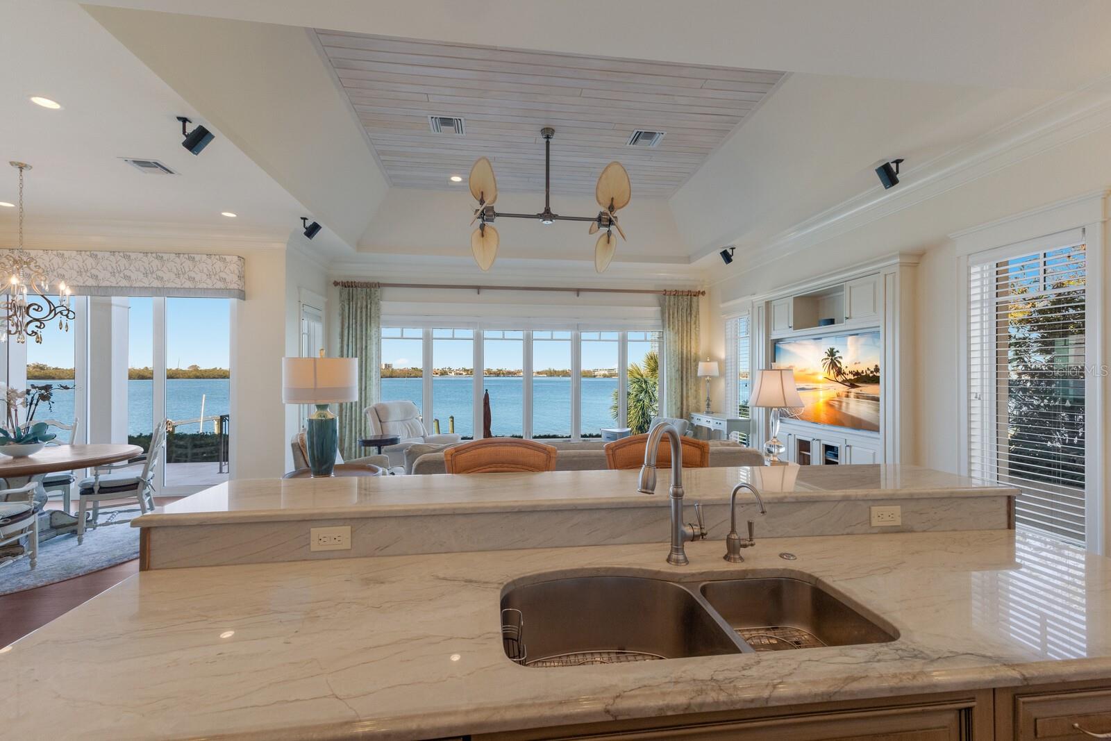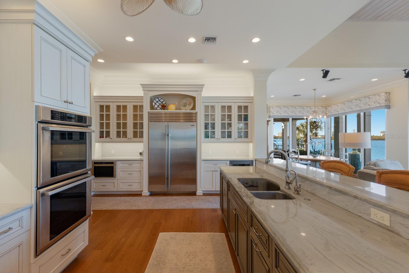 This exceptional Bayfront residence is perfectly positioned in one of Bird Key's most sought-after locations, offering breathtaking western-facing views of Sarasota Bay from a quiet cul-de-sac. Custom-built in 2017 by renowned builder Murray Homes, this home exemplifies superior craftsmanship, thoughtful design, and exquisite finishes. From the moment you arrive, this well-appointed home makes a striking impression with its manicured front lawn, lush landscaping, and impeccable curb appeal. Inside, natural light floods the space, drawing attention to the panoramic water views through expansive walls of glass. The open-concept split floor plan seamlessly blends well-defined yet flowing living areas, striking an effortless balance of comfort and elegance. The chef's kitchen, designed for both function and style, flows seamlessly into the family room and informal dining area, making it ideal for both everyday living and entertaining. A formal living room with a gas fireplace and a separate dining room add a refined touch, while the office with custom built-ins provides a peaceful workspace. The primary suite on the main level, features direct terrace access and serene Bay views. Ascending the staircase or taking the elevator to the second floor, where two guest suites with en-suite bathrooms offer comfort and privacy. A sitting area and informal dining space open onto what is arguably the most captivating part of the home--a large, west-facing terrace that showcases unrivaled waterfront views and breathtaking sunsets over Lido Key. Additional features of this custom-built home include a spacious mezzanine-level room, which has been used as a hobby space and can easily be converted into a fourth bedroom with its own bathroom and walk-in closet (image is digitally staged). The owner has remodeling plans and quotes available to share with prospective buyers. There is also a large dedicated internal storage room that can be utilized as a second office, playroom, gym, or art studio. Unexpected in size, the large laundry room offers incredible versatility and has been used as a sewing room, office, and laundry combination. Designed for Sarasota's signature indoor-outdoor lifestyle, the exterior living spaces are equally impressive. A modern saltwater pool with a spillover hot tub takes center stage, surrounded by ample covered seating and lounging areas perfect for relaxation. The outdoor kitchen provides an ideal setting for entertaining, while the private dock--complete with an 8,000 lb boat lift, a kayak lift, and a newer seawall--offers direct access to Sarasota Bay. Throughout the home, high-quality oak wood flooring, notable Level 5 wall finishes, and a home generator with automatic switchover reflect the meticulous attention to detail. An oversized double-car garage provides convenient elevator access to all four levels. This is a rare opportunity to own a waterfront home built to the highest standards, offering the advantage of a 12-foot elevation while being only eight years old. Ideally located just minutes from Lido Beach, St. Armands Circle, and downtown Sarasota, Bird Key offers an unparalleled lifestyle of convenience and exclusivity. The Bird Key Yacht Club is also undergoing a complete rebuild, set to become one of Sarasota's premier social, tennis, and boating clubs upon its anticipated completion in 2026.