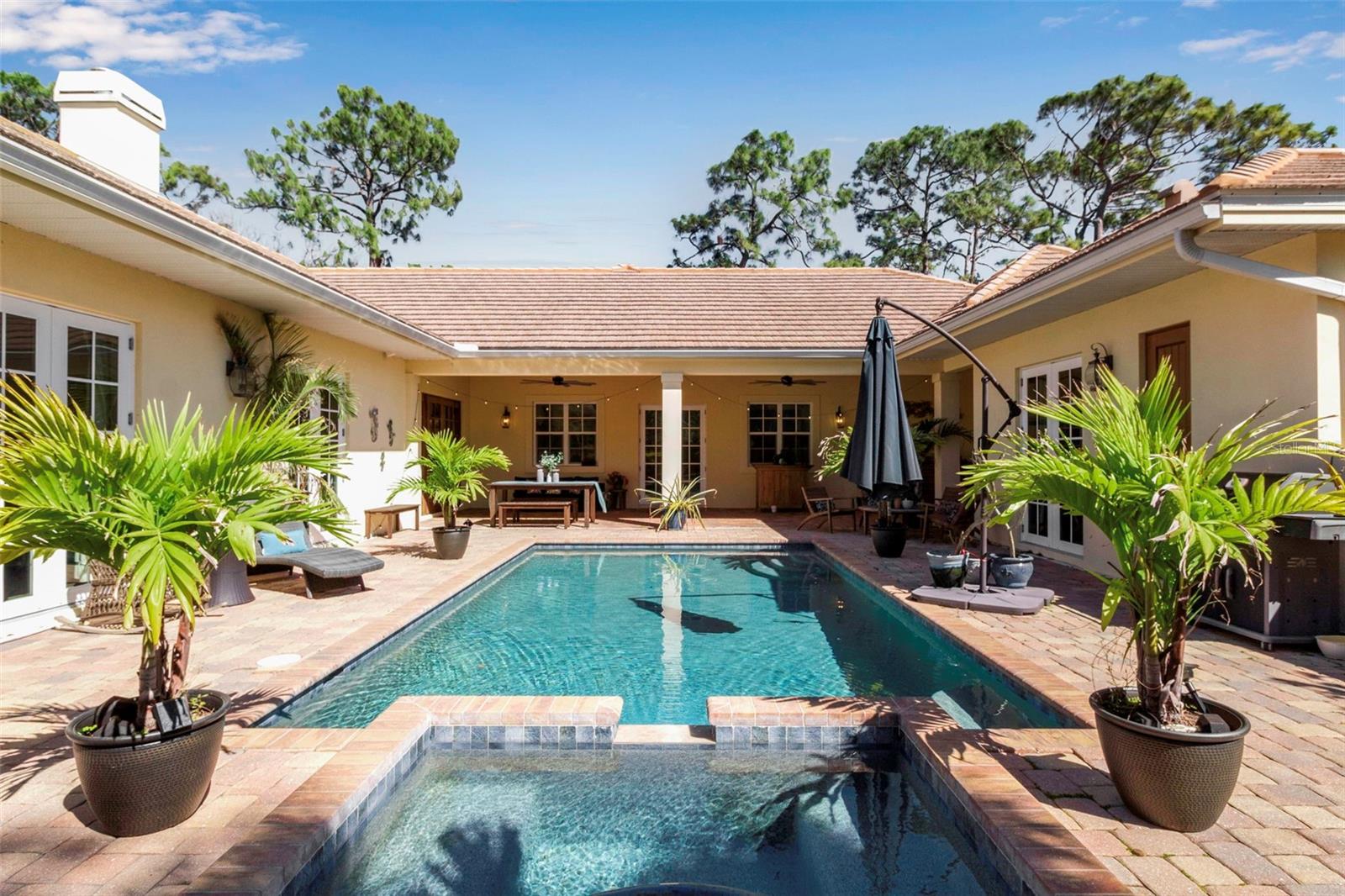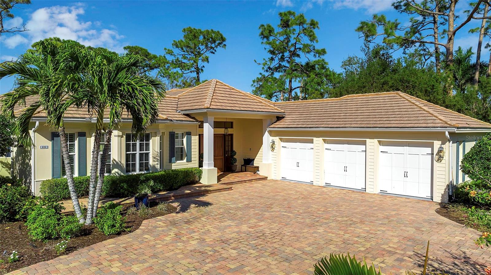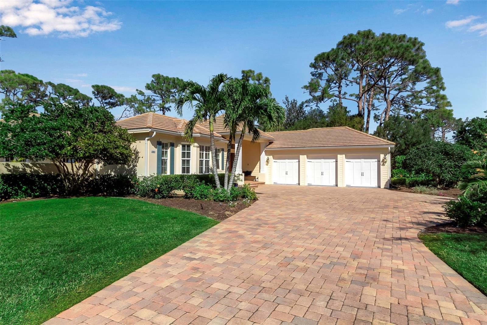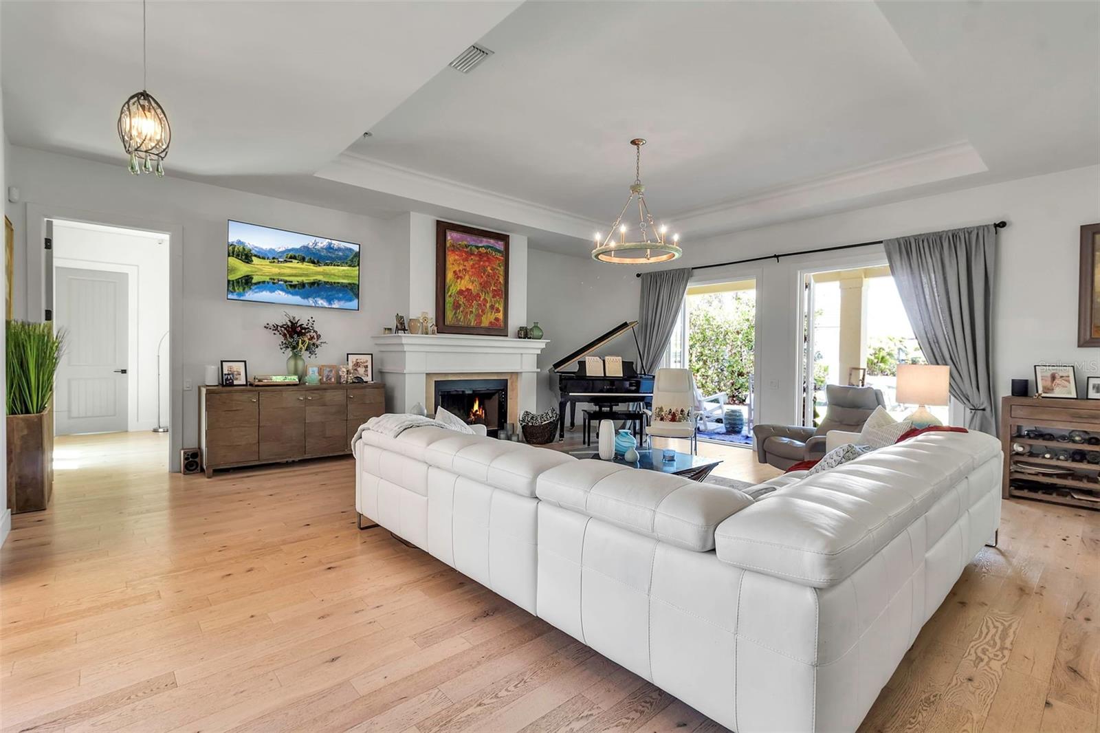 Welcome to timeless elegance and modern comfort in The Oaks Clubside. This stunning 4-bedroom plus den/office, 3.5-bath home, built in 2014 by Todd Johnson Homes, blends country modern style with refined sophistication. Situated on an oversized .64-acre corner lot, this courtyard-style residence is designed for effortless Florida living. Step through grand double wood doors into an inviting space where soaring ceilings, an open floor plan, and abundant natural light create an airy, welcoming ambiance. The home features tile and hardwood floors, hurricane impact windows and doors, a spacious 3-car garage, and thoughtful architectural details throughout.The gourmet kitchen is a chef's dream, offering stainless steel appliances, a breakfast bar, and a cozy eat-in nook that opens seamlessly to the family room--complete with a fireplace for added charm. A private casita with its own entrance and full bath offers incredible flexibility--ideal for hosting guests, a home office, or a personal studio retreat. Nestled on a serene lakeside lot, the outdoor living spaces are equally impressive. Enjoy peaceful water views from the privacy of your courtyard pool and spa. Relax under the expansive covered patio or soak up the sunshine from the open-air seating area as you unwind in the tranquility of your surroundings. More than just a home, this is a lifestyle. Ownership includes mandatory membership in The Oaks Club, Sarasota's premier golf and country club. Enjoy two championship golf courses, a top-tier tennis program, state-of-the-art WellFit center, fine dining, and a vibrant calendar of social and recreational activities--all in the heart of South Sarasota.