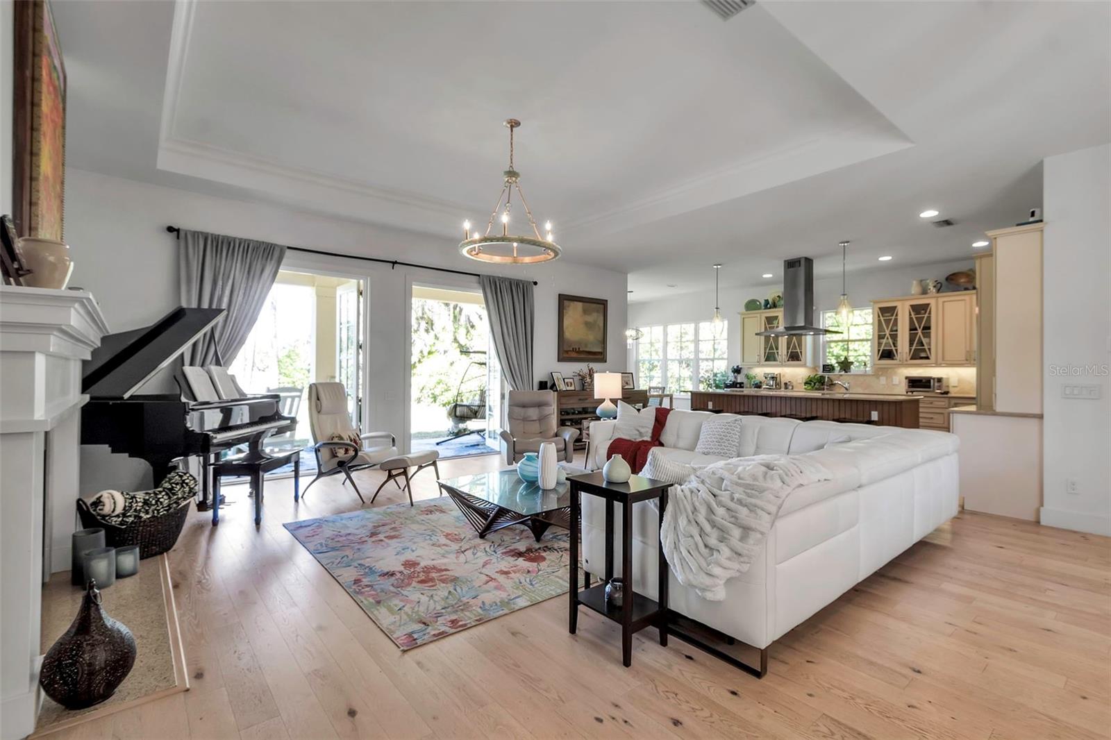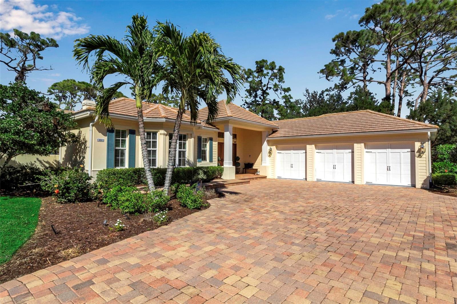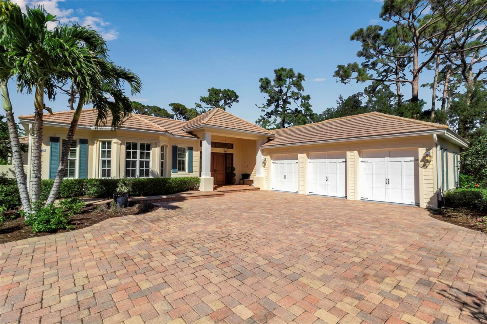 Welcome to timeless elegance and modern comfort in The Oaks Clubside. This stunning 4-bedroom plus den/office, 3.5-bath home, built in 2014 by Todd Johnson Homes, blends country modern style with refined sophistication. Situated on an oversized .64-acre corner lot, this courtyard-style residence is designed for effortless Florida living. Step through grand double wood doors into an inviting space where soaring ceilings, an open floor plan, and abundant natural light create an airy, welcoming ambiance. The home features tile and hardwood floors, hurricane impact windows and doors, a spacious 3-car garage, and thoughtful architectural details throughout.The gourmet kitchen is a chef's dream, offering stainless steel appliances, a breakfast bar, and a cozy eat-in nook that opens seamlessly to the family room--complete with a fireplace for added charm. A private casita with its own entrance and full bath offers incredible flexibility--ideal for hosting guests, a home office, or a personal studio retreat. Nestled on a serene lakeside lot, the outdoor living spaces are equally impressive. Enjoy peaceful water views from the privacy of your courtyard pool and spa. Relax under the expansive covered patio or soak up the sunshine from the open-air seating area as you unwind in the tranquility of your surroundings. More than just a home, this is a lifestyle. Ownership includes mandatory membership in The Oaks Club, Sarasota's premier golf and country club. Enjoy two championship golf courses, a top-tier tennis program, state-of-the-art WellFit center, fine dining, and a vibrant calendar of social and recreational activities--all in the heart of South Sarasota.