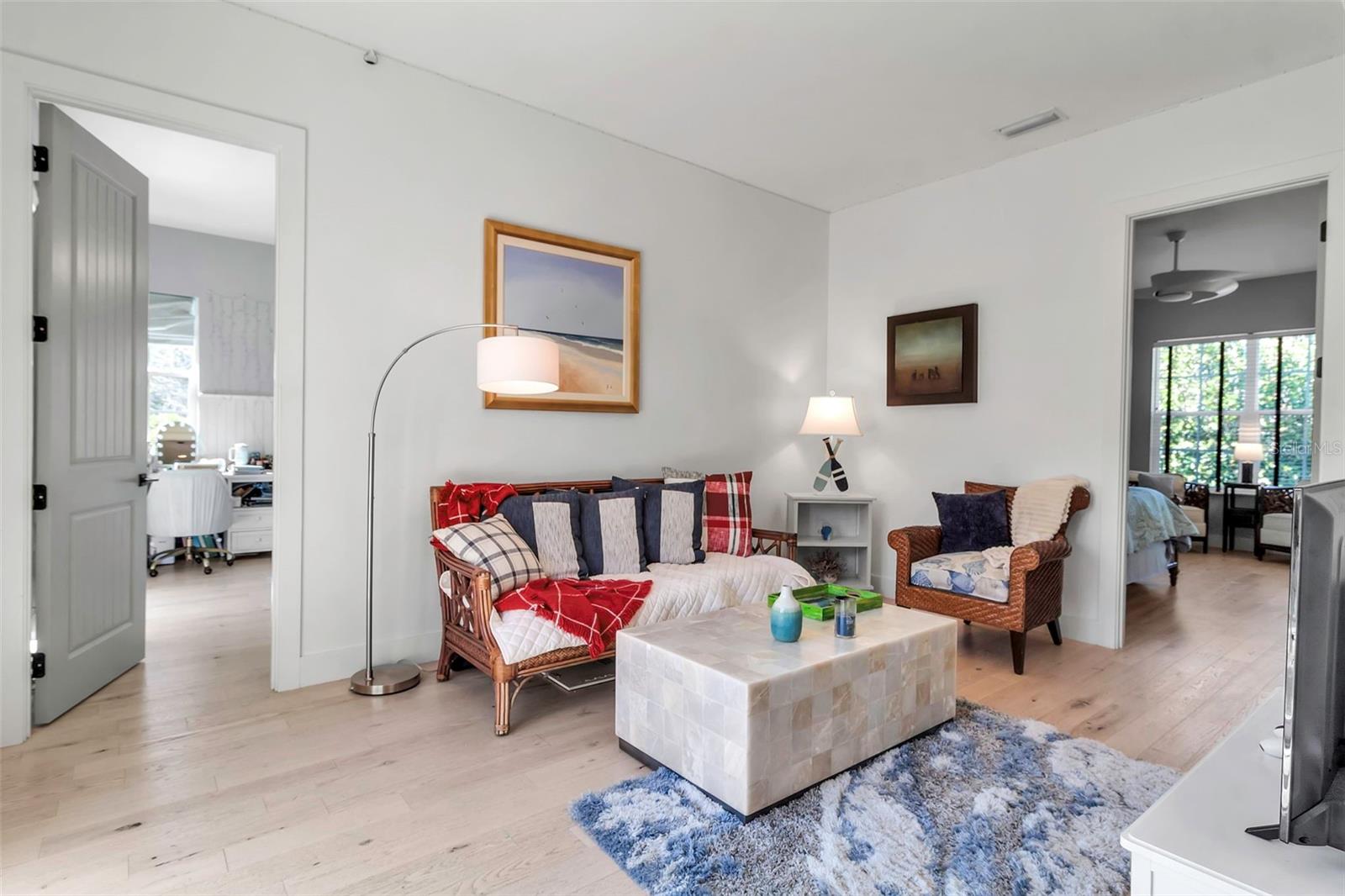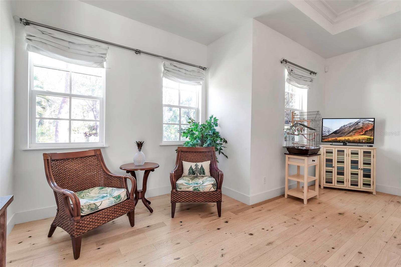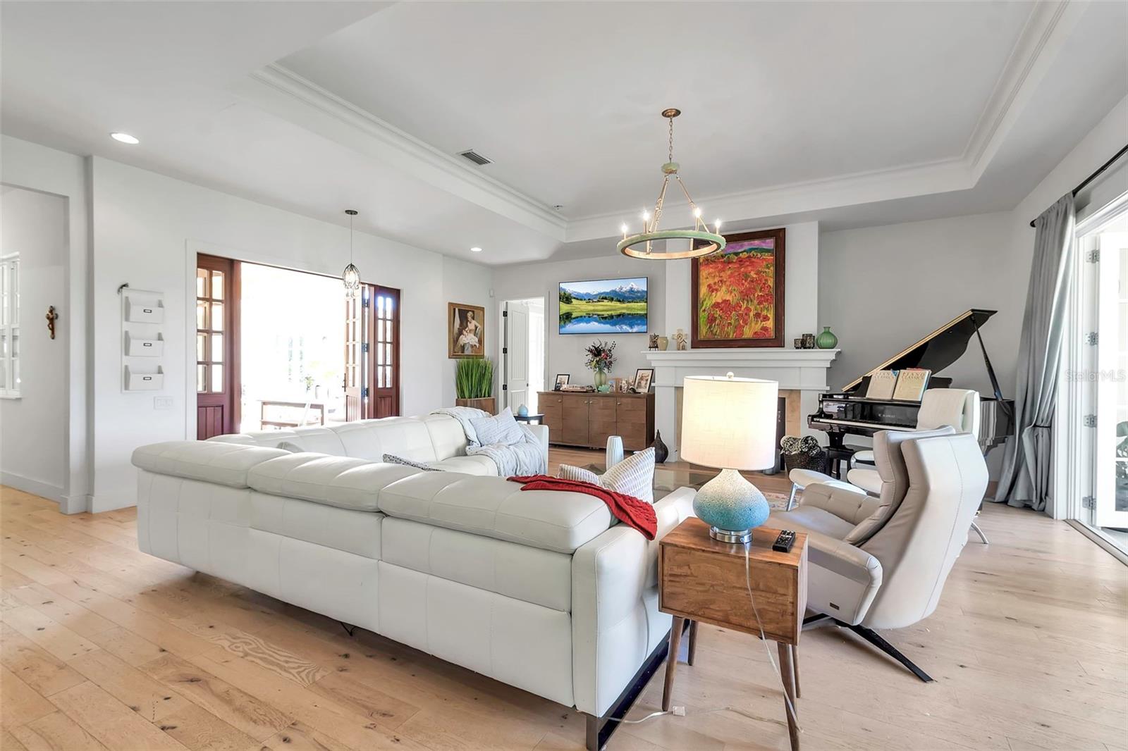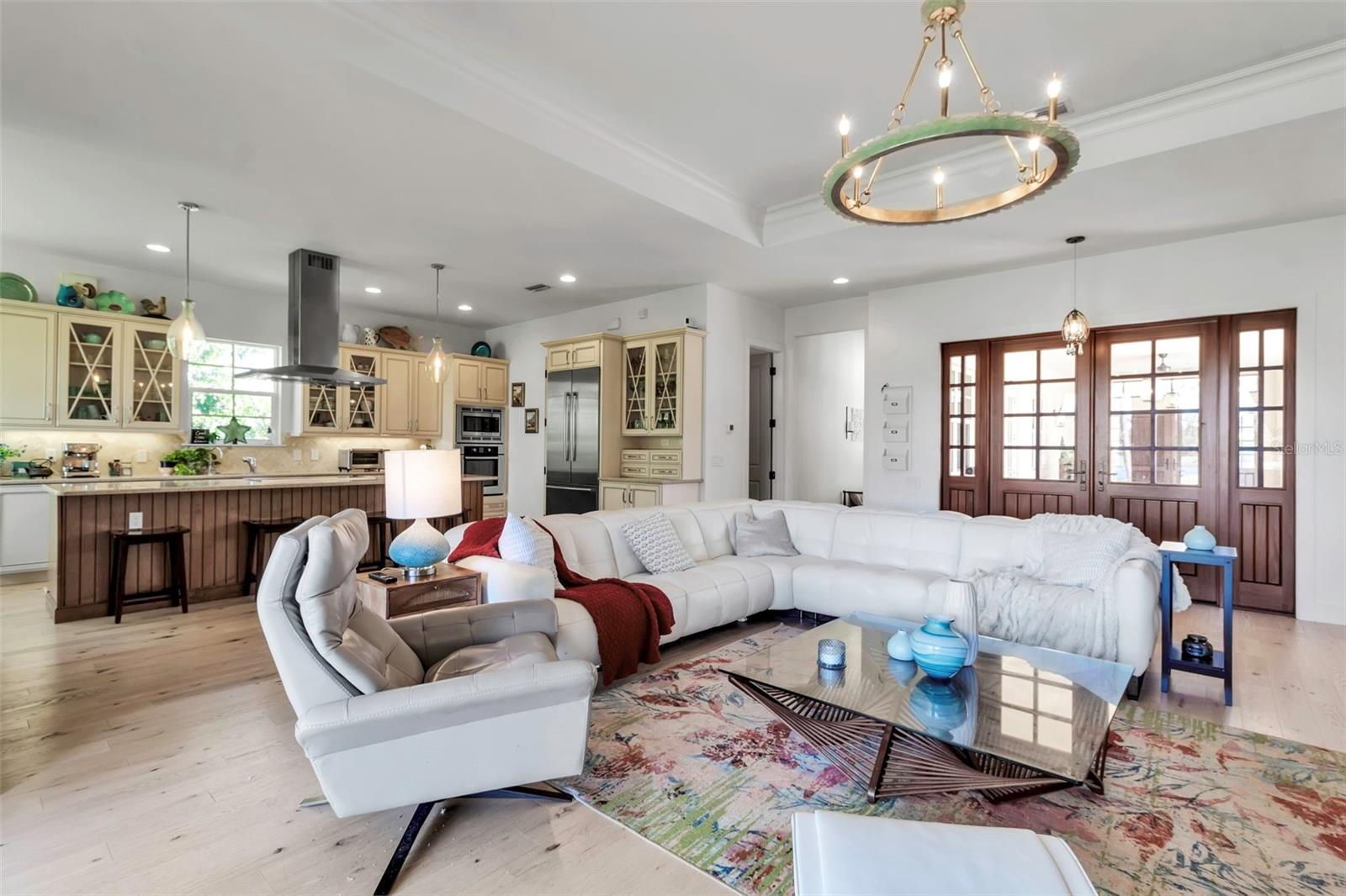 Welcome to timeless elegance and modern comfort in The Oaks Clubside. This stunning 4-bedroom plus den/office, 3.5-bath home, built in 2014 by Todd Johnson Homes, blends country modern style with refined sophistication. Situated on an oversized .64-acre corner lot, this courtyard-style residence is designed for effortless Florida living. Step through grand double wood doors into an inviting space where soaring ceilings, an open floor plan, and abundant natural light create an airy, welcoming ambiance. The home features tile and hardwood floors, hurricane impact windows and doors, a spacious 3-car garage, and thoughtful architectural details throughout.The gourmet kitchen is a chef's dream, offering stainless steel appliances, a breakfast bar, and a cozy eat-in nook that opens seamlessly to the family room--complete with a fireplace for added charm. A private casita with its own entrance and full bath offers incredible flexibility--ideal for hosting guests, a home office, or a personal studio retreat. Nestled on a serene lakeside lot, the outdoor living spaces are equally impressive. Enjoy peaceful water views from the privacy of your courtyard pool and spa. Relax under the expansive covered patio or soak up the sunshine from the open-air seating area as you unwind in the tranquility of your surroundings. More than just a home, this is a lifestyle. Ownership includes mandatory membership in The Oaks Club, Sarasota's premier golf and country club. Enjoy two championship golf courses, a top-tier tennis program, state-of-the-art WellFit center, fine dining, and a vibrant calendar of social and recreational activities--all in the heart of South Sarasota.