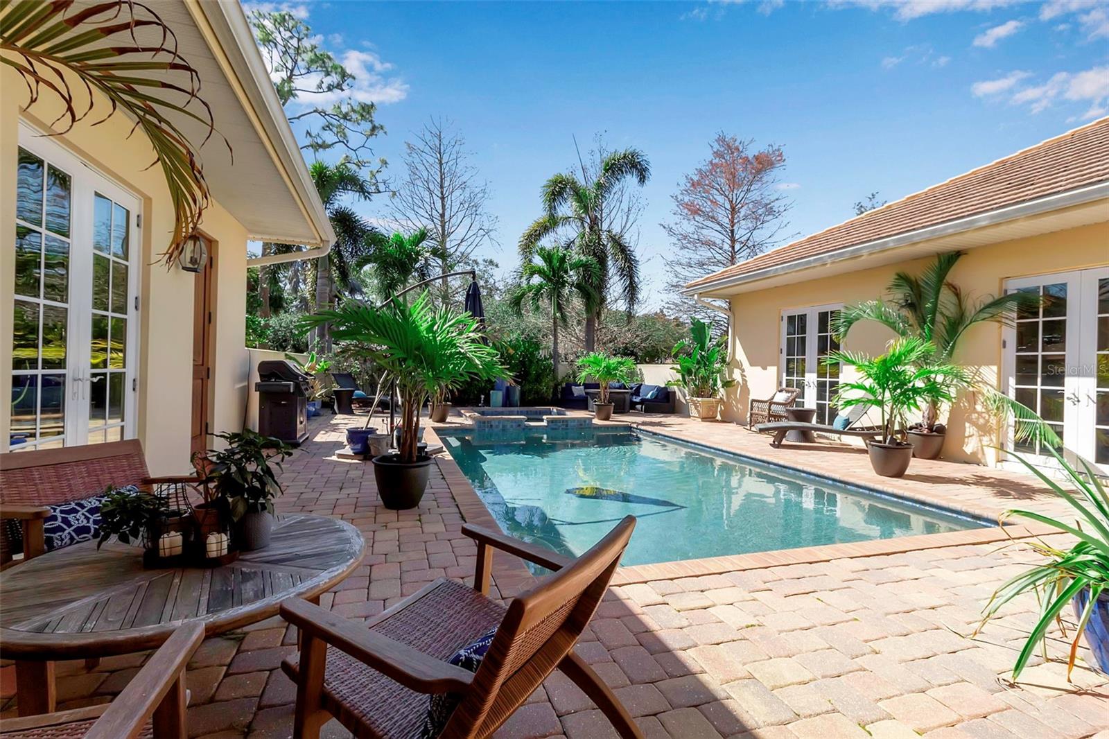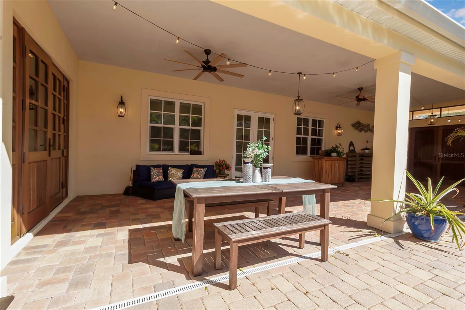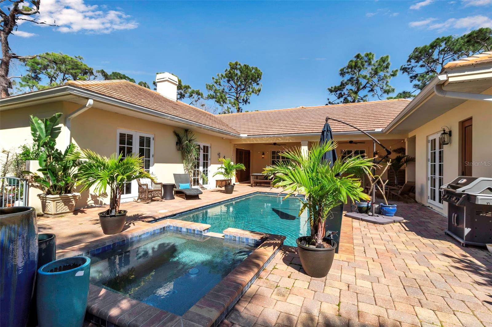 - Exterior: Courtyard, French Doors, Lighting, Outdoor Grill, Sliding Doors