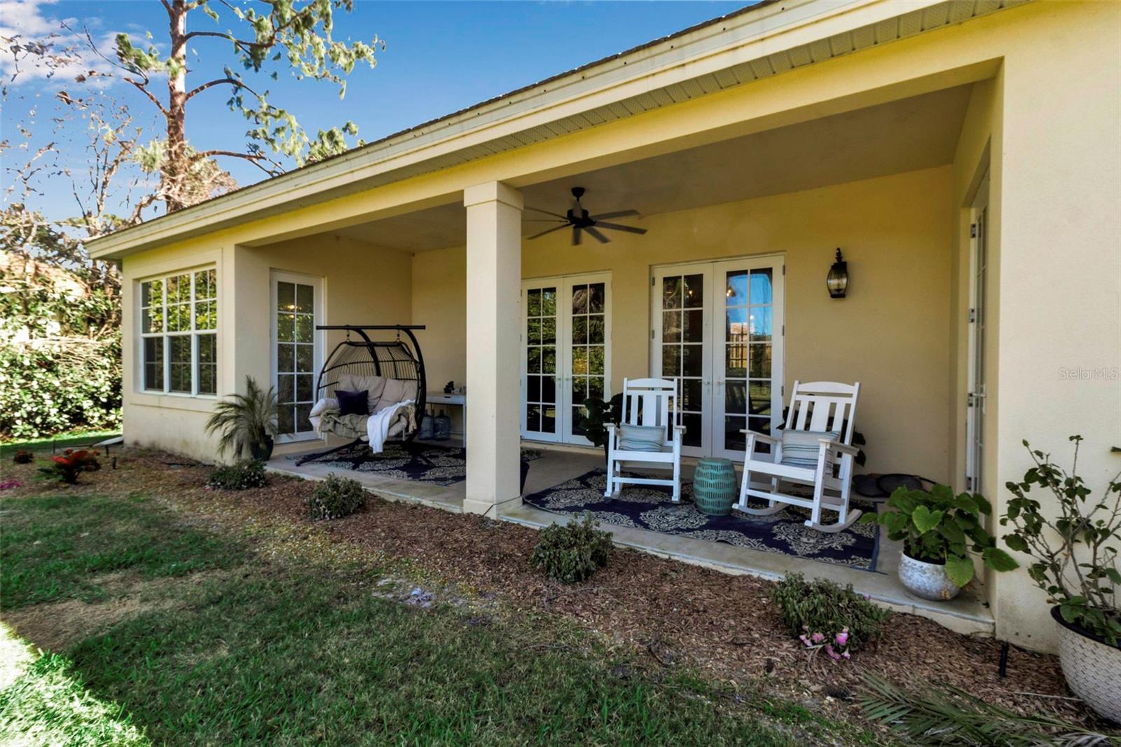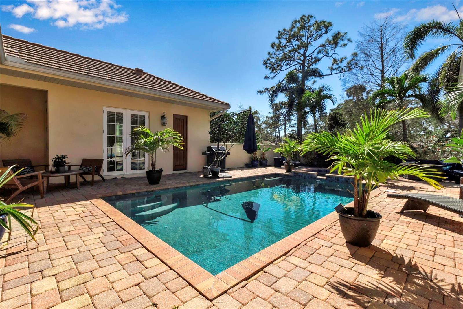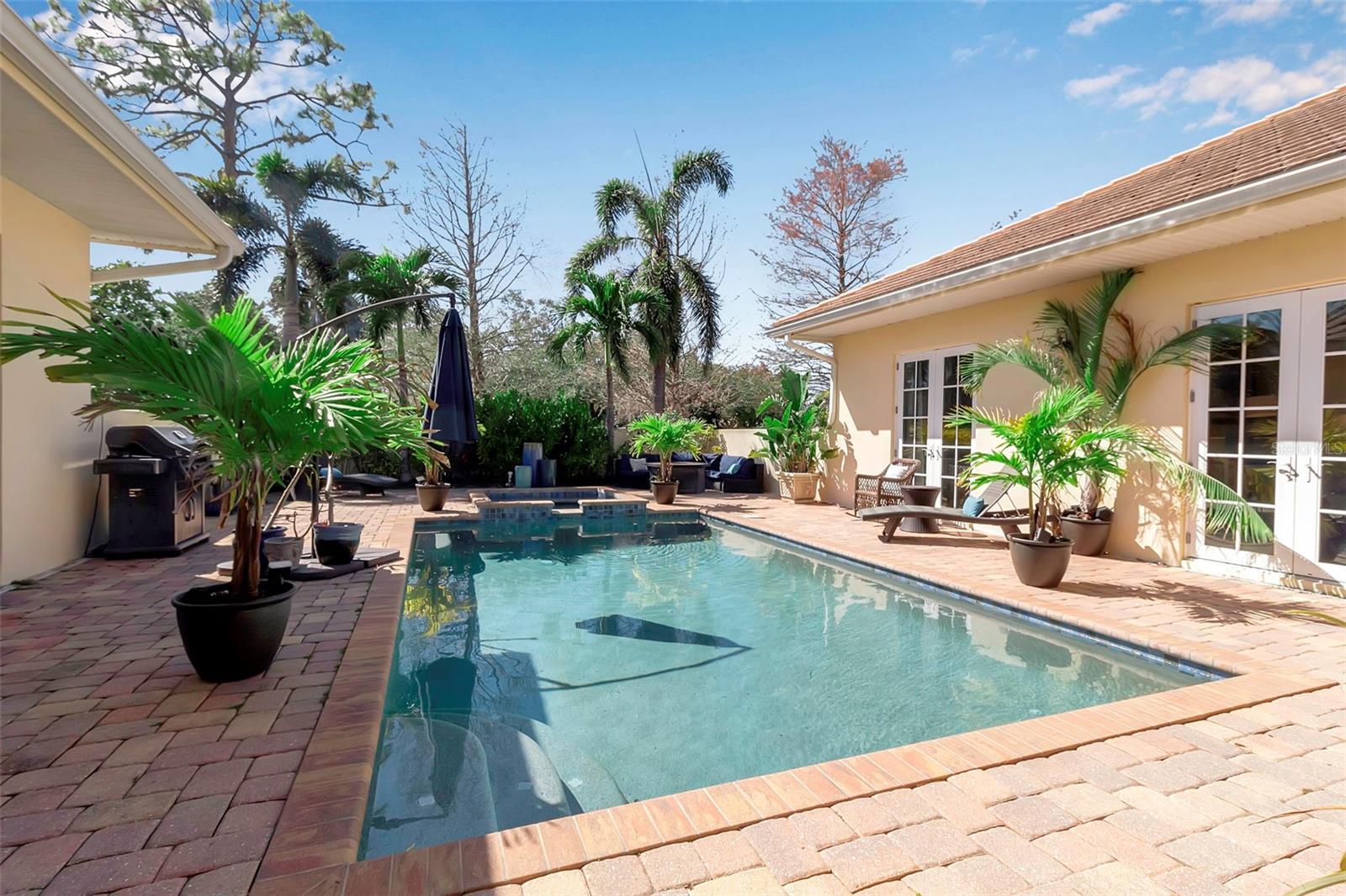 - Exterior: Courtyard, French Doors, Lighting, Outdoor Grill, Sliding Doors