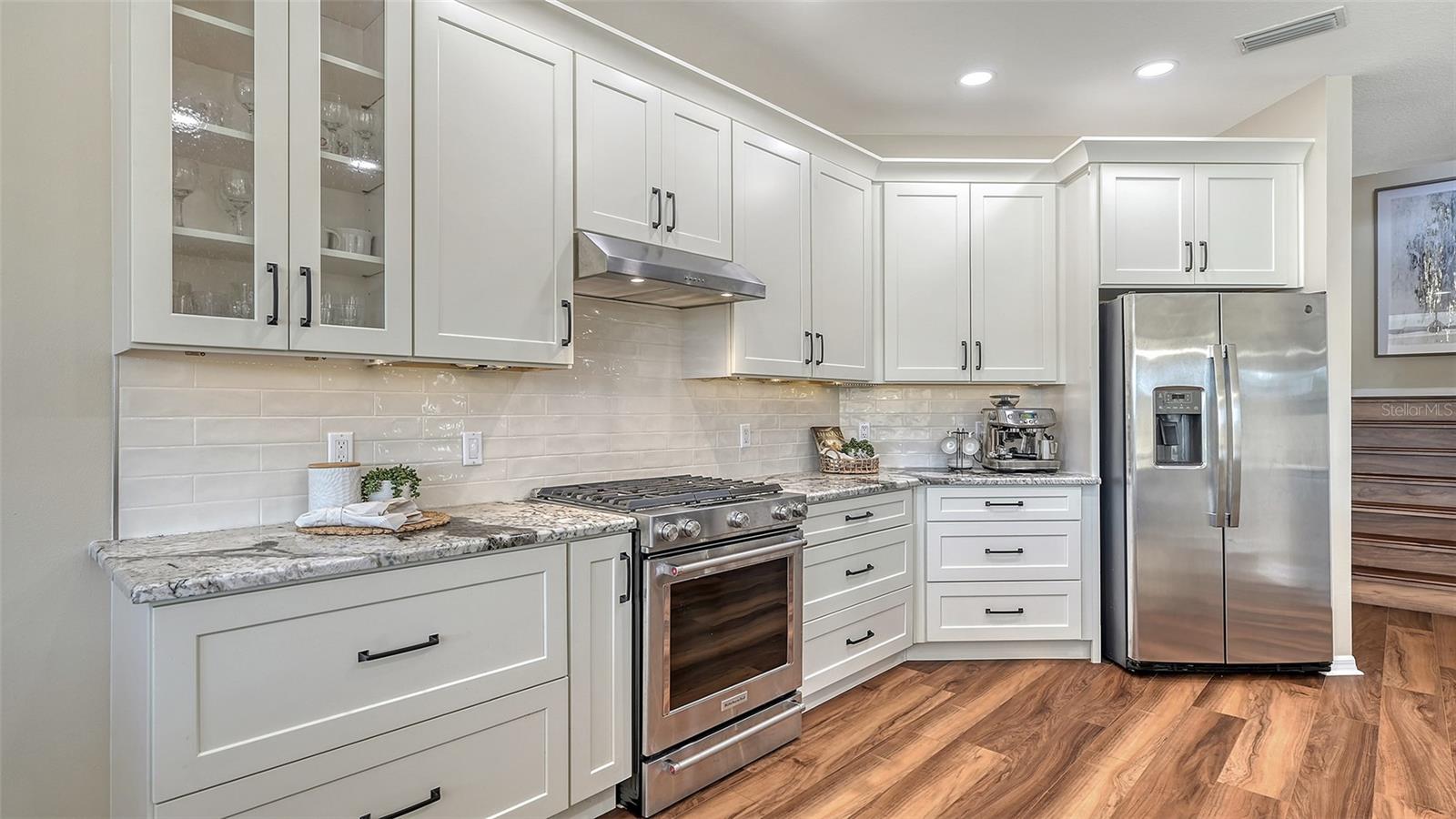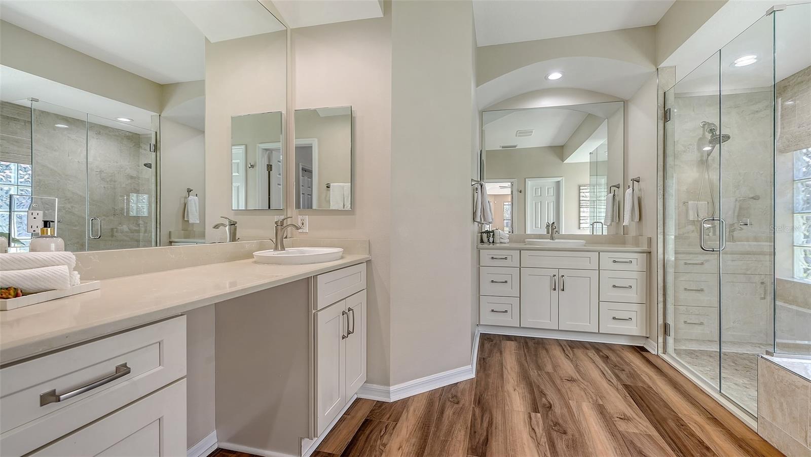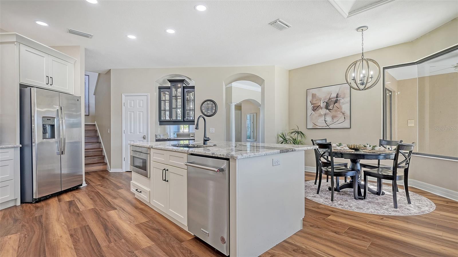 Welcome to this beautifully remodeled and move-in-ready Lee Wetherington home, perfectly nestled in the heart of Lakewood Ranch. Enjoy breathtaking and private views of the serene lake from this thoughtfully updated residence.Boasting five bedrooms, four full baths, and multiple living spaces, this home is designed for both comfort and versatility. The expansive floor plan includes a formal dining room, butler's bar, executive office, and a flexible upstairs fifth bedroom--ideal as a bonus room, guest retreat, or in-law suite with a full bath.The gourmet kitchen has been completely renovated, featuring high-grade granite countertops, a stylish tile backsplash, stainless steel appliances (including range hood, 6-burner gas range, refrigerator, dishwasher, and an in-cabinet microwave), and an oversized island with storage and seating. The stunning soft-close wood cabinetry and large walk-in pantry complete this chef's dream.The primary suite is a true sanctuary with two custom walk-in closets, a cozy sitting area, private lanai access, and a completed renovated, spa-inspired bathroom featuring separate vanities, a walk-in shower, and a soaking tub.Step outside to your peaceful oasis with an expansive lanai with a heated pool and spa, where you can relax and take in the stunning lake views--perfect for entertaining and embracing the Florida lifestyle.Additional upgrades include: new whole-house generator, new luxury vinyl flooring throughout (no carpet!), new light fixtures, ceiling fans, and LED lighting, exquisite crown molding & tray ceilings, fresh interior paint, and a well-appointed laundry room with utility sink and cabinetry.Located in Riverwalk Ridge, a hidden gem of Lakewood Ranch, this home is within an A-rated school district and just minutes from Lakewood Ranch Main Street, Waterside Place, UTC Mall, downtown Sarasota, three airports, and world-famous beaches including Siesta Key, Lido Key, Longboat Key, and Anna Maria Island.This exceptional home won't last long--schedule your private showing today!