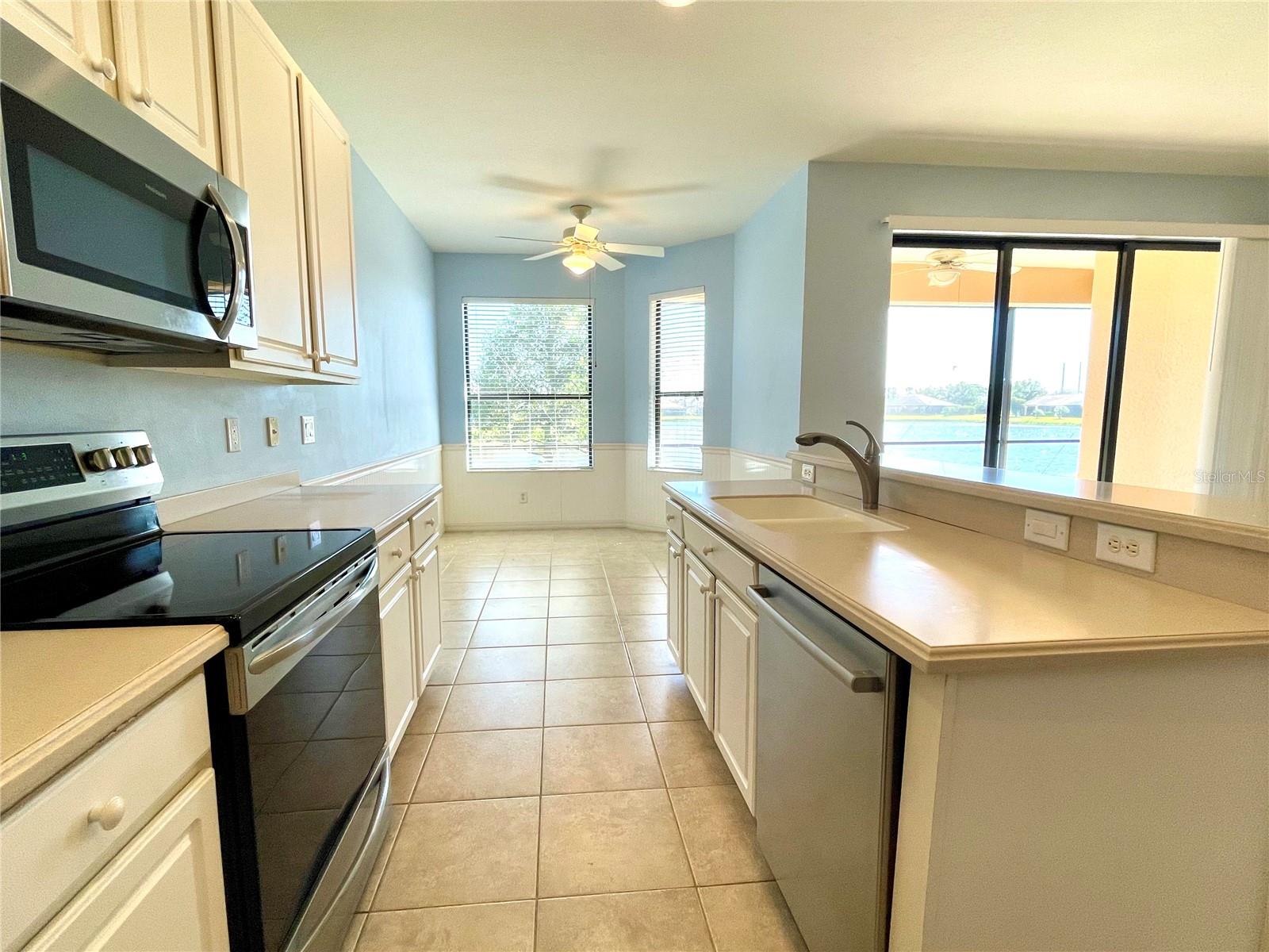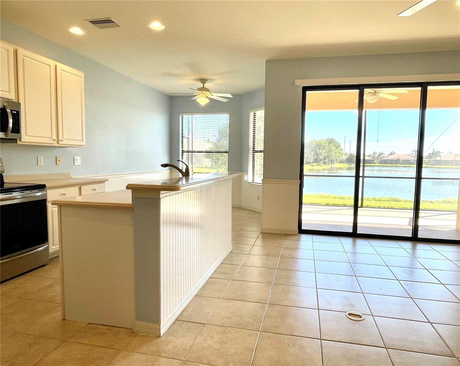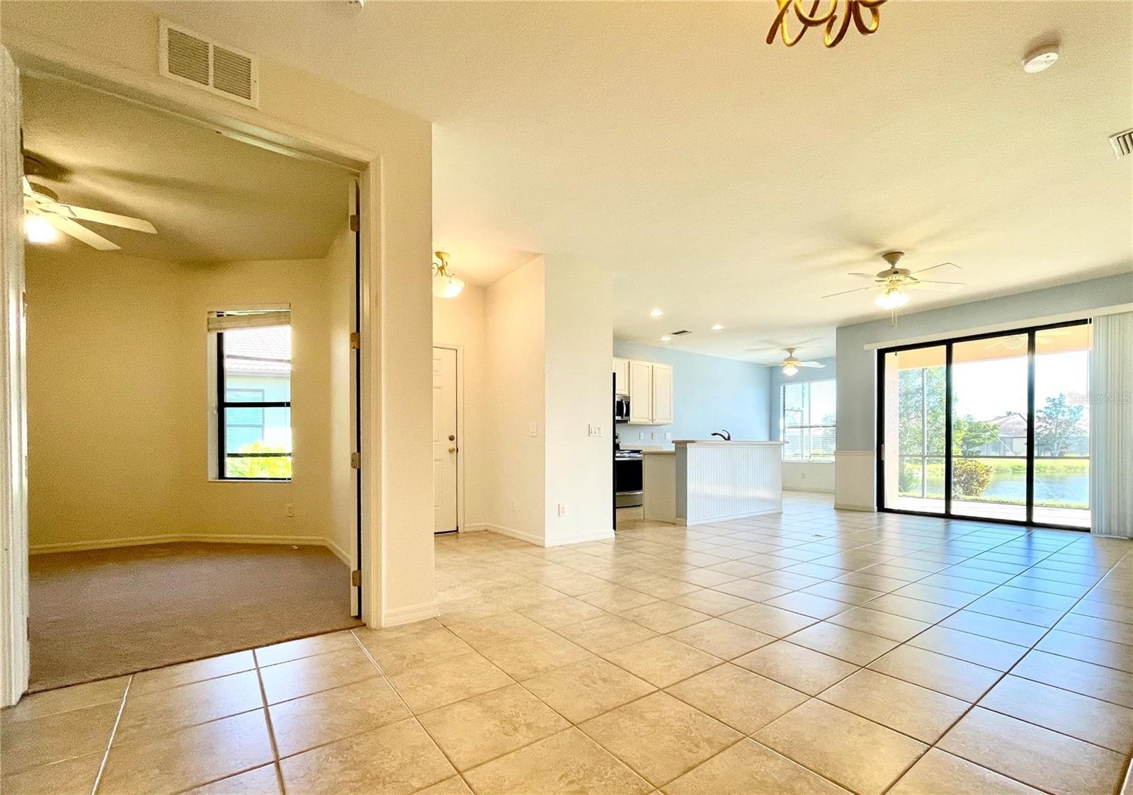 Welcome to Venetian Falls a vibrant 55+ maintenance-free community that combines relaxation & recreation, known for its exceptional amenities. This 2 bedroom 2 bathroom plus a den is overlooking the lake with views from the dining room, master bedroom, & lanai. This open floor plan is ideal for entertaining. The bedrooms are newly carpeted awaiting your personal touches & furnishings. The master suite has plenty of floor space, double closets, and a large walk-in shower that is fully accessible. Exceptional amenities include a resort-style clubhouse, a heated lap pool and spa, a resistance-walking pool, a fully equipped fitness center, a billiards room, bocce courts, and a full-time activities director, all managed by an on-site team. The reasonable HOA fee covers lawn maintenance, irrigation, roof pressure washing, exterior paint, internet, and basic cable--plus, there's no CDD fee. The Falls is nestled minutes away from pristine beaches, historic downtown, a state park, walking/biking trails, entertainment, & shopping. Residents of Venetian Falls utilize an array of amenities that encourage an active and social lifestyle. With scheduled activities & spontaneous gatherings, we hope you make lasting friendships and memories in this welcoming community!