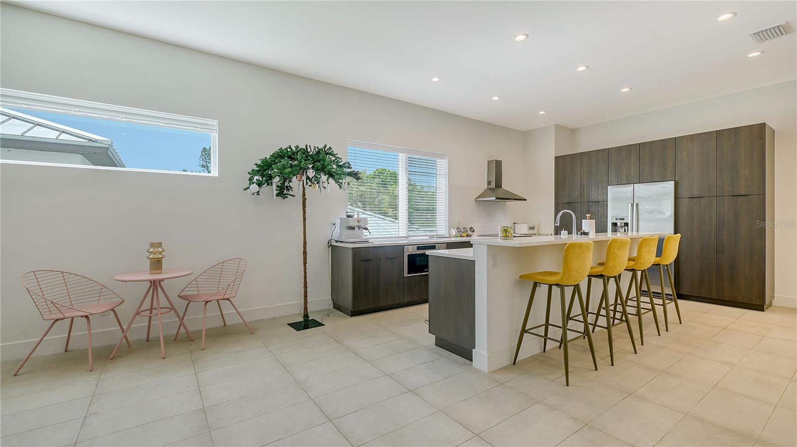 DOWNTOWN FAMILY COMPOUND OR INVESTMENT DUPLEX. TWO ADA-COMPLIANT RESIDENCES WITH THREE CAR GARAGE, ELEVATOR, SOLAR, PIPED NATURAL GAS. Welcome to one of Gillespie Park's most extraordinary finds--a sleek, contemporary MULTI-GENERATION residence or INCOME PRODUCING INVESTMENT just steps from downtown Sarasota! This 2023 custom-built two-story home offers over 4,400 sq. ft. of luxurious living space, thoughtfully crafted for two households to live independently yet connected, or easily transformed into a spacious single-family retreat. TWO 2200 SQ.FT. RESIDENCES: Each floor boasts a 2 bed / 2 bath ADA-compliant layout, soaring 10-ft ceilings, and abundant natural light with motorized blinds, downstairs surround sound. Gourmet Kitchens: Downstairs: Thermador appliances, 6-burner gas cooktop, dual dishwashers, walk-in pantry, and a stylish coffee/wine bar, laundry room. Upstairs: Bosch appliances, laundry room, and two ensuite bedrooms. Outdoor Living: Ground Floor courtyard with outdoor kitchen, hot tub, and lush privacy walls. Expansive Second Floor Balcony is partially covered, perfect for relaxing or entertaining. Energy Smart: Natural Gas tankless hot water heaters. Solar panels currently power the second floor but can be switched to the ground level. Rare 3-Car Garage with rear alley access--one of the few blocks in Gillespie Park with this feature. Elevator + Wide Stairwell for seamless access between floors. Zoned for Short-Term Rentals - a golden opportunity for investors! Gillespie Park Amenities: Dog run, tennis courts, and a vibrant community vibe. Walkable Lifestyle: Minutes from the Rosemary Arts District, downtown dining, shopping, and theaters.