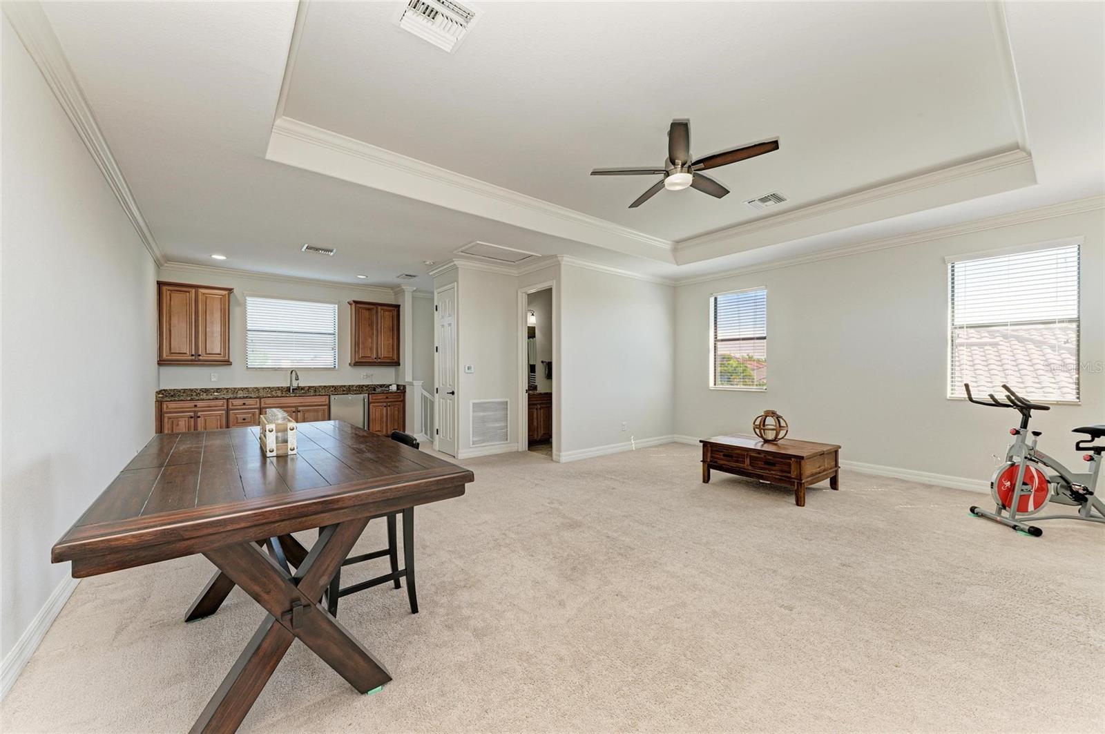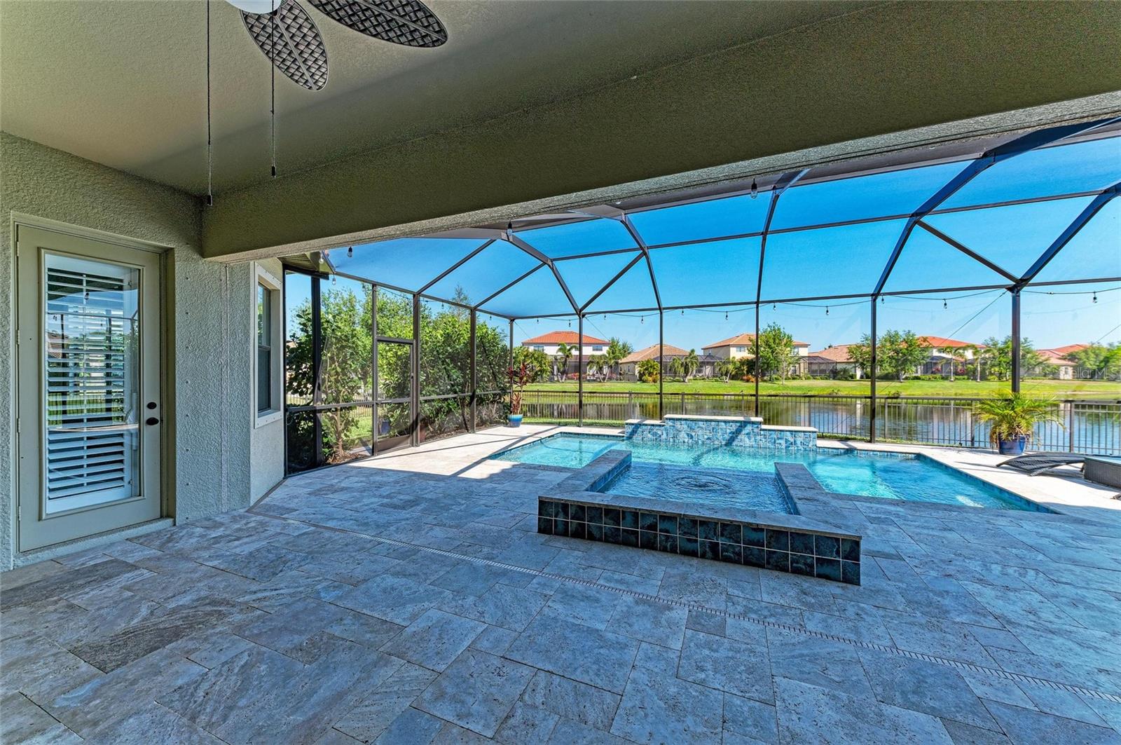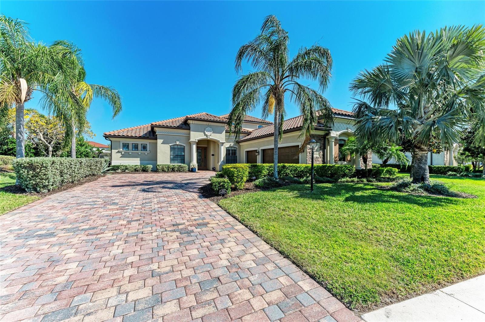 *** PRICE IMPROVEMENT ***. Discover a stunning home in Bridgewater, a fantastic gated community in Lakewood Ranch. This premium corner lot property offers beautiful water views, lush tropical landscaping, and maintenance-free living. The exterior boasts stunning architectural details with decorative stonework, a tile roof, and brick pavers. The fenced yard includes a screened-in lanai, and there's a three-car garage to store all your toys.Step inside to 3,178 sq. ft. of elegant living space, featuring an open floor plan with tile throughout the main living areas and carpet in the upstairs area. High ceilings, upscale finishes, and fresh paint create a modern, comfortable atmosphere. The spacious great room flows seamlessly into the gourmet kitchen, complete with granite countertops, premium appliances, and an oversized island perfect for entertaining. The primary suite comes with a spa-like ensuite bath, and a generous walk-in closet.The private lanai is perfect for relaxation or entertaining, with a heated spa and pool that shows off the stunning pond views. The pool can also be converted to a saltwater system for added convenience. Upstairs, a large bonus room with a kitchenette and full bathroom provides endless possibilities--ideal for a guest suite, media room, or private office.Bridgewater residents enjoy access to a park, playground, and gazebo area overlooking a serene lake. Just outside the neighborhood, you'll find three large lakes, a public playground, and scenic walking trails. Lakewood Ranch is known for its A+ rated schools and is just a short drive from Sarasota, Anna Maria Island, and I-75, offering easy access to Tampa, fine dining, world-class shopping, and the Gulf's famous beaches.Located minutes from top-rated schools, including Lakewood Ranch Preparatory Academy ( a public Tuition- free Charter school) , shopping, dining, and world-class amenities, this home offers the perfect combination of luxury, convenience, and community living. Don't miss the opportunity to own this exquisite home and start living in paradise!