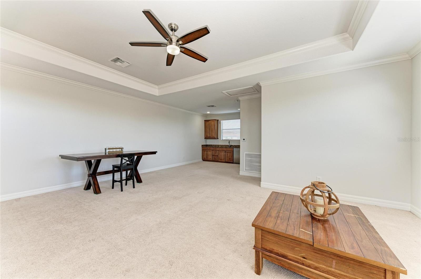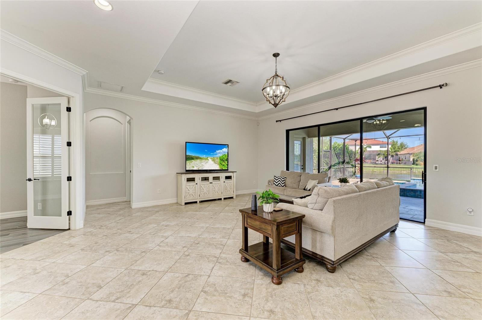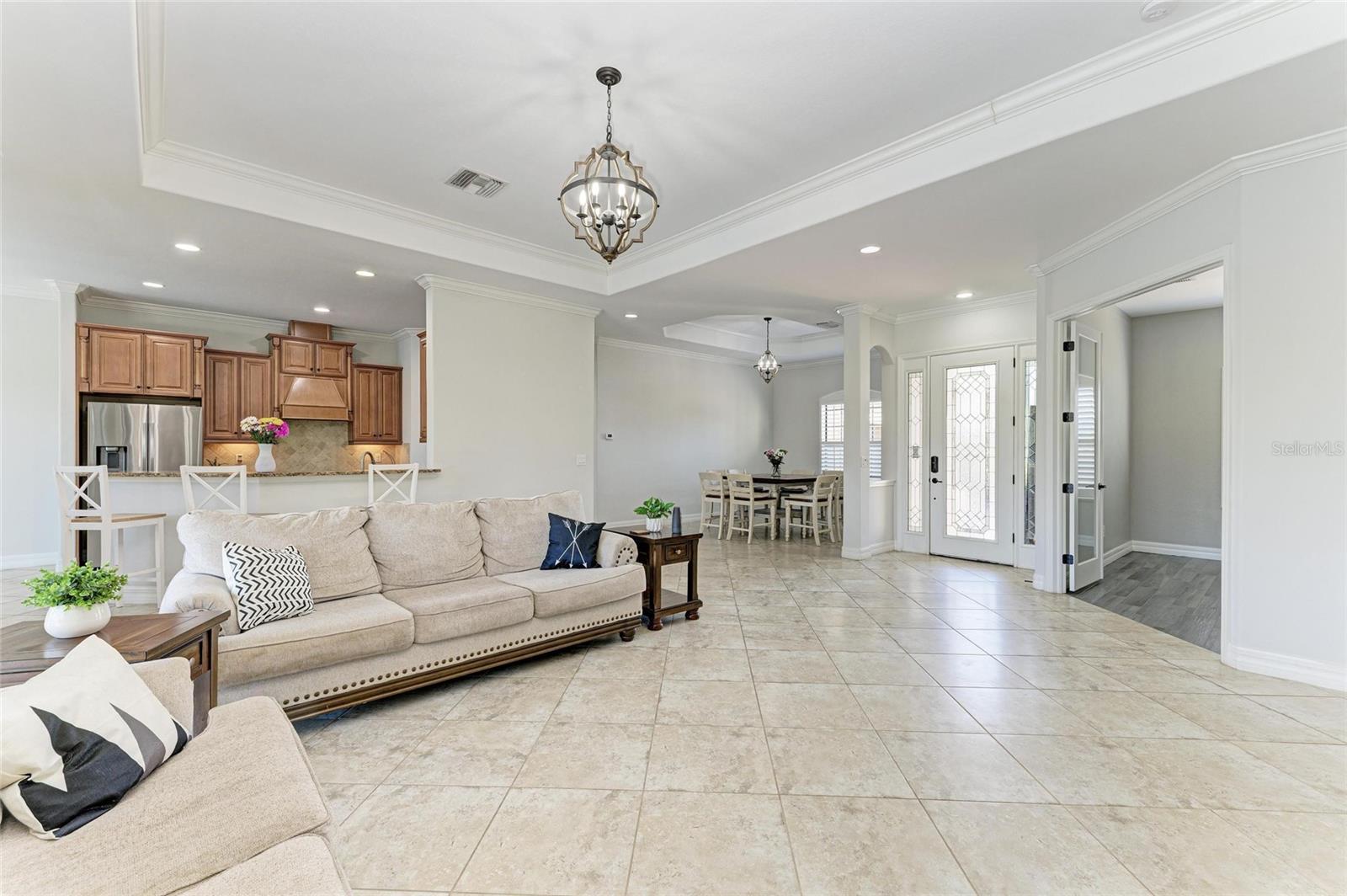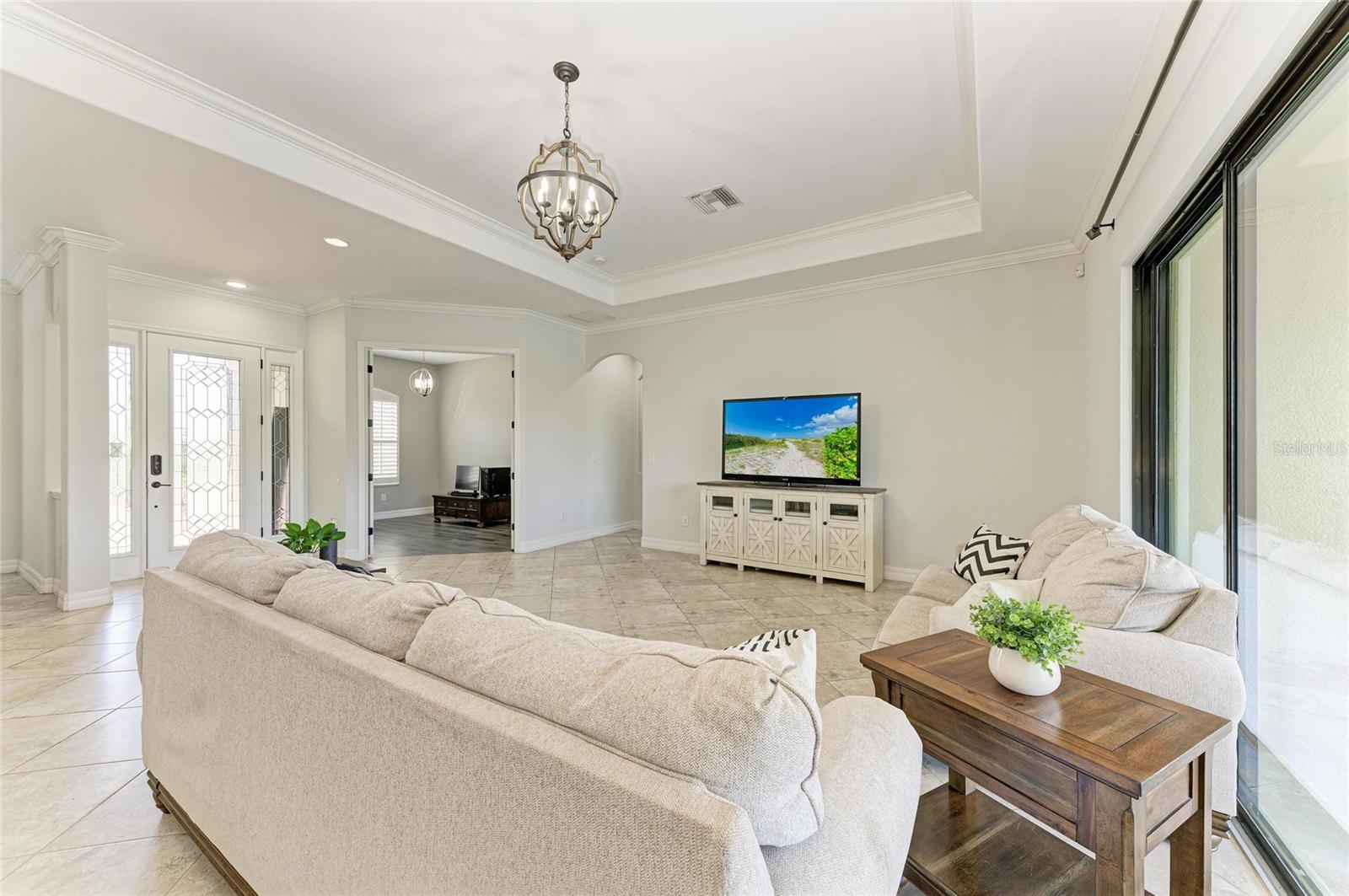 *** PRICE IMPROVEMENT ***. Discover a stunning home in Bridgewater, a fantastic gated community in Lakewood Ranch. This premium corner lot property offers beautiful water views, lush tropical landscaping, and maintenance-free living. The exterior boasts stunning architectural details with decorative stonework, a tile roof, and brick pavers. The fenced yard includes a screened-in lanai, and there's a three-car garage to store all your toys.Step inside to 3,178 sq. ft. of elegant living space, featuring an open floor plan with tile throughout the main living areas and carpet in the upstairs area. High ceilings, upscale finishes, and fresh paint create a modern, comfortable atmosphere. The spacious great room flows seamlessly into the gourmet kitchen, complete with granite countertops, premium appliances, and an oversized island perfect for entertaining. The primary suite comes with a spa-like ensuite bath, and a generous walk-in closet.The private lanai is perfect for relaxation or entertaining, with a heated spa and pool that shows off the stunning pond views. The pool can also be converted to a saltwater system for added convenience. Upstairs, a large bonus room with a kitchenette and full bathroom provides endless possibilities--ideal for a guest suite, media room, or private office.Bridgewater residents enjoy access to a park, playground, and gazebo area overlooking a serene lake. Just outside the neighborhood, you'll find three large lakes, a public playground, and scenic walking trails. Lakewood Ranch is known for its A+ rated schools and is just a short drive from Sarasota, Anna Maria Island, and I-75, offering easy access to Tampa, fine dining, world-class shopping, and the Gulf's famous beaches.Located minutes from top-rated schools, including Lakewood Ranch Preparatory Academy ( a public Tuition- free Charter school) , shopping, dining, and world-class amenities, this home offers the perfect combination of luxury, convenience, and community living. Don't miss the opportunity to own this exquisite home and start living in paradise!
