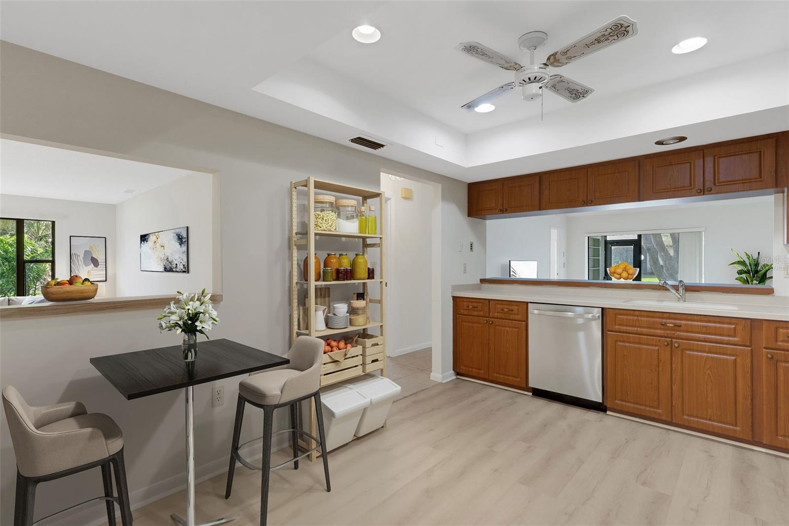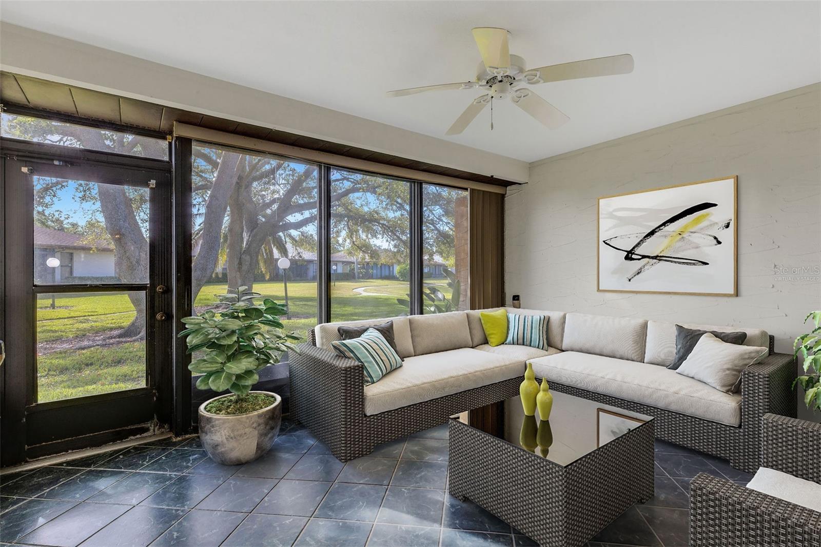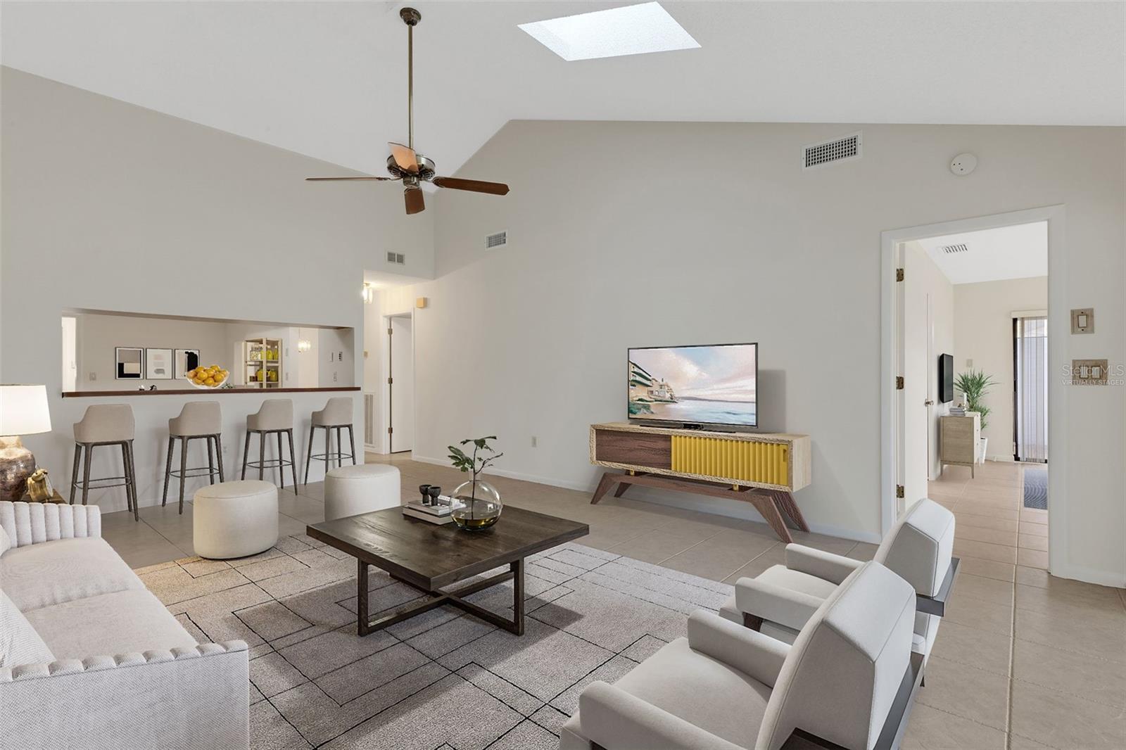 One or more photo(s) has been virtually staged. HUGE PRICE REDUCTION! SCHEDULE YOUR SHOWING BEFORE IT'S GONE! LIFE IS GREAT IN CENTER GATE ESTATES! Located in one of Sarasota's most desirable PET-FRIENDLY, 55+ COMMUNITIES, you're going to love living in Center Gate Estates. Located on a cul-de-sac, this 3 Bedroom 2 Bath 2-Car Garage Villa in its picturesque setting is a short distance to the COMMUNITY POOL. Recent improvements include NEW HVAC (2019), NEW ROOF (2023), NEW BATHROOM VANITIES (2025), NEW KITCHEN LVP FLOORING (2025) - The split floor plan with over 1800 square feet of living space is expansive with 3 nice size bedrooms, 2 full bathrooms, a large living room & dining room, and a family room with soaring cathedral ceilings & skylights to bring in natural light. The eat-in kitchen opens to the family room and has a tray ceiling. The enclosed screened lanai in back serves as a multi-seasonal room with sliding glass doors perfect for enjoying your morning coffee or just taking in the lush green views. Both the 2nd and the primary bedrooms have sliders that open to the private, screened-in courtyard and there's even a little tucked away spot that would be ideal for potting plants. The inside laundry room is equipped with cabinetry & shelving. You'll be pleasantly surprised at all the storage space this villa has to offer! Whether you're considering the Florida Lifestyle as a full-time resident or just having a sweet "winter retreat", this home is available now and awaits your personal touches and updates. Center Gate Estates Section III is made up of 42 two- and three-bedroom villas with lovely private courtyards. The amenities include a beautiful pool and screened ramada with bathroom facilities. The beautiful grounds and socially active community make this an excellent place to call home. When living in Center Gate Estates, you'll quickly discover how centrally located you are to all Sarasota has to offer - just minutes from the beautiful sandy beaches of Siesta Key, Golfing, Boating, Biking, Downtown Sarasota, Shopping in all directions, Fine Dining, Nightlife, Entertainment, Selby Botanical Gardens, Theaters and more!!! You couldn't ask for a better location!!! SELLER IS OFFERING TO SELECT & PAY FOR CLOSING AGENT & TITLE - BUYERS, YOU'LL WANT TO TAKE ADVANTAGE OF THIS INCENTIVE! DON'T MISS THIS OPPORTUNITY!!! SCHEDULE A SHOWING TODAY!!!