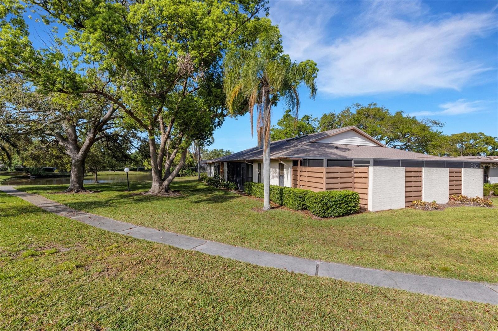 - Exterior: Courtyard, Private Mailbox, Rain Gutters, Sidewalk, Sliding Doors