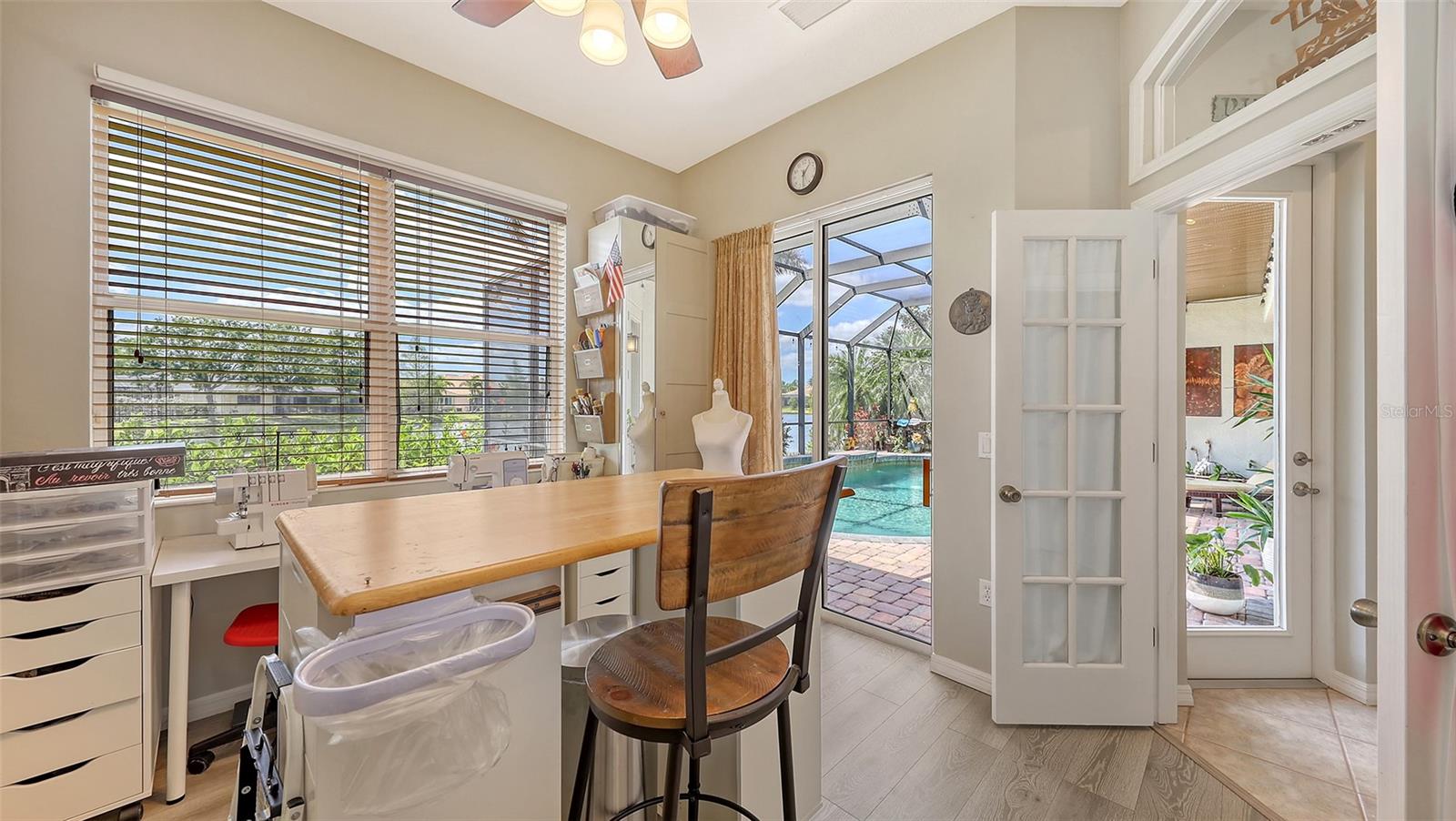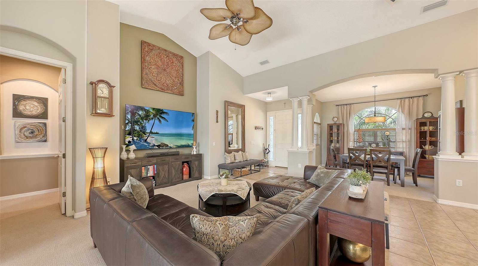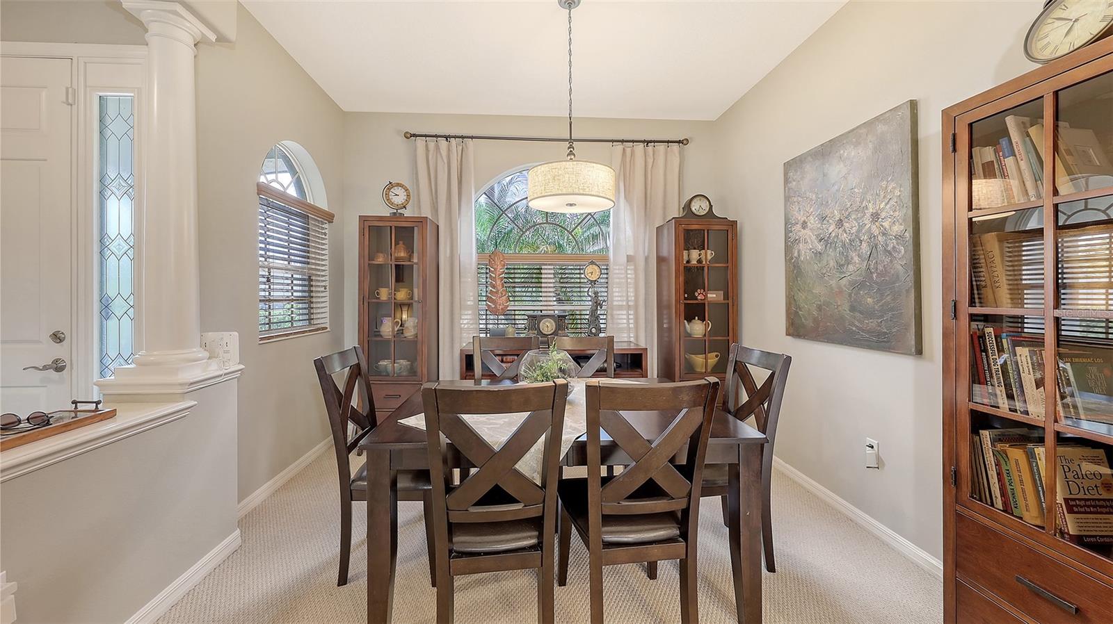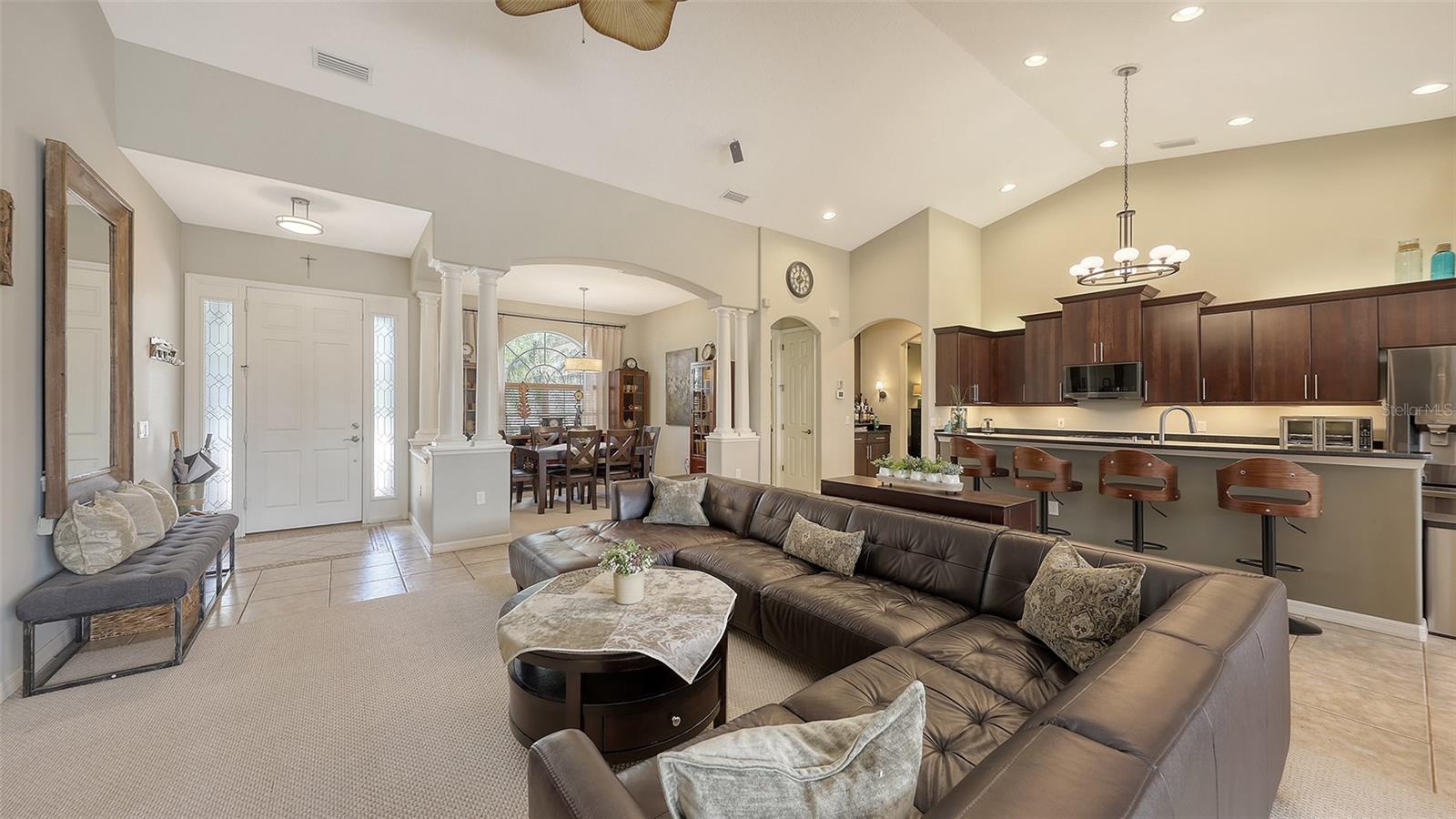 Don't miss the opportunity to own this beautifully maintained 4-bedroom, 3-bathroom home in the highly sought-after community of The Ravines at Greenbrook Village. Perfectly positioned on a serene lake, this home offers the ideal blend of elegance, comfort, and Florida lifestyle. Step inside to an inviting open-concept layout featuring soaring vaulted ceilings, an upgraded kitchen, and an elegant formal dining area--all designed to take full advantage of the stunning views of your private pool, spa, and tranquil lakefront setting.The kitchen is a chef's dream, with granite countertops, upgraded appliances, and abundant cabinetry. It's seamlessly connected to the spacious great room--making it perfect for entertaining or relaxing with family. The owner's suite is a peaceful retreat tucked away for privacy, complete with dual walk-in closets and a spa-like ensuite bathroom with dual vanities and a walk-in shower.Two additional guest bedrooms and a versatile den (ideal as a 4th bedroom, office, or playroom) provide space for everyone.Enjoy your morning coffee or evening wine on the expansive screened lanai, or take a dip in the sparkling pool and spa--your private outdoor oasis awaits!Less than a mile to McNeal Elementary and Nolan Middle School, and just minutes from UTC, Waterside Place, LWR Main Street, top-rated restaurants, medical facilities, and the world-famous beaches of Sarasota and Bradenton.With a New ROOF in 2022 and New A/C in 2021, this home truly has it all--and it won't last long. This furniture is offered for purchase.Schedule your private showing today!