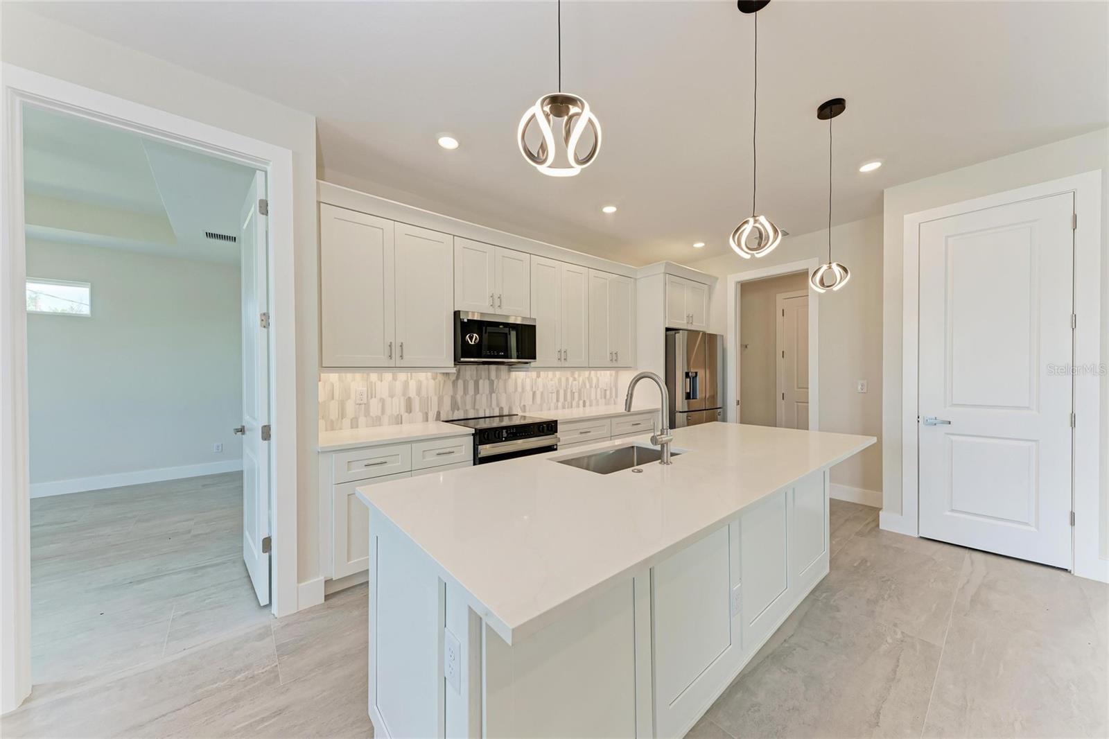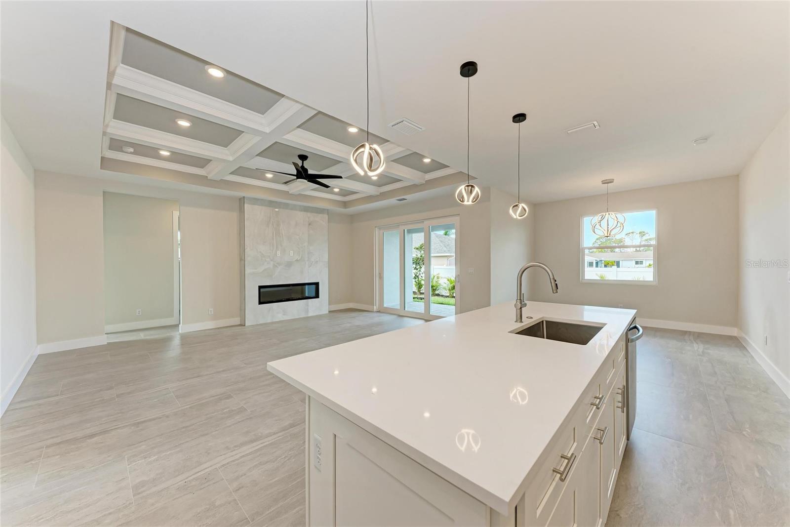 Welcome to this stunning 3-bedroom, 2-bathroom residence in Venice, FL, complete with a 3-car garage and a versatile office/den. Designed for both sophistication and functionality, this home blends comfort and leisure seamlessly. The open-concept living area boasts modern porcelain tiles, a striking coffered ceiling, and a cozy fireplace, with a large sliding door opening to a spacious lanai and backyard--perfect for indoor-outdoor living. The chef's kitchen dazzles with an accent backsplash, expansive quartz countertops, stainless steel appliances, and chic modern lighting, ideal for everyday meals or entertaining. Retreat to cozy bedrooms with tile flooring and generous closets, while the oversized bathrooms impress with large-format tiles, glass enclosures, and a luxurious rain shower in the master. Practicality shines with an oversized laundry room, full gutters, water filtration, and a well/septic system with irrigation. Built to last, this home includes a 10-year structural warranty and hurricane-impact windows for safety and lower insurance costs. Elevated above flood zones and set on a fenced lot with room for a pool, it's designed for outdoor enjoyment, enhanced by elegant front and back pavers. Don't miss your chance--schedule a private viewing today to experience the best of contemporary Florida living!