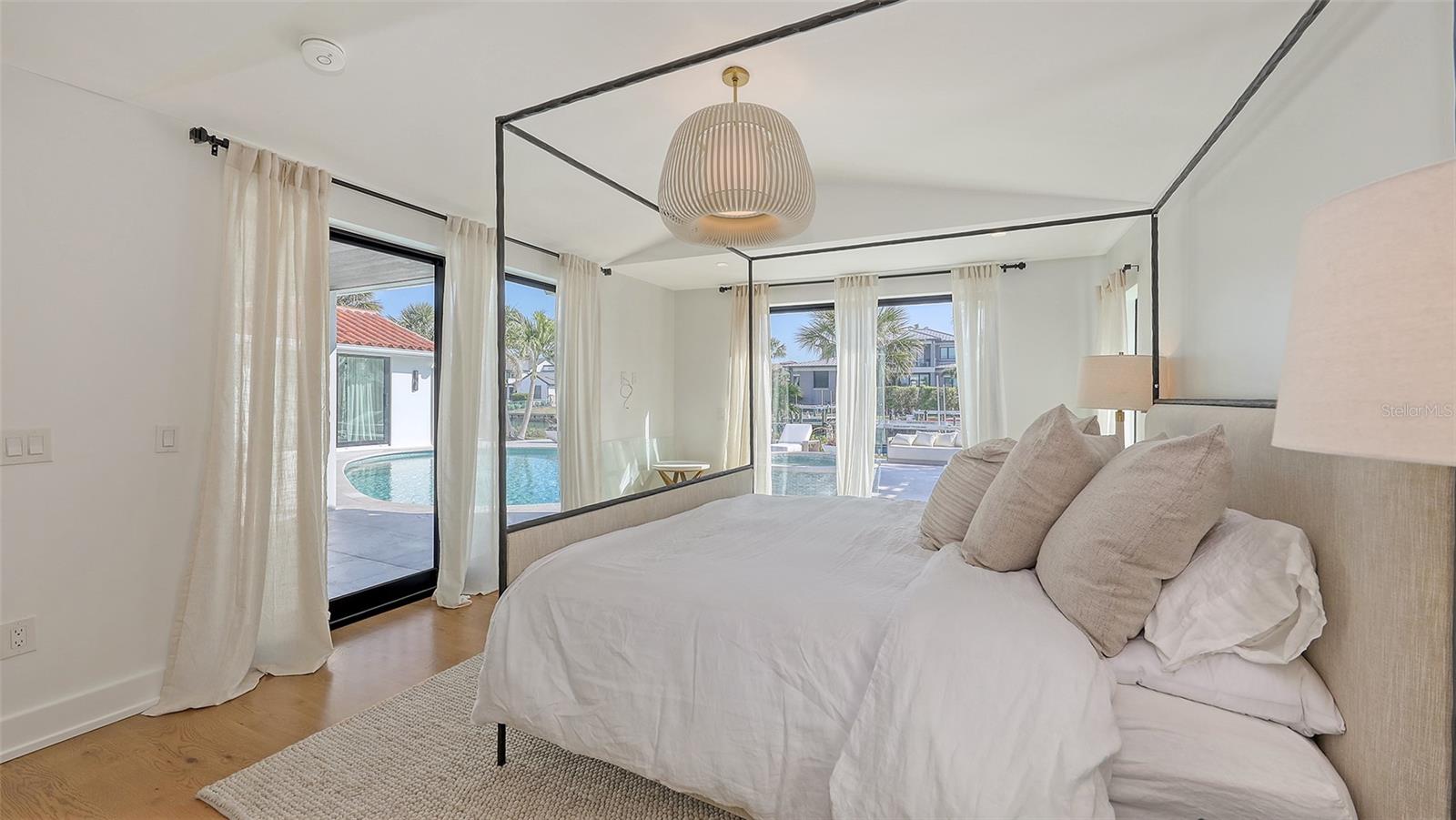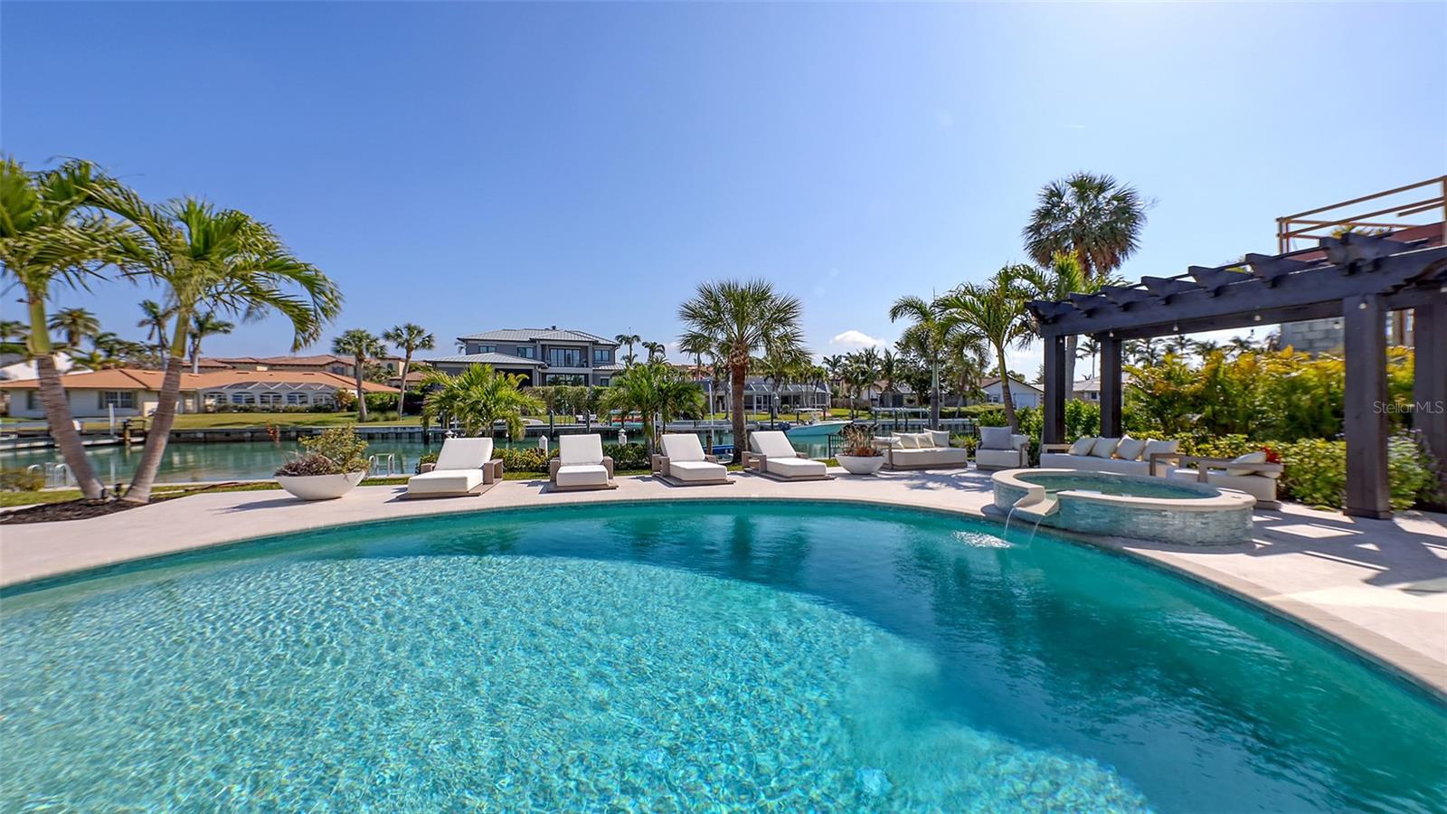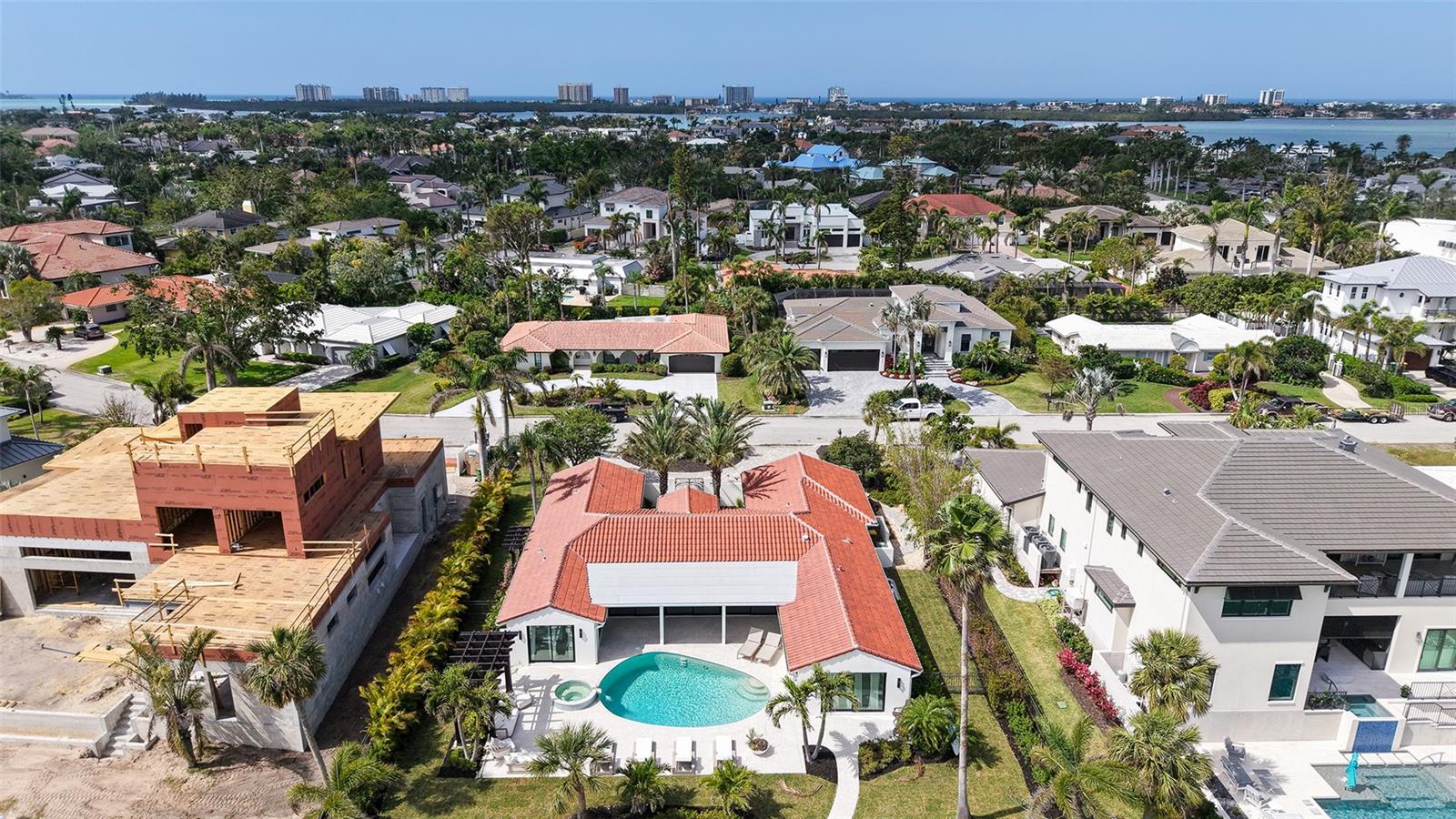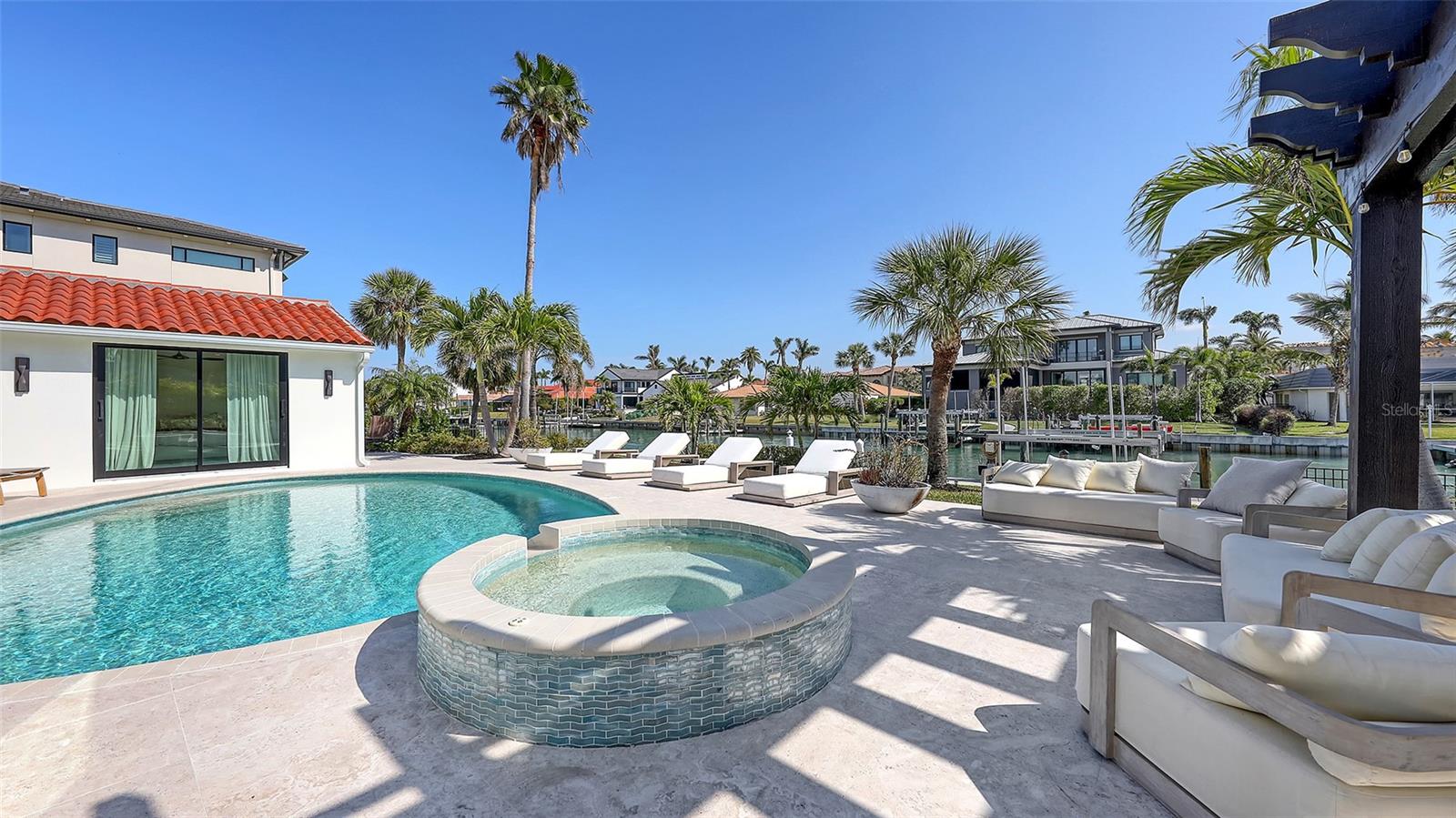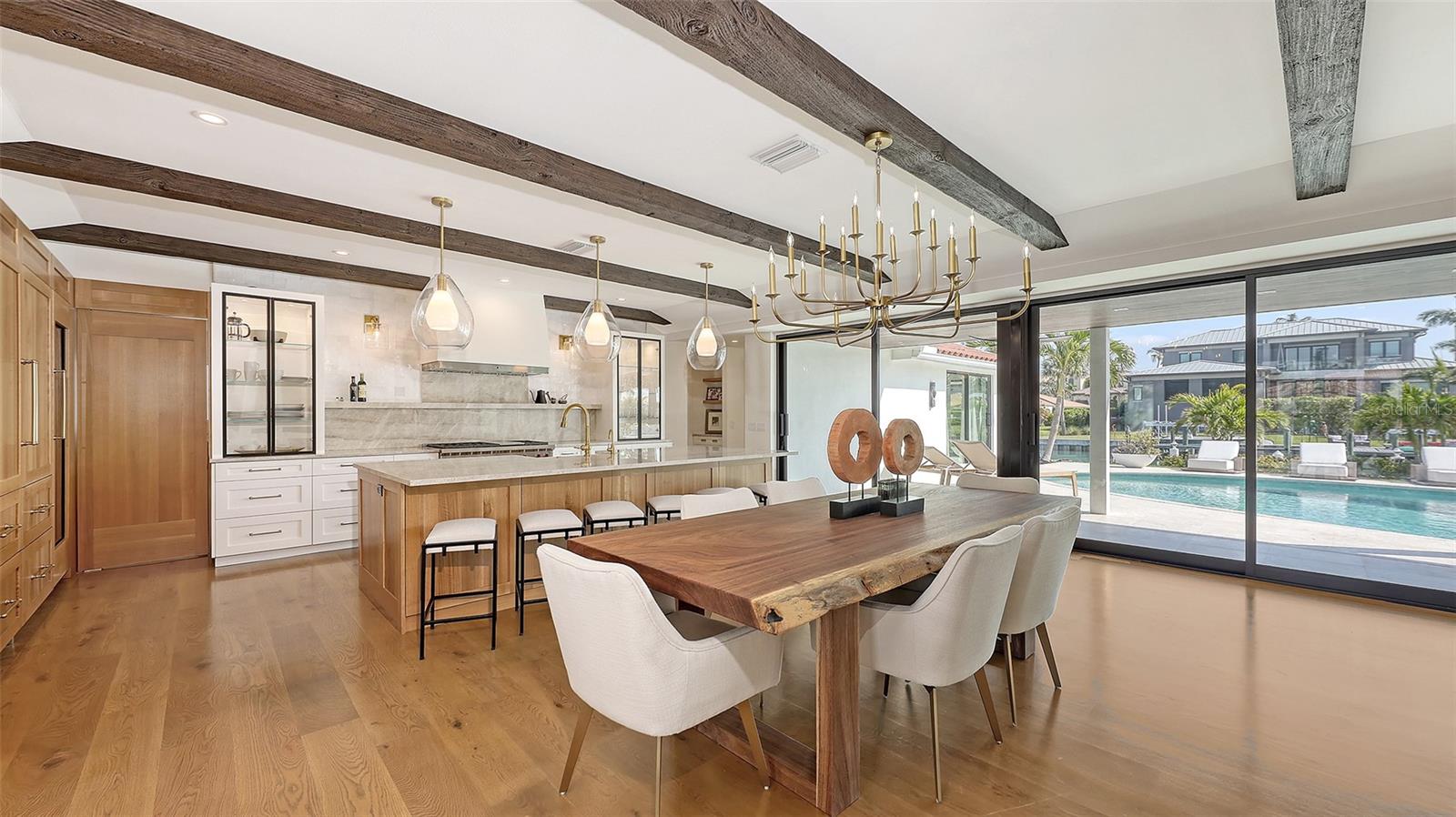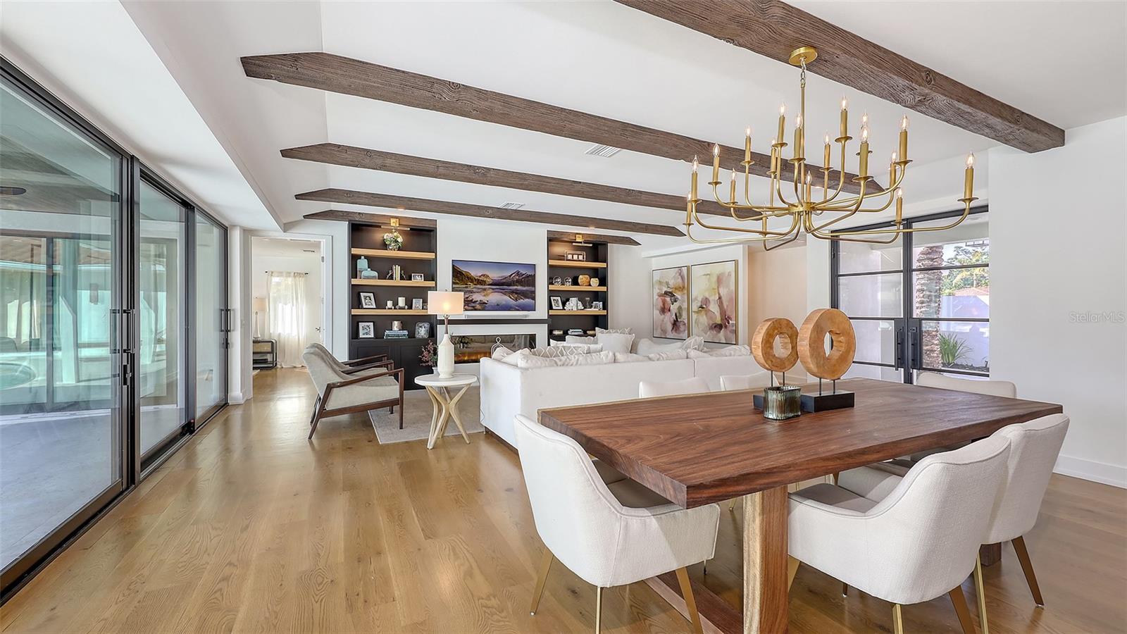 Tropical Florida living is epitomized by glamorous finishes, superior comfort and exceptional quality throughout this stunningly renovated residence. Once inside, an updated focal wall in the great room features custom white oak shelves and an electric fireplace creating a dramatic first impression. Fresh paint, custom wood beams, all new imported Mirage wood floors, and stunning new lighting enhance this flowing floor plan, where natural light cascades over spacious rooms designed for gorgeous entertaining and everyday moments. A defining focal point, the gourmet kitchen features white oak accents, updated quartzite countertops, a stunning Wolf range, Wolf double ovens and a Sub Zero wine fridge. A custom door assembled to match the cabinetry opens from the kitchen into a spacious pantry and laundry room. Perfectly detailed, the primary bedroom is a haven of serenity with a newly-tiled designer bathroom and easy access to the lanai for sipping your morning latte. The resort-worthy pool area will transport you to a paradise of relaxation, with ample new space for sun lounging. Completing this amazing property is a new tile roof, new ES impact rated sliding glass doors, a 2-car garage with updated door, opener and Epoxy flooring, new landscaping, an updated seawall, and a well water system upgraded with sprinklers. This home is truly like new, and presents a lifestyle without compare just moments from downtown Sarasota and St. Armands.