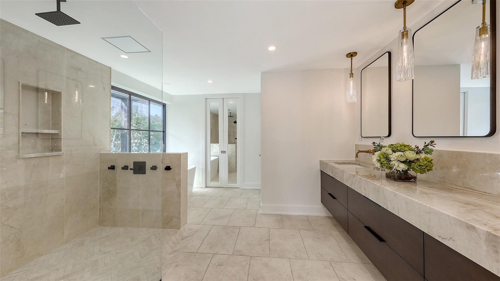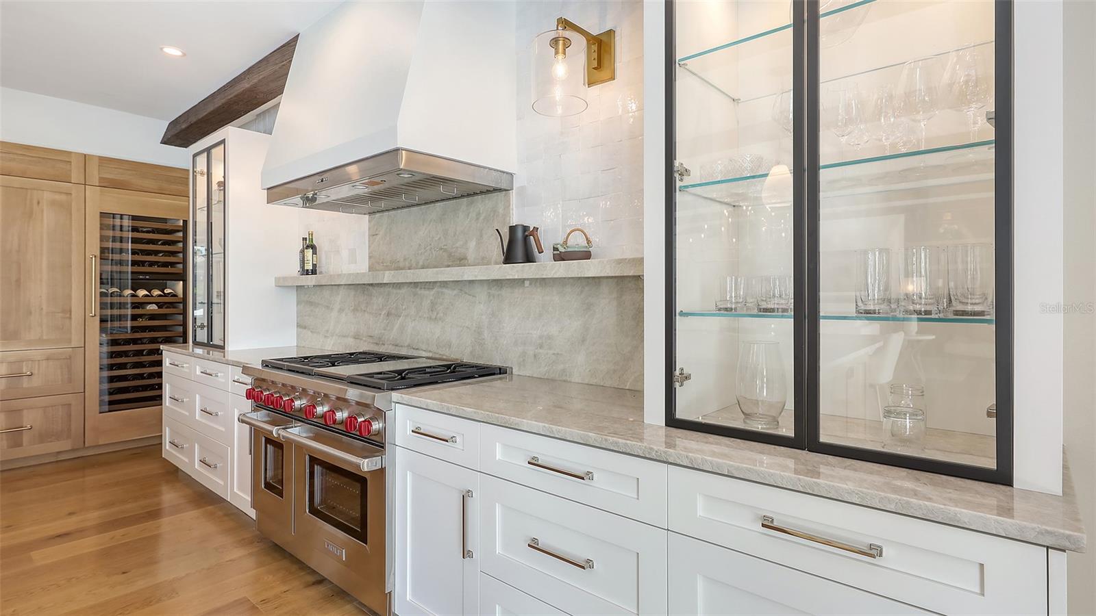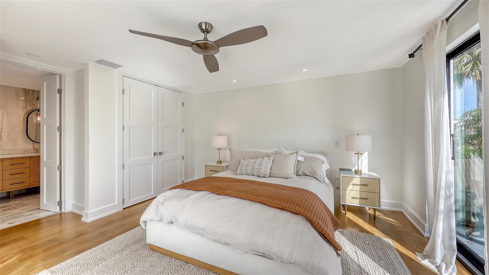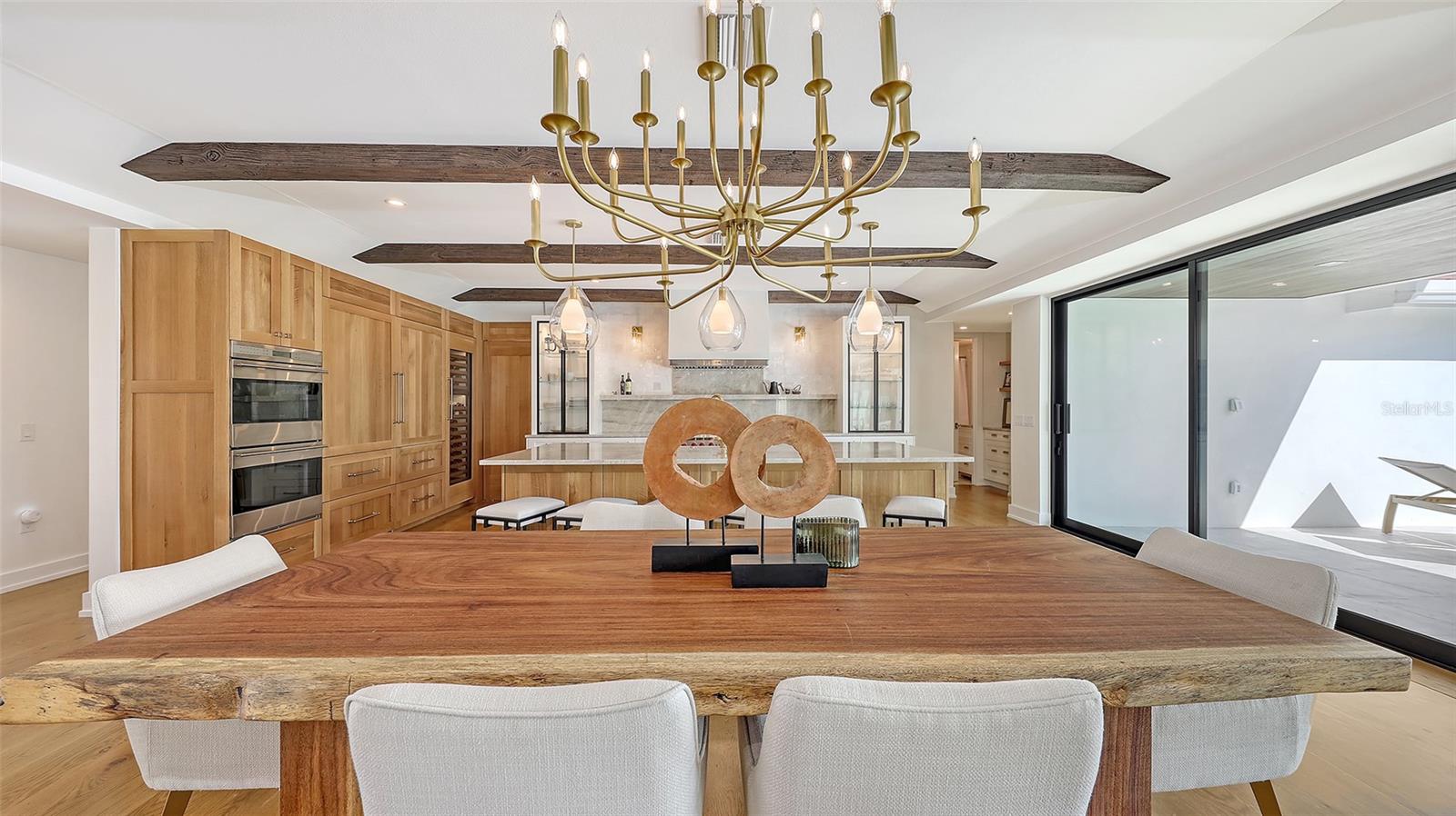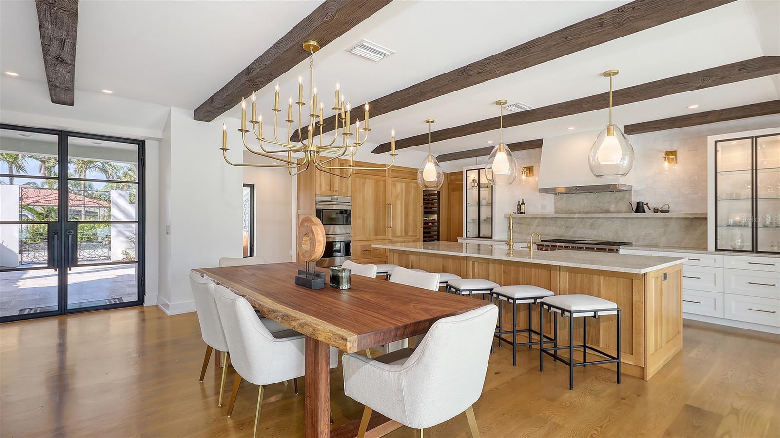 Tropical Florida living is epitomized by glamorous finishes, superior comfort and exceptional quality throughout this stunningly renovated residence. Once inside, an updated focal wall in the great room features custom white oak shelves and an electric fireplace creating a dramatic first impression. Fresh paint, custom wood beams, all new imported Mirage wood floors, and stunning new lighting enhance this flowing floor plan, where natural light cascades over spacious rooms designed for gorgeous entertaining and everyday moments. A defining focal point, the gourmet kitchen features white oak accents, updated quartzite countertops, a stunning Wolf range, Wolf double ovens and a Sub Zero wine fridge. A custom door assembled to match the cabinetry opens from the kitchen into a spacious pantry and laundry room. Perfectly detailed, the primary bedroom is a haven of serenity with a newly-tiled designer bathroom and easy access to the lanai for sipping your morning latte. The resort-worthy pool area will transport you to a paradise of relaxation, with ample new space for sun lounging. Completing this amazing property is a new tile roof, new ES impact rated sliding glass doors, a 2-car garage with updated door, opener and Epoxy flooring, new landscaping, an updated seawall, and a well water system upgraded with sprinklers. This home is truly like new, and presents a lifestyle without compare just moments from downtown Sarasota and St. Armands.