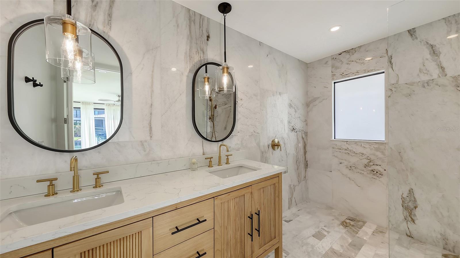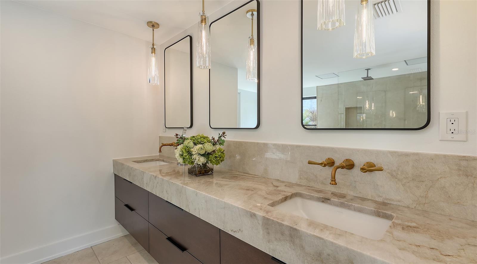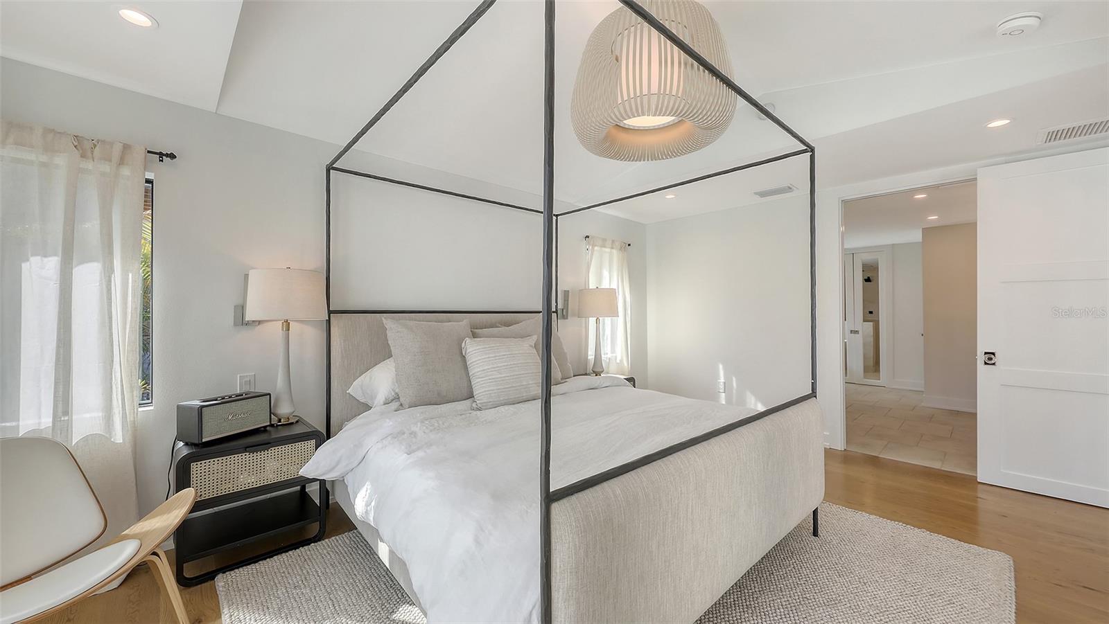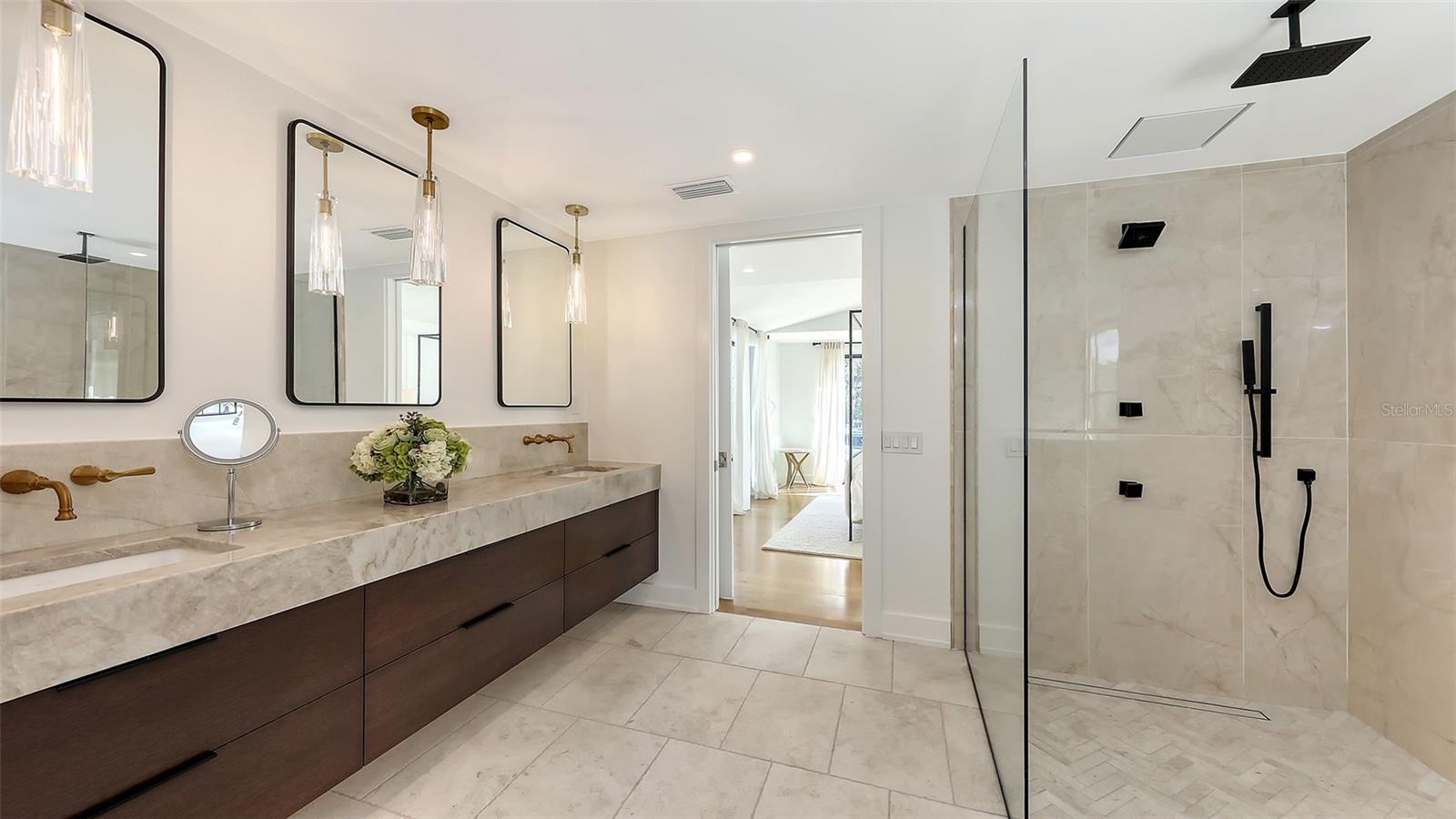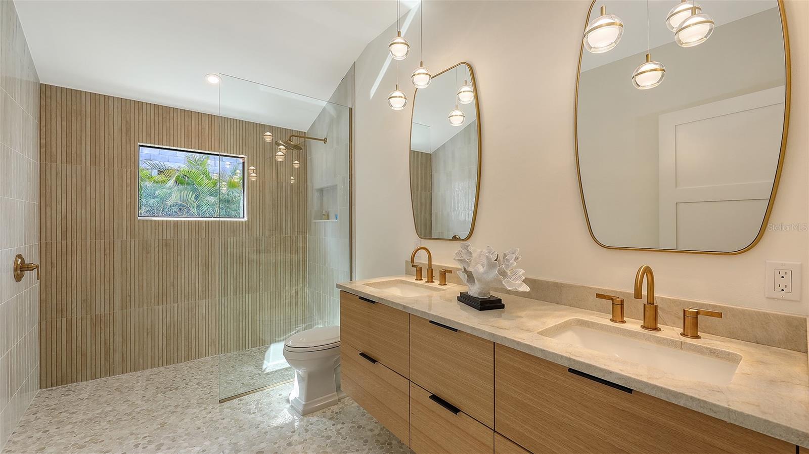 Tropical Florida living is epitomized by glamorous finishes, superior comfort and exceptional quality throughout this stunningly renovated residence. Once inside, an updated focal wall in the great room features custom white oak shelves and an electric fireplace creating a dramatic first impression. Fresh paint, custom wood beams, all new imported Mirage wood floors, and stunning new lighting enhance this flowing floor plan, where natural light cascades over spacious rooms designed for gorgeous entertaining and everyday moments. A defining focal point, the gourmet kitchen features white oak accents, updated quartzite countertops, a stunning Wolf range, Wolf double ovens and a Sub Zero wine fridge. A custom door assembled to match the cabinetry opens from the kitchen into a spacious pantry and laundry room. Perfectly detailed, the primary bedroom is a haven of serenity with a newly-tiled designer bathroom and easy access to the lanai for sipping your morning latte. The resort-worthy pool area will transport you to a paradise of relaxation, with ample new space for sun lounging. Completing this amazing property is a new tile roof, new ES impact rated sliding glass doors, a 2-car garage with updated door, opener and Epoxy flooring, new landscaping, an updated seawall, and a well water system upgraded with sprinklers. This home is truly like new, and presents a lifestyle without compare just moments from downtown Sarasota and St. Armands.