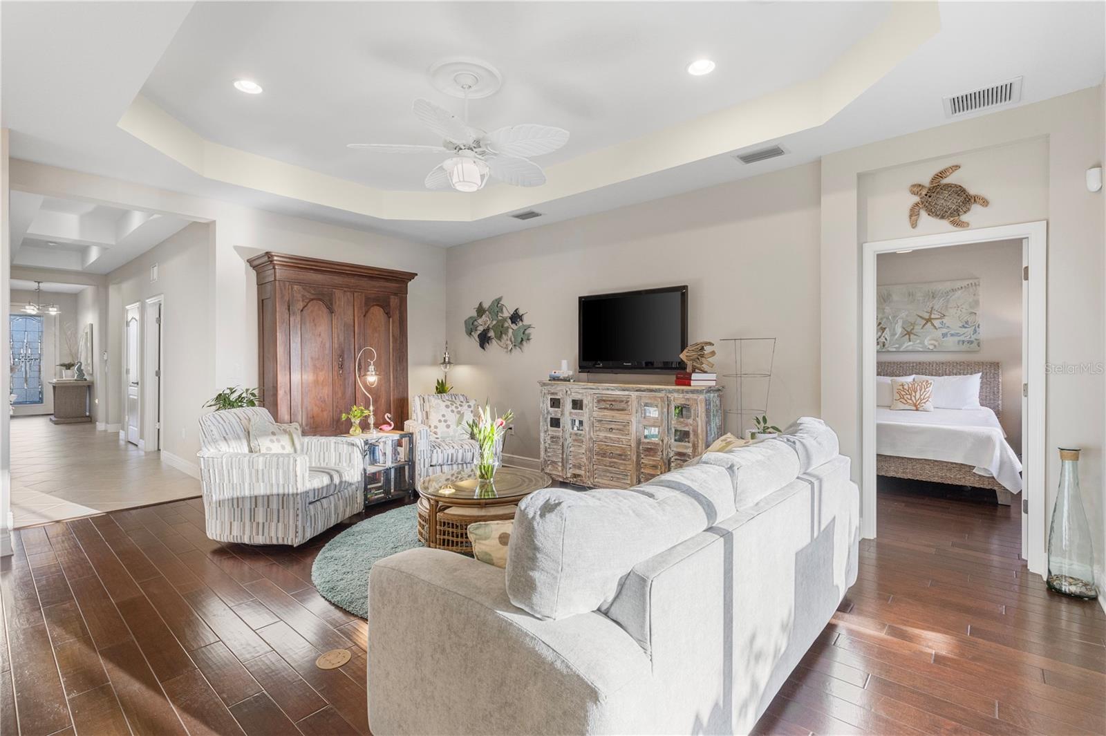 Tucked inside the gated community of Magnolia Point, this beautifully appointed home blends timeless style with everyday comfort--all in a location that makes life incredibly convenient. With three bedrooms, three full bathrooms, and a den, this home offers the perfect layout for both privacy and connection.From the moment you step inside, you'll notice the thoughtful upgrades: warm wood floors, elegant tray ceilings, and quartz countertops that add a touch of sophistication throughout. The kitchen and main living spaces flow effortlessly together, ideal for entertaining or just enjoying quiet time at home. Step out onto the screened lanai, where morning coffee or evening conversations are framed by the peaceful Florida outdoors.A NEW ROOF (March 2025) gives added peace of mind, and the overall layout is as practical as it is inviting--flexible for guests, remote work, or multigenerational living.Magnolia Point is known for its intimate feel, beautiful natural surroundings, and secure gated entry. With only around 74 homes, it offers a close-knit community vibe while being just minutes from UTC, I-75, downtown Sarasota, and Gulf Coast beaches. Whether you're headed out for dining, shopping, or a day in the sun, everything you need is close by.Low-maintenance living, elegant finishes, and a central Sarasota location--this home delivers the lifestyle you've been looking for.