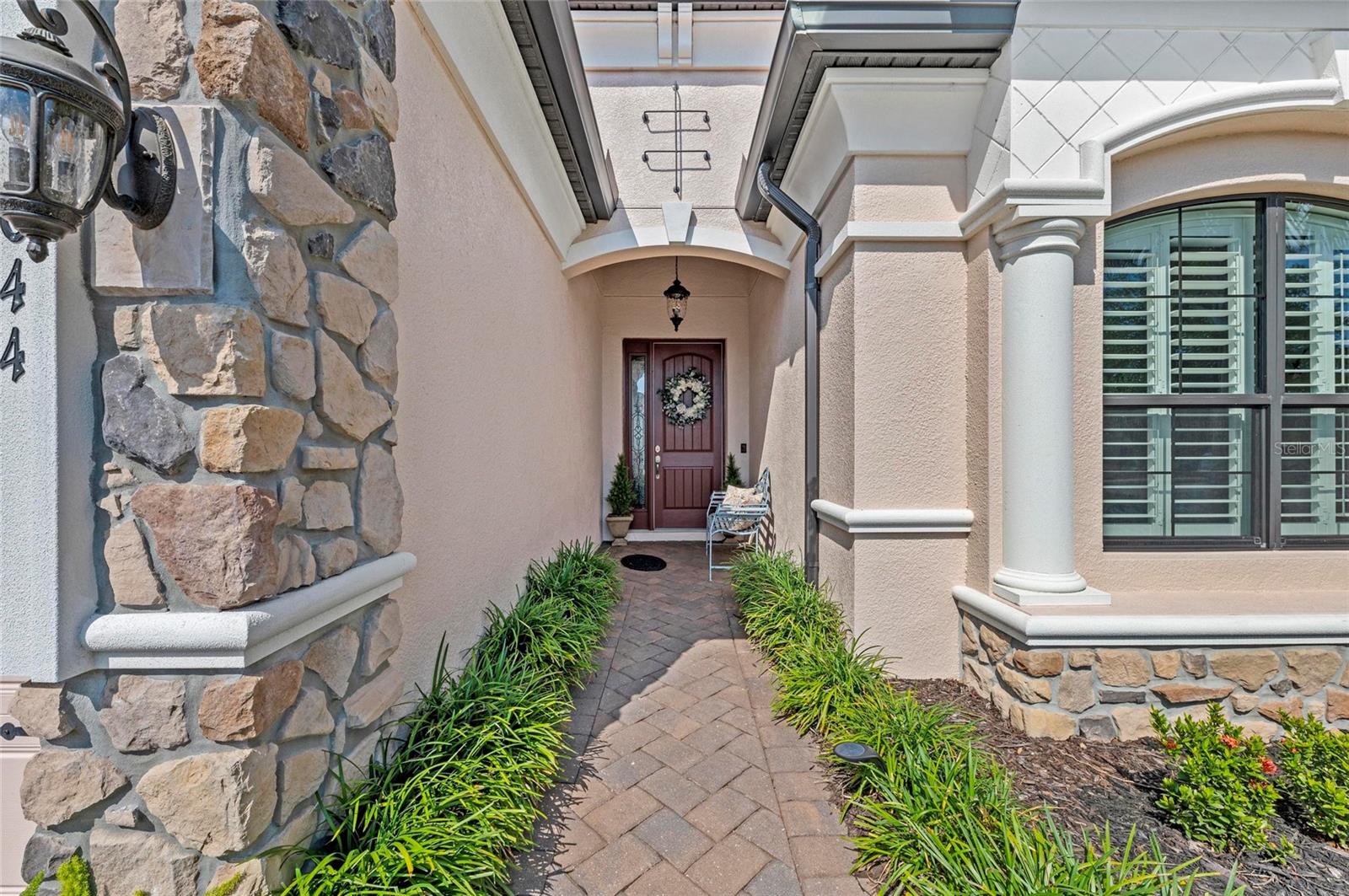 - Exterior: Hurricane Shutters, Lighting, Outdoor Kitchen, Rain Gutters, Sidewalk, Sliding Doors, Sprinkler Metered