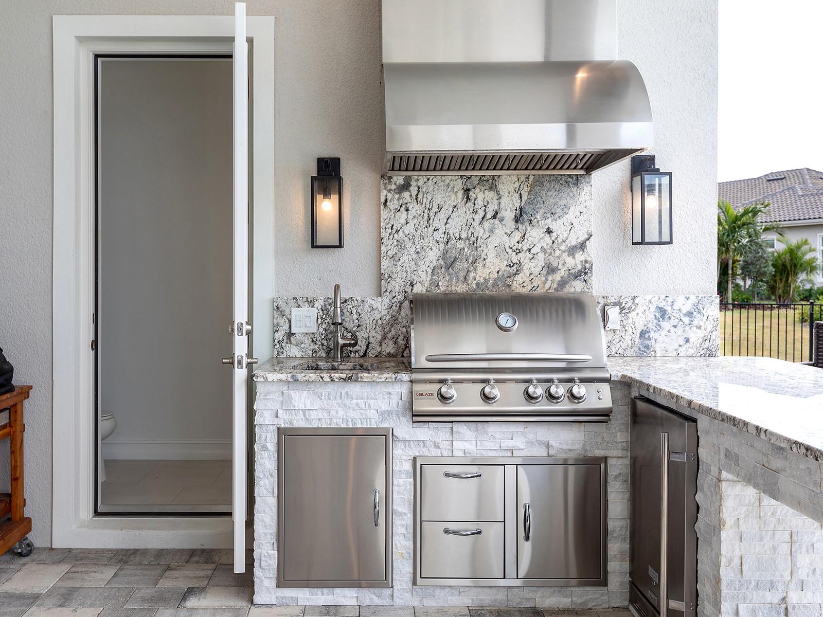 - Exterior: Lighting, Outdoor Grill, Outdoor Kitchen, Private Mailbox, Rain Gutters, Sidewalk, Sliding Doors, Sprinkler Metered