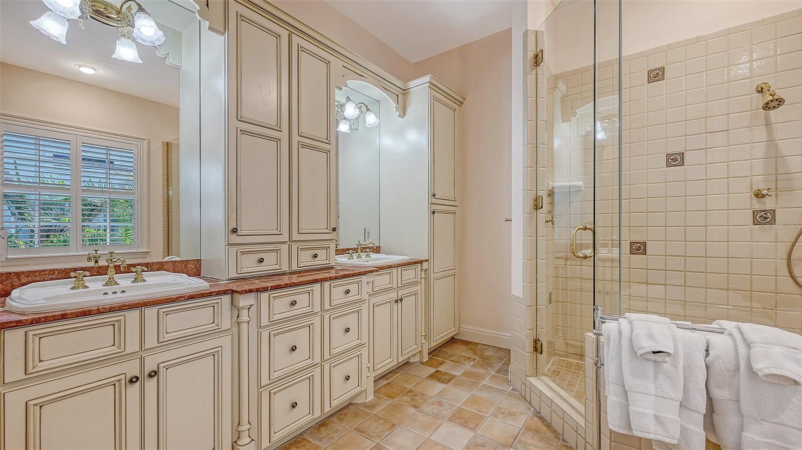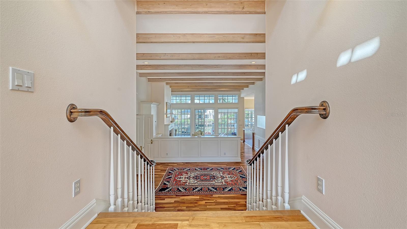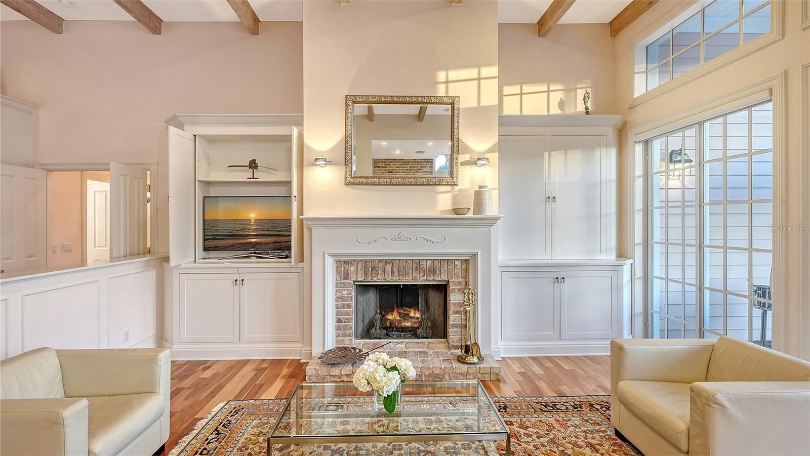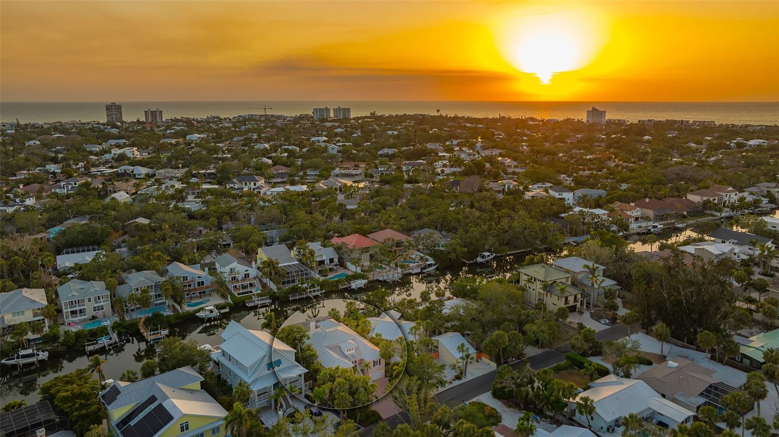Nestled in the quaint neighborhood along the Grand Canal on Siesta Key, this Key West style home offers the perfect blend of old-world charm and modern living. This exceptionally well-appointed custom-built home is being offered turnkey. The home's grand entrance welcomes you through a covered porch that leads to an oversized foyer. You are greeted with a spectacular open floor plan, where an abundance of natural light, beautiful canal views, soaring ceilings and gleaming hardwood floors create a bright and airy atmosphere throughout. You will then be charmed by the library with a sliding ladder, wood burning fireplace, walnut wood flooring, and cedar beams in the living room, all combined with modern style furniture. The open living area includes a kitchen, with cherry wood cabinets, and an Iron Elmira stove surrounded by Chicago brick, gorgeous dining room and a breakfast nook. Floor to ceiling windows and sliding doors seamlessly connect the grand living area to the outside covered deck, perfect for entertaining. The beautiful primary suite with canal views is on the main level and two generously sized bedrooms with their en-suite bathrooms are located on the upper level. A "basement room" between the two garages offers a huge amount of storage with built-in closets and cabinets. The house was not affected by any wind or flood damage thanks to its solid concrete block construction and 11ft elevation of living space. Some water intrusion on garage level, but did not cause any damage to building, or cabinets in storage area between the garages. The fenced-in backyard features a 35ft screened heated pool with a waterfall and Chicago brick deck. The 60ft IPE hardwood boat dock with a tropical over-the-water gazebo is equipped with a 10,000lb boat lift and offers plenty of space for all your outdoor toys. Boating just one mile through the deep-water canal brings you to the Intercoastal Waterway which leads right out into the open Gulf. In a market where quality counts more than ever, this home offers a rare blend of location, craftsmanship, and timeless appeal. Welcome home to Siesta Key - island living, breath-taking sunsets, boating and award-winning beaches, all at your doorstep.