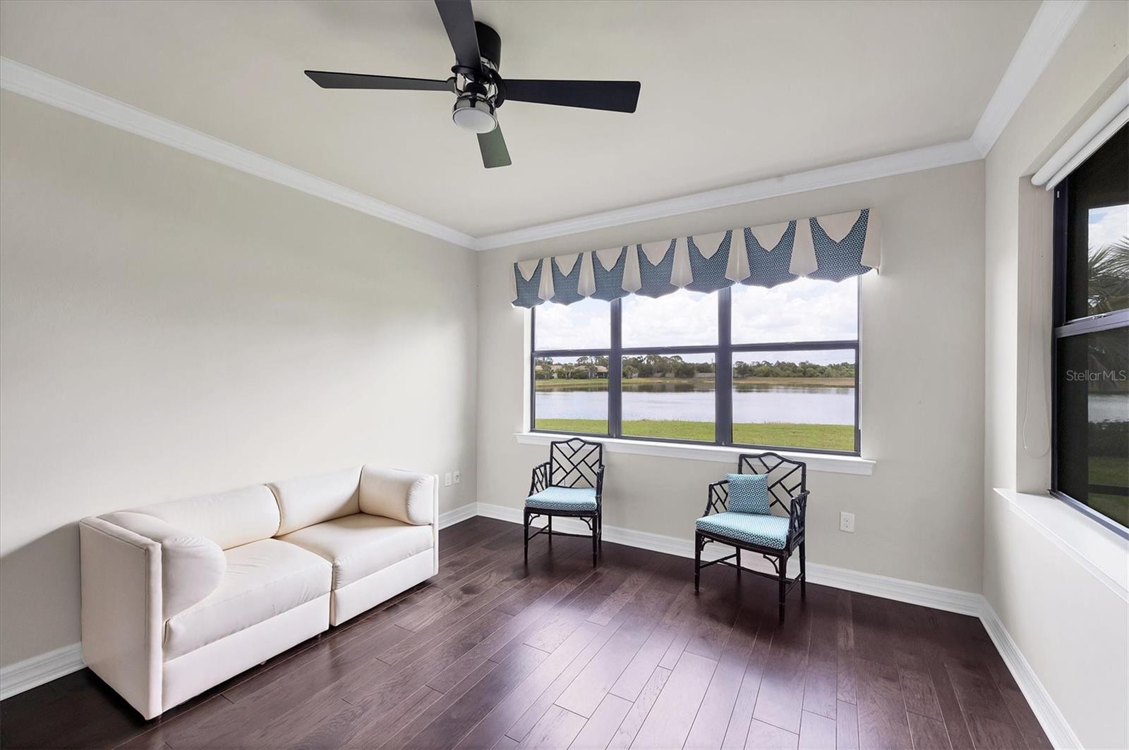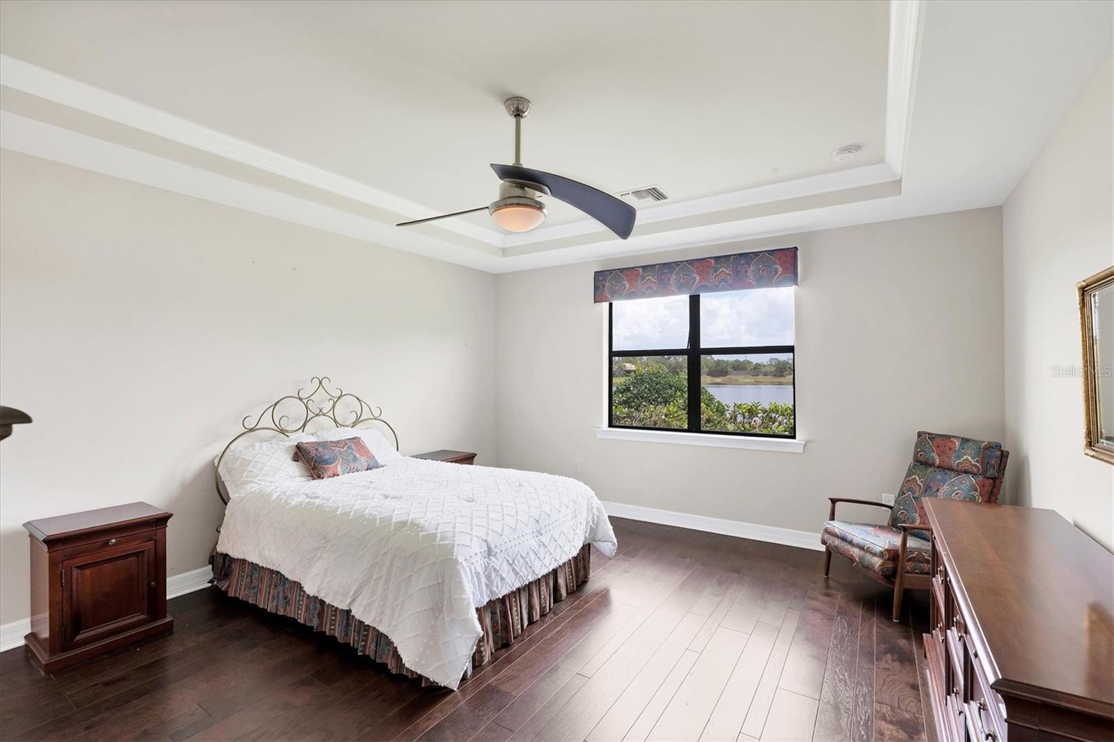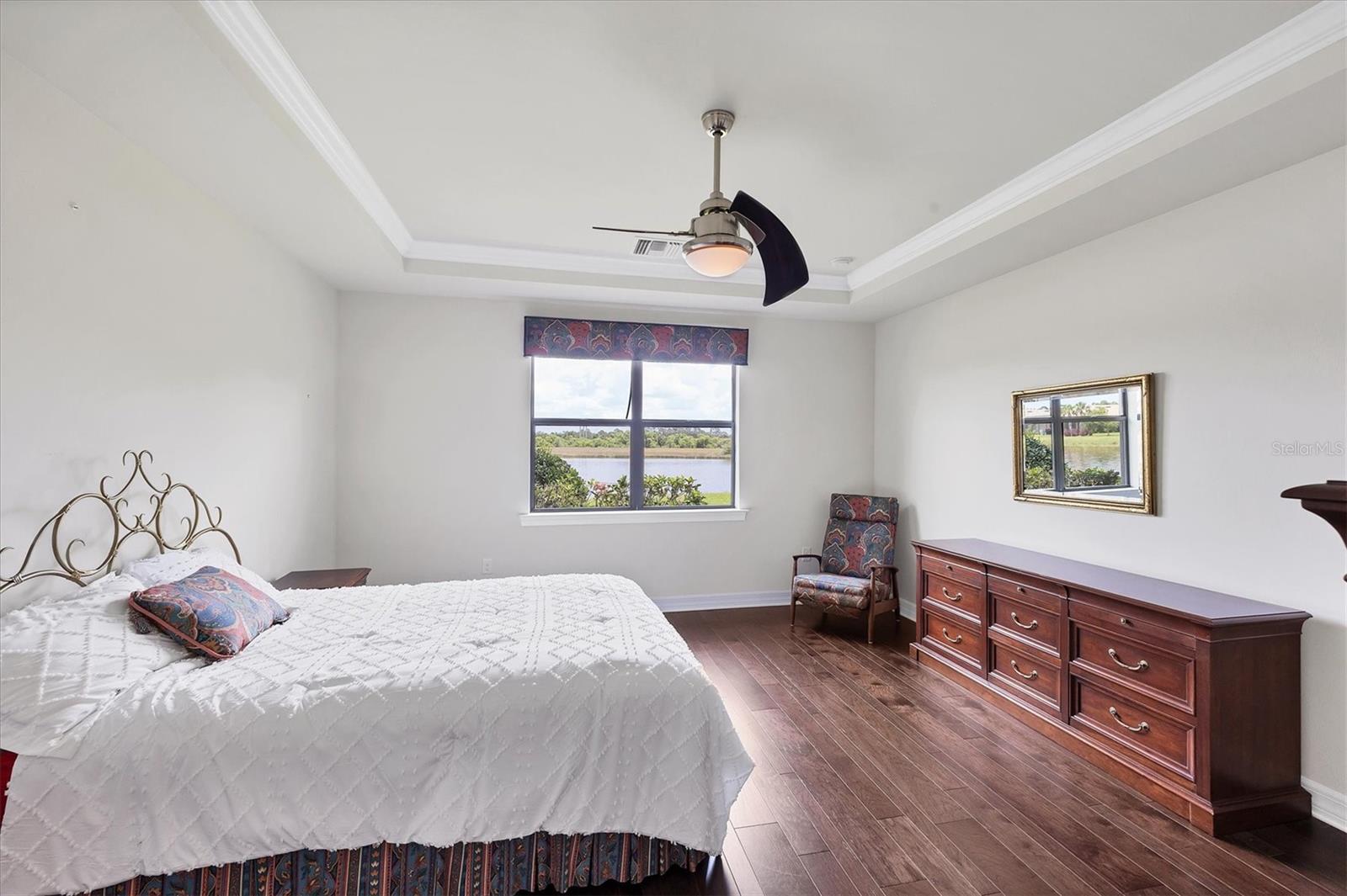 GREAT BUY ALERT!! 3 CAR GARAGE, FRESHLY PAINTED EXTERIOR, No Stairs to walk up, Lots of Upgrades and situated on a PRIME WATERFRONT LOT. Seller will pay for buyers HOA fees for a year. Welcome home to 5923 Snowy Egret Dr, located in the highly sought-after gated community of Sandhill Preserve on Palmer Ranch. This stunning maintenance-free home sits on one of the premier lakefront lots in the neighborhood, offering expansive water views and desirable Northeast exposure. With nearly 2,800 sq. ft. of well-designed living space, this split floor plan offers both privacy and functionality. Inside, you'll find an abundance of upgrades including elegant crown molding, neutral tile, and hardwood flooring throughout. The chef's kitchen is a showstopper, featuring custom shaker cabinetry, granite countertops, stainless steel appliances, and ample storage space.The spacious great room and dining area flow seamlessly for easy entertaining, while the screened and pavered lanai provides a peaceful retreat to enjoy the serene lake views. The three-car garage comes finished with durable epoxy flooring, perfect for additional storage or hobbies. Sandhill Preserve is known for its exceptional resort-style amenities. Residents enjoy a beautiful clubhouse, state-of-the-art fitness center, resort-style pool, tennis and pickleball courts, fire pit lounge, and a lively calendar of social events. The community is also guard-gated for added peace of mind and safety. This home is ideally situated just minutes from a brand-new Publix and Costco, the world-famous beaches of Siesta Key, and vibrant downtown Sarasota, this home truly offers the best of Florida living. The remaining furnishings in the home are included if the buyer wants them.