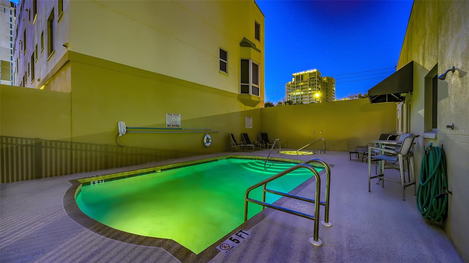 A private enclave of 29 luxury townhomes nestled in the heart of downtown Sarasota. Single family privacy in a 4-story townhouse w/private 2 car garage, individual elevator & terrace level studio w/floor to ceiling glass. New washer & dryer, Storage built-in under stairs. Signature rooftop terrace design allows every residence the penthouse amenity of its own private indoor/outdoor entertainment level. Summer kitchen with wet bar, small refrigerator & sundeck. Close to Starbucks for your morning cup of java and return home to your fourth-floor panoramic views of the city. Close to Bay front Park, downtown shopping, and restaurants. The Florida Studio Theater is right next door, and the Sarasota Opera House is just a block away. Marquee En Ville is a gated community with a heated community pool and fitness center. There is simply nothing else like this home in the downtown area.