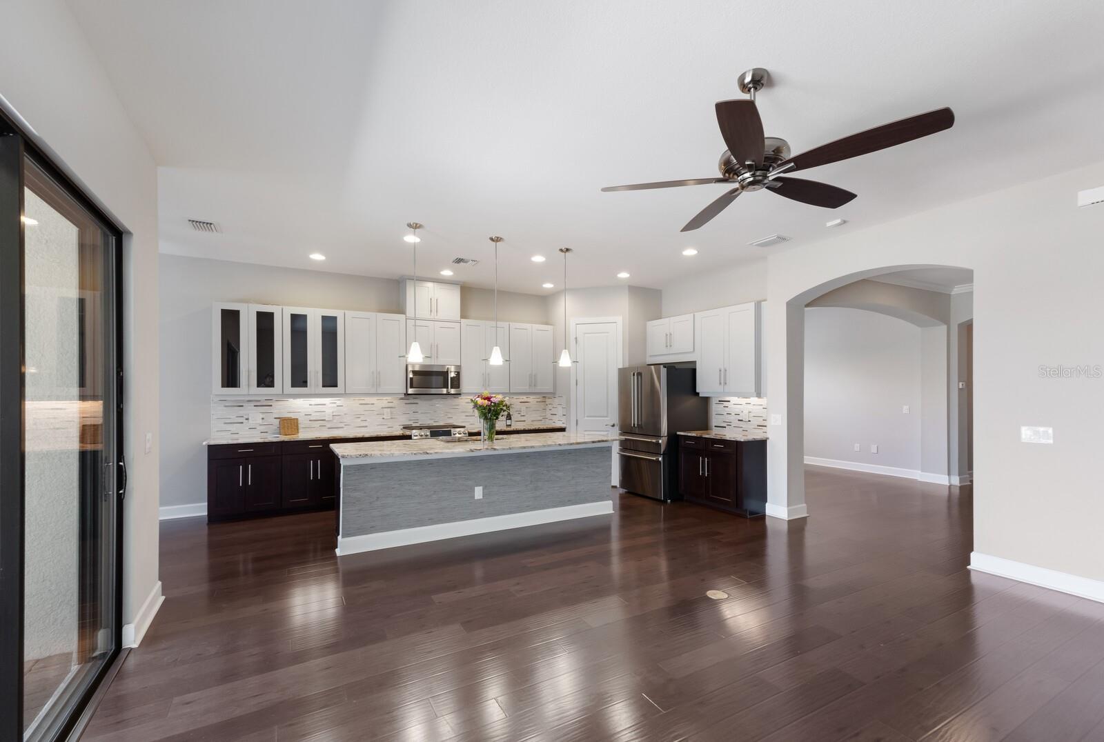 Under contract-accepting backup offers. ABSOLUTELY BEAUTIFUL CUSTOM LAKE FRONT HOME! GREAT LOCATION AND WATER VIEW! LOCATED ON A PRIVATE END LOT, AND AT THE END OF THE CUL DE SAC! THE YARD IS BEAUTIFULLY LANDSCAPED. YOU ARE GREETED BY AN ELEGANT LEADED GLASS ENTRY DOOR. HIGH CEILINGS AND WOOD PLANK LUXURY VINYL GRACE THE GREAT ROOM, DINING ROOM, KITCHEN AND DEN. THE LARGE CHEF'S KITCHEN IS FABULOUS, ACCENTED BY WOOD CABINETS WITH CROWN ACCENT, STONE COUNTER TOPS, CUSTOM BACKSPLASH, LOADS OF CABINETS, 1 1/2 YEAR OLD UPGRADED STAINLESS CAFE APPLIANCES, LARGE CENTER ISLAND WITH BREAKFAST BAR AND BREAKFAST ROOM! THIS IS A MODERN DESIGN WITH THE KITCHEN OPENING TO THE GREAT ROOM. THE PRIMARY BEDROOM IS VERY SPACIOUS AND HAS A BATHROOM WITH A WALK IN SHOWER AND A HUGE WALK IN CLOSET WITH BUILT-INS! THE SECOND BEDROOM IS EN SUITE AND ALSO HAS A WALK-IN CLOSET! THERE ARE 2 BEDROOMS, 2 1/2 BATHS DOWNSTAIRS PLUS A FULL BATH ON THE SECOND FLOOR.*****THIS IS IMPORTANT! THE SECOND FLOOR IS A HUGE FINISHED SPACE THAT COULD VERY EASILY BE TURNED INTO A THIRD EN SUITE BEDROOM PLUS AN ADDITIONAL ROOM AT A LOW COST, ADDING SUBSTANTIAL DOLLAR VALUE TO THIS HOME. THIS IS AN OUTSTANDING OPPORTUNITY!!! GATED ESPLANADE BY SIESTA KEY HAS AN OUTSTANDING LOCATION, CLOSE TO SHOPPING, RESTAURANTS, AND IS ONLY A FEW MINUTES FROM WORLD FAMOUS SIESTA BEACH. THE LOW HOA FEE INCLUDES YOUR LANDSCAPING CARE, WATERING YOUR LAWN, A BEAUTIFUL CLUB HOUSE WITH A RESORT POOL, SPA, FITNESS ROOM, LARGE EVENT ROOM, TENNIS AND PICKELBALL COURTS, FIRE PIT WITH SEATING, BOCCE BALL AND VOLLEYBALL COURTS, AND A LAKE VIEW PATIO! DOG LOVERS WILL ENJOY THE ENCLOSED DOG PARK FOR THEIR PETS. DON'T MISS THIS SPECIAL HOME AND VERY SPECIAL COMMUNITY!!! THE SELLER GOT A $2500 QUOTE FOR REPLACING THE UPSTAIRS CARPET AND WILL CREDIT THE BUYER $2500 AT CLOSING.