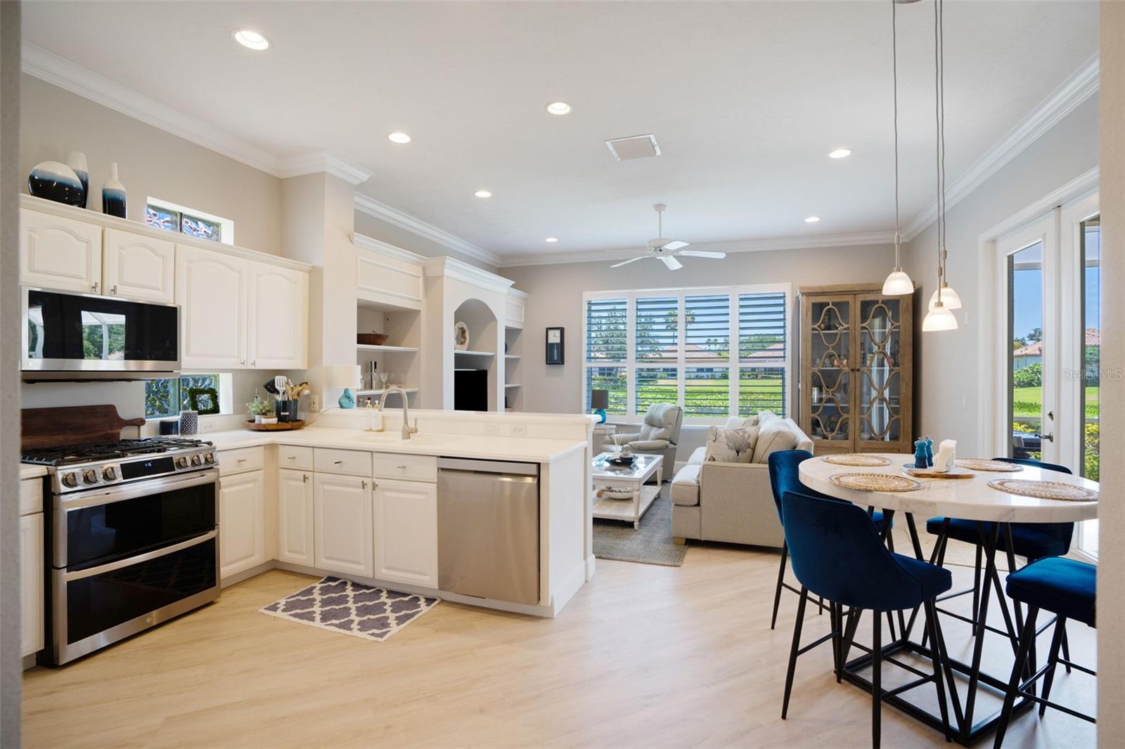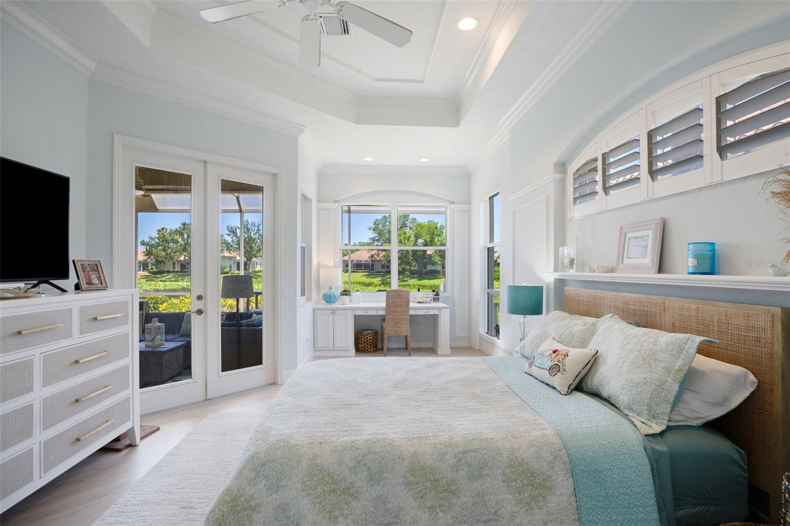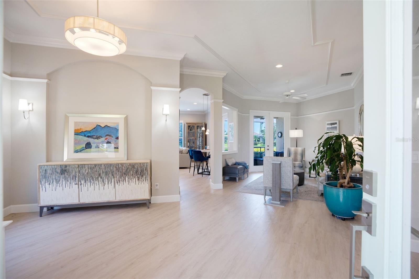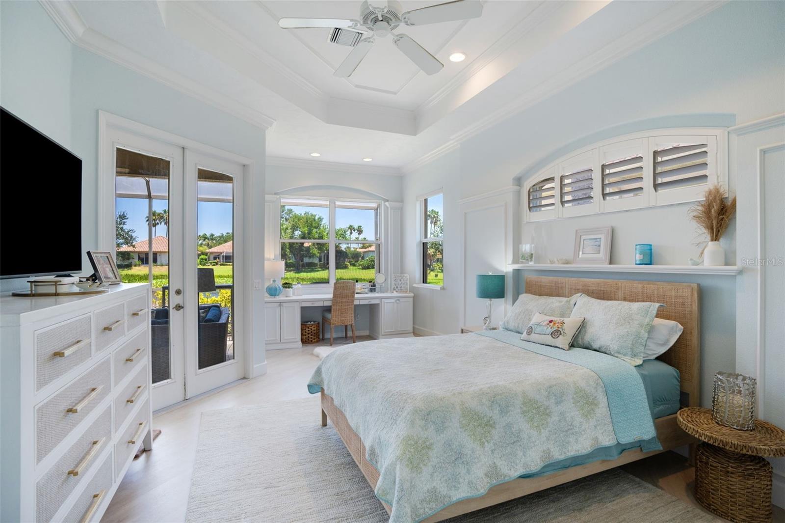 Welcome to the Palisades of Palmer Ranch - a charming, gated enclave of just 43 Mediterranean-inspired homes where peace of mind meets the Florida good life. Picture maintenance-free living with palm-lined streets, barrel tile roofs, and elegant paver driveways -- all wrapped in a warm Sarasota breeze. Step into this beautifully updated 3-bedroom, 2-bath Monet-inspired masterpiece by Gibraltar and fall in love with its airy layout and refined details: tray ceilings, crown molding, arched doorways, and stylish new finishes throughout. The fresh LVP flooring, custom plantation shutters, new baseboards, and a full suite of gleaming stainless steel LG appliances give this home a modern, elegant vibe. The spacious great room flows out to a tranquil lanai with peaceful water views from Crane Lake -- named after the nesting sand cranes and protected wildlife. A perfect spot for morning coffee or sunset cocktails. Enjoy thoughtful extras like 10' ceilings, built-in shelving, French doors, and a functional split floor plan for added privacy. The primary suite is a private retreat with a soaking tub, walk-in shower, 4 closets, a water view and double french doors that lead to the outdoor lanai. Two more bedrooms (or a den/office combo) plus a full laundry room and 2-car garage round out the home. The perks don't stop at your doorstep -- enjoy the lakeside community pool and pavilion; complete with a summer kitchen and a 1,500 sq ft covered area made for friendly gatherings and weekend barbecues. You're just minutes from the Legacy Trail, TPC Golf course, fabulous local dining and shopping, and of course -- the world-famous cool quartz sands of Siesta Key Beach. Whether you're an outdoor adventurer, beach lover, or golf enthusiast, this is Sarasota living at its best. Now offering a 1% PREFERRED LENDER BUYDOWN FOR QUALIFIED BUYERS