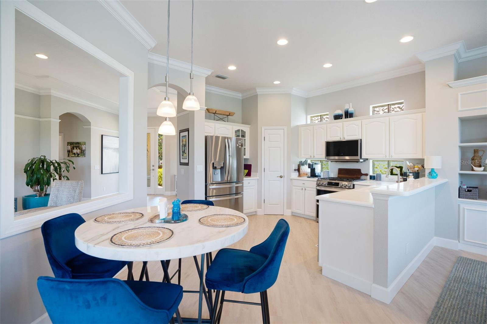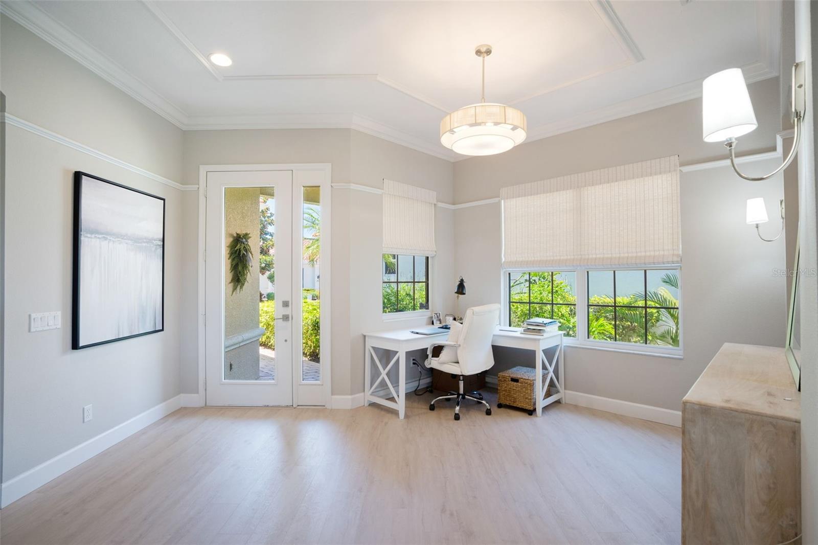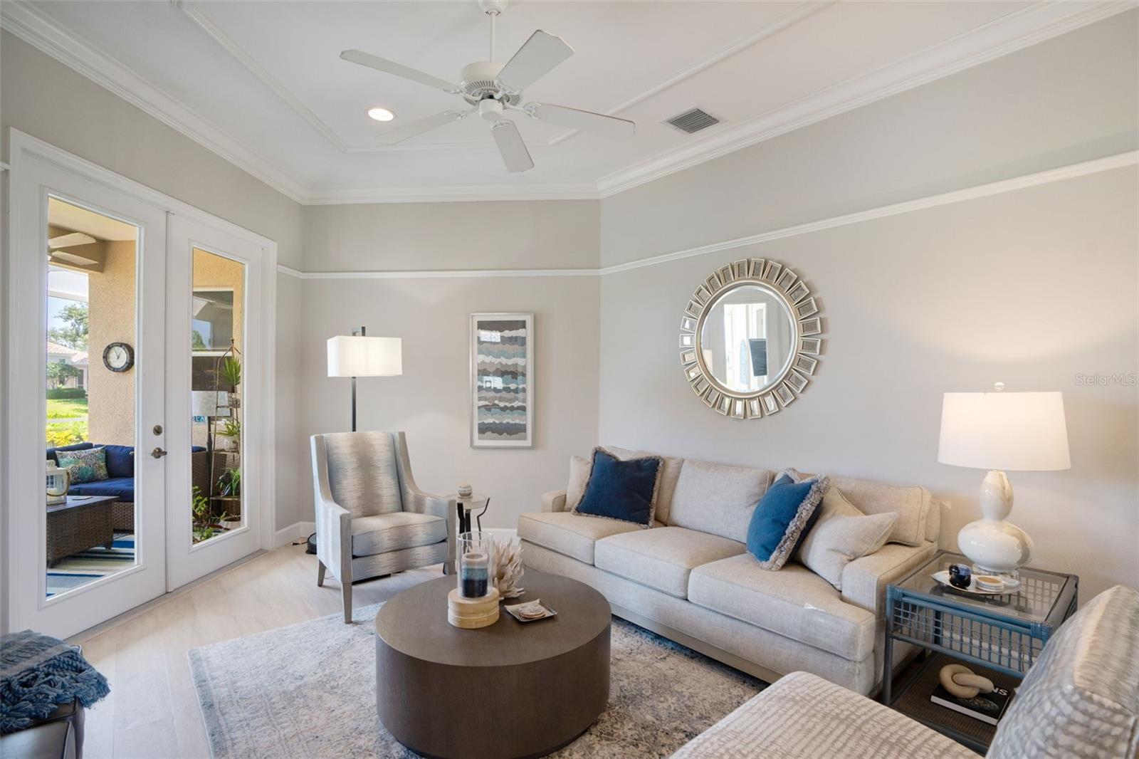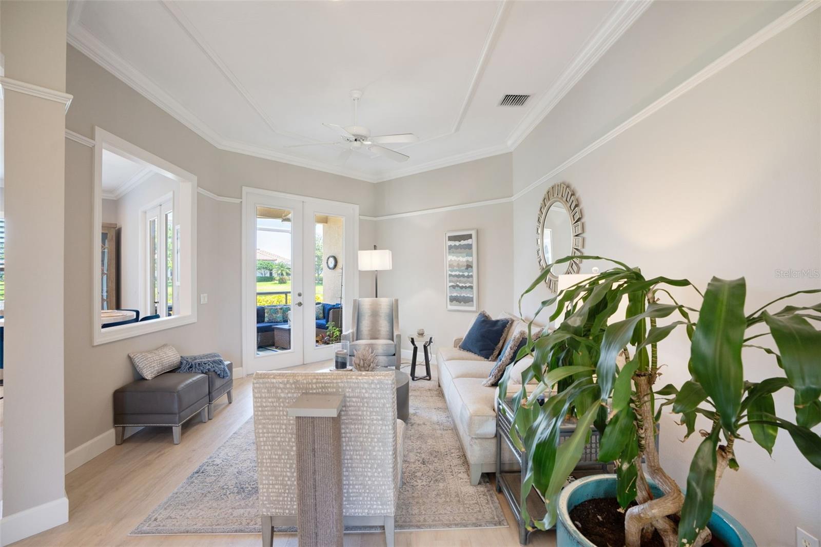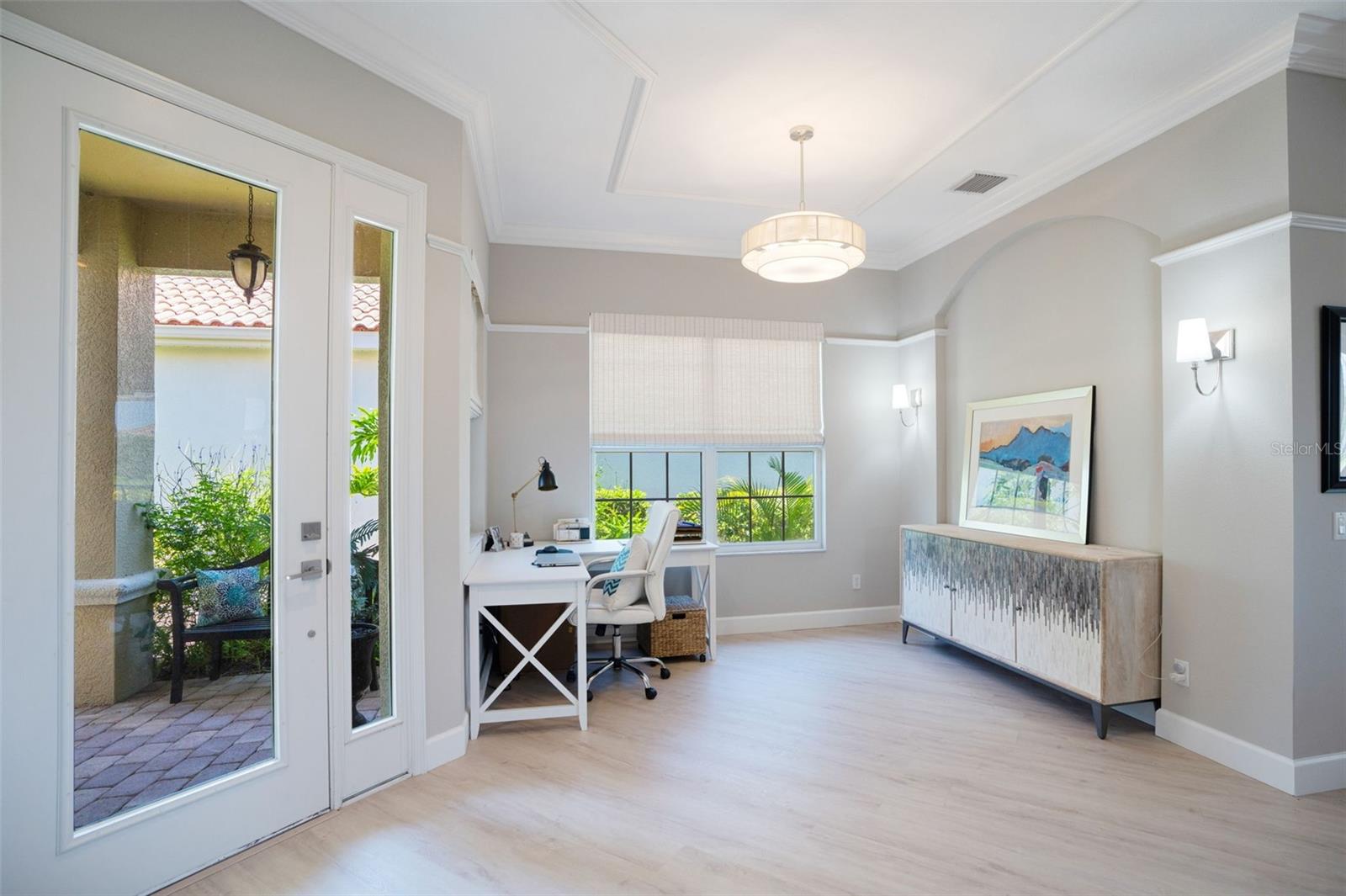 Welcome to the Palisades of Palmer Ranch - a charming, gated enclave of just 43 Mediterranean-inspired homes where peace of mind meets the Florida good life. Picture maintenance-free living with palm-lined streets, barrel tile roofs, and elegant paver driveways -- all wrapped in a warm Sarasota breeze. Step into this beautifully updated 3-bedroom, 2-bath Monet-inspired masterpiece by Gibraltar and fall in love with its airy layout and refined details: tray ceilings, crown molding, arched doorways, and stylish new finishes throughout. The fresh LVP flooring, custom plantation shutters, new baseboards, and a full suite of gleaming stainless steel LG appliances give this home a modern, elegant vibe. The spacious great room flows out to a tranquil lanai with peaceful water views from Crane Lake -- named after the nesting sand cranes and protected wildlife. A perfect spot for morning coffee or sunset cocktails. Enjoy thoughtful extras like 10' ceilings, built-in shelving, French doors, and a functional split floor plan for added privacy. The primary suite is a private retreat with a soaking tub, walk-in shower, 4 closets, a water view and double french doors that lead to the outdoor lanai. Two more bedrooms (or a den/office combo) plus a full laundry room and 2-car garage round out the home. The perks don't stop at your doorstep -- enjoy the lakeside community pool and pavilion; complete with a summer kitchen and a 1,500 sq ft covered area made for friendly gatherings and weekend barbecues. You're just minutes from the Legacy Trail, TPC Golf course, fabulous local dining and shopping, and of course -- the world-famous cool quartz sands of Siesta Key Beach. Whether you're an outdoor adventurer, beach lover, or golf enthusiast, this is Sarasota living at its best. Now offering a 1% PREFERRED LENDER BUYDOWN FOR QUALIFIED BUYERS