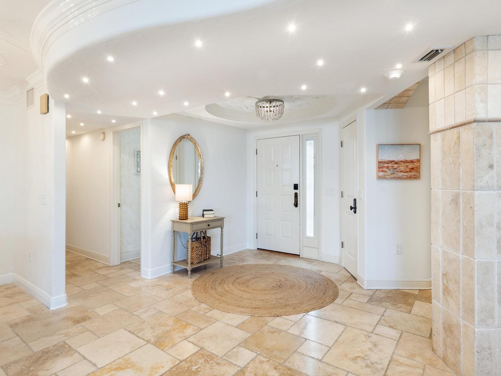 See this beautifully decorated three-bedroom home, at the top rated condominium, Casarina. Escape winter's gloom and embrace the sun-kissed shores of Siesta Key, America's number one beach. Go from your door onto the sugar white sands for sunset visits, invigorating swims, or lively tennis and pickleball matches. This rare three-bedroom condominium, ideal for year-round living or as a seasonal retreat, boasts a spacious open layout with a wet bar, ideal for entertaining or cozy dinners at home. Less than a mile from the south bridge, enjoy effortless access to vibrant restaurants and shops. Your dream lifestyle awaits, seize it now!