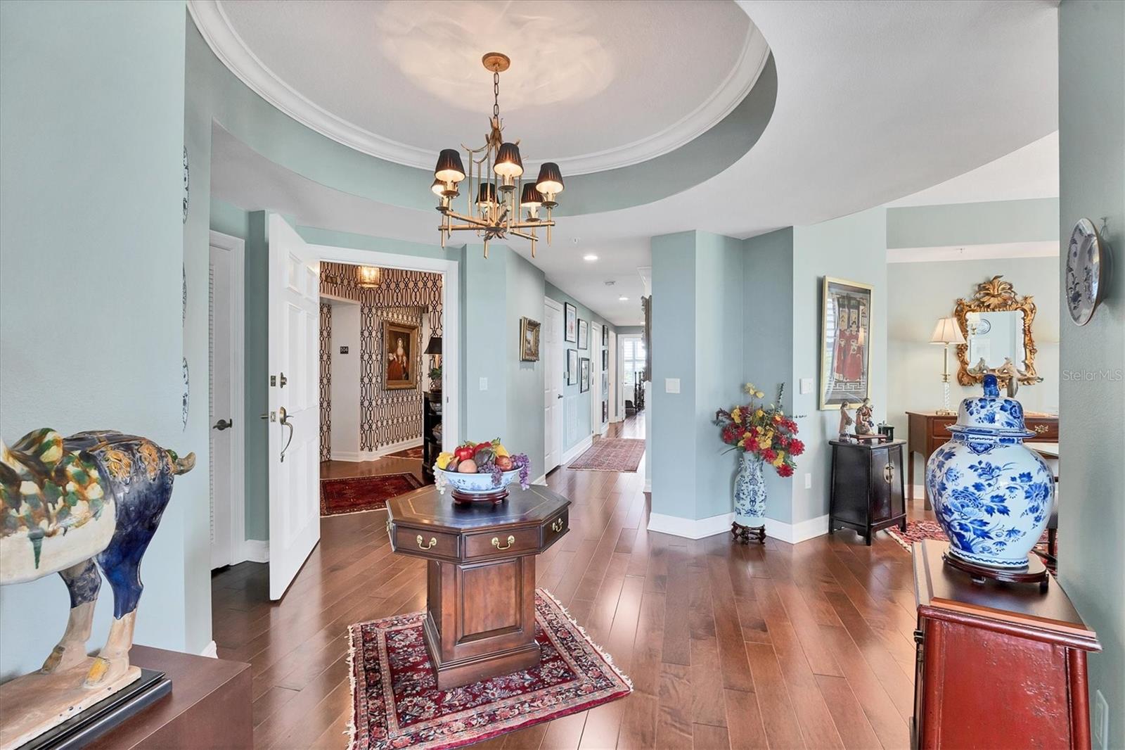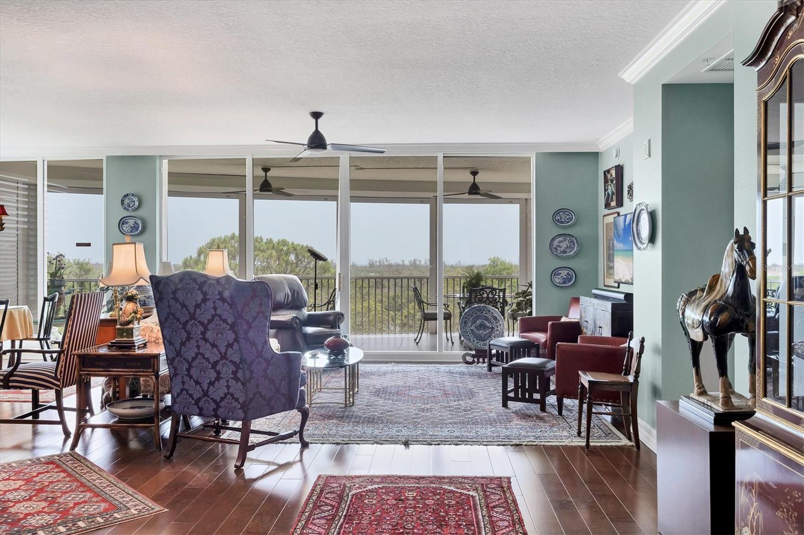 FULLY UPDATED WATER VIEWS PRIVATE 2-CAR GARAGE OFFICE/4TH BEDROOM OPTIONFrom the moment the private elevator opens into your foyer, this residence reveals itself as a home crafted with intention, artistry, and a deep appreciation for its natural surroundings. Sunlight fills the space as water and preserve views stretch out beyond the generous lanai--an ever-changing backdrop that greets you at dawn and soothes you at day's end.Inside, every detail has been thoughtfully reimagined. The custom kitchen is both beautiful and functional, featuring rich soapstone countertops, Bosch appliances, roll-out cabinet drawers, Everpure water filtration, and an elegant tray ceiling with crown molding. The Great Room flows effortlessly into the dining areas and lanai, creating an inviting environment for everyday living or effortless entertaining.The serene Primary Suite is a retreat of its own, offering captivating views, a custom-designed walk-in closet, and a spa-inspired bathroom adorned with Italian tile, dual vanities, and stunning stone countertops. With an expansive split floor plan offering 3 Bedrooms, 3 Full Baths, and an Office/Study that can easily serve as a 4th Bedroom, the home provides both privacy and flexibility. Custom built-ins, upgraded closets, and a well-appointed laundry room enhance everyday comfort. A rare luxury in the Meridian--your own private 2-car garage--completes the offering.The Meridian at The Oaks Preserve is surrounded by lush landscaping and winding pathways, with amenities including a pool, spa, fitness center, and outdoor grill. Membership to The Oaks Club is mandatory, granting access to two championship golf courses, 12 Har-Tru tennis courts, croquet, wellness and fitness facilities, a resort-style pool, multiple dining venues, social events, and a distinguished clubhouse.Ideally located less than 1 mile from Historic Spanish Point, approx. 6 miles from Siesta Key's world-famous beaches, 10 miles from downtown Sarasota, and within 3 miles of the renowned Pine View School, this residence offers not just a home--but an elevated lifestyle.Be sure to view the Video Virtual Tour for interior, exterior, and aerial perspectives. This is a home that must be experienced in person--schedule your private showing today.