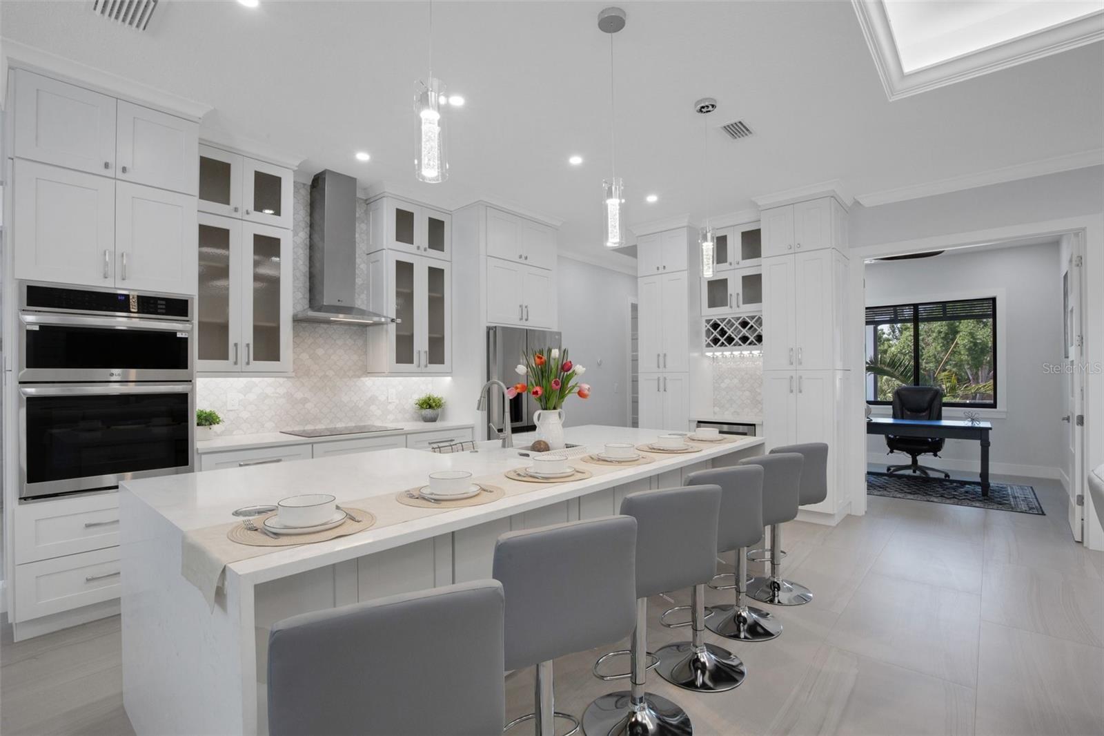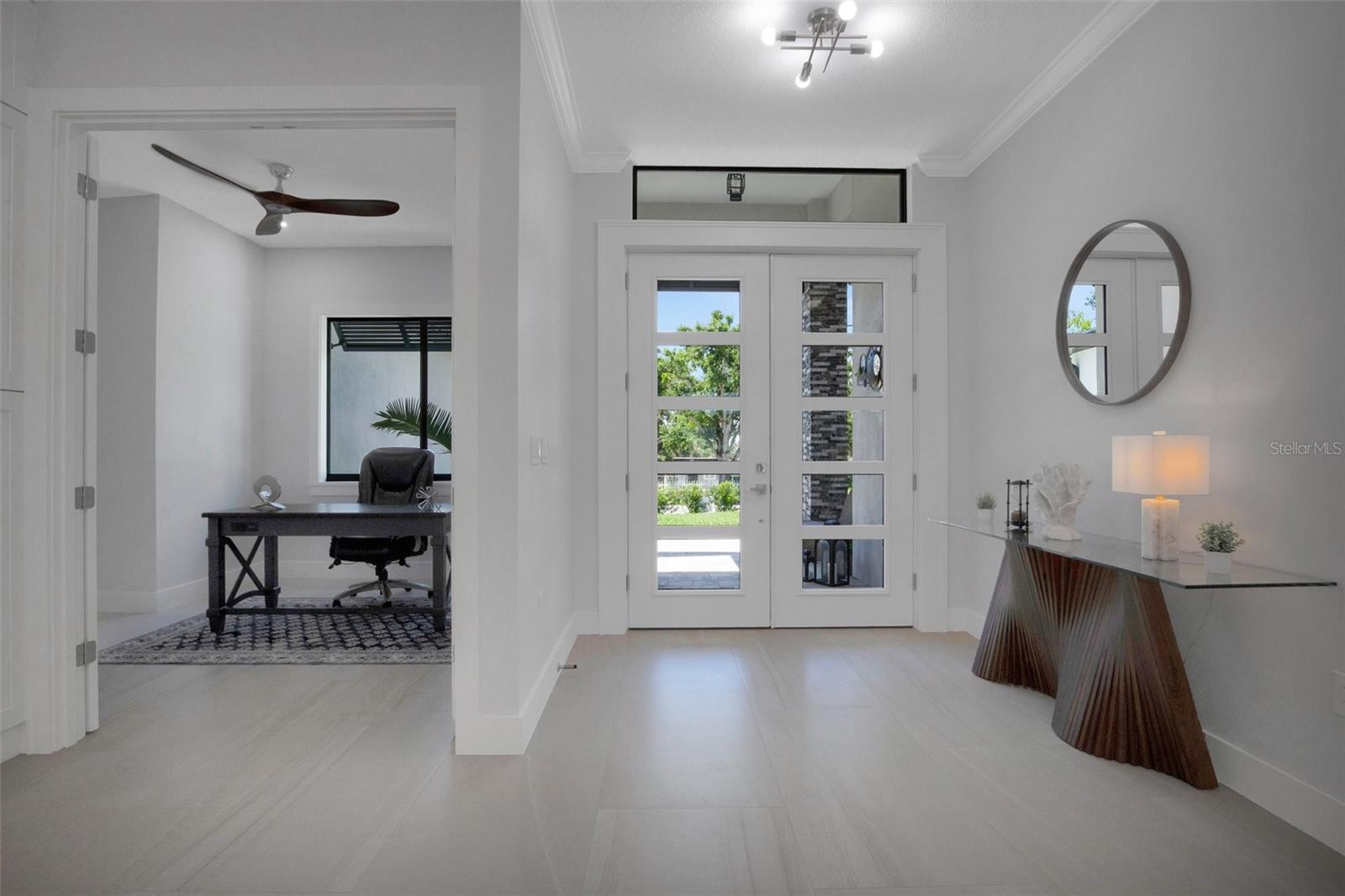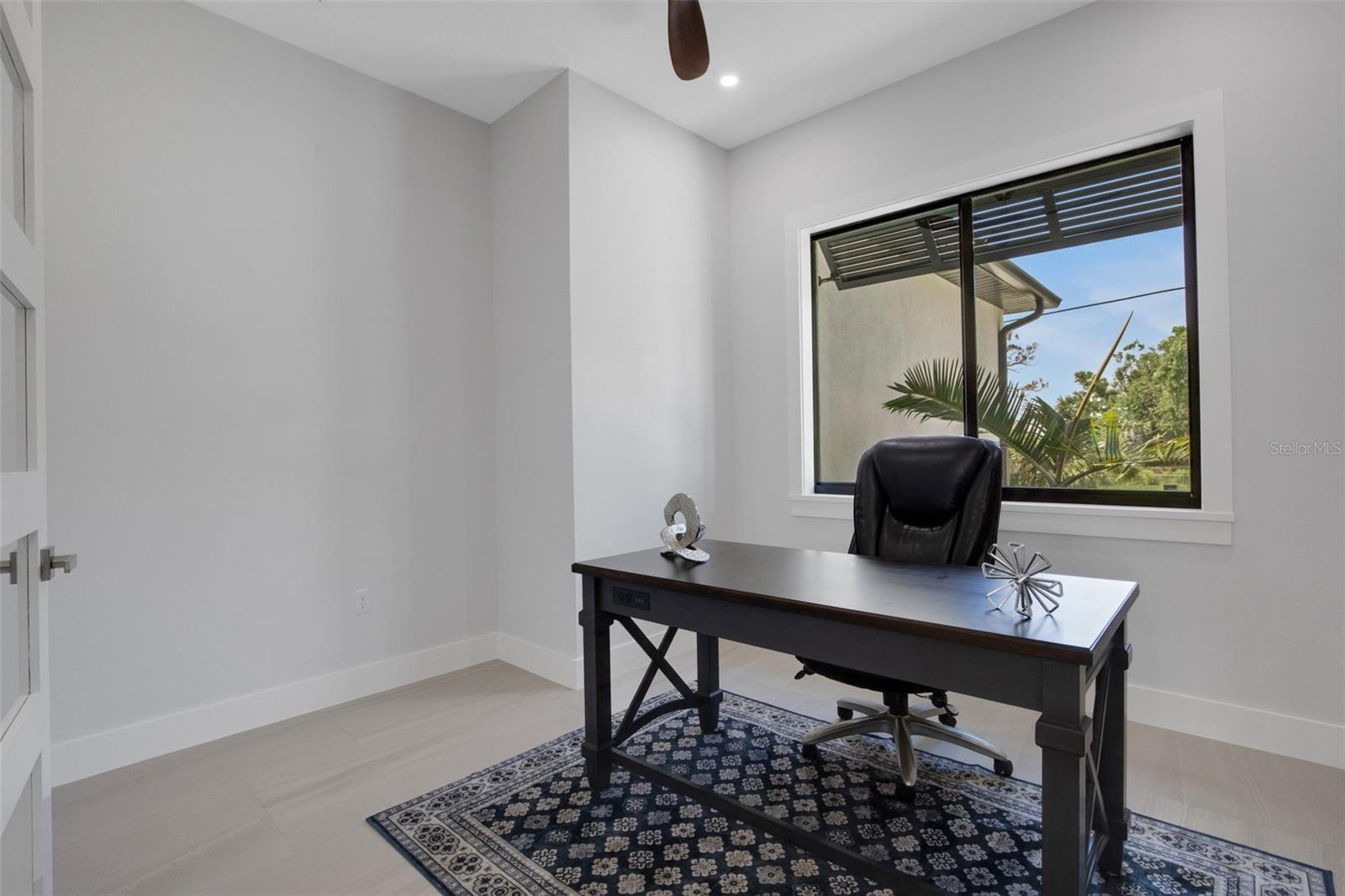 A true gem, new and never lived in. A very unique contemporary custom house with pool/spa built by a reputable local builder, right in the middle of everything - minutes to the beach (under 2 miles), downtown Venice, Pineview School and the new Memorial Hospital. Very hard to find upgrades and unsurpassed craftsmanship, to name a few: - 15 ft high outside entryway - front of the house decorated with natural quartzite stone and Bahamas shutters - double designer 8 ft door and matching interior 8 ft doors - open area complemented by 24x48 beach dune porcelain tile imported from Spain, inspired by Florida beaches - electric fireplace and decorative ceiling beams with LED lighting in living room - impact windows and sliding glass doors throughout - crown molding in open area and master suite - designer grade kitchen with ceiling height cabinetry, deluxe appliances and 10 ft x 6 ft island with waterfall sides - built-in wall oven and microwave - designer grade tile in master bath with LED niche, bench, standalone tub and multiple shower heads - 10 ft tall ceilings throughout - great outdoor space with St. Augustine grass, fenced in property for privacy - heated pool/spa with pool cage to be enjoyed year around for a true Florida lifestyle - great outdoor kitchen with sizeable, covered lanai just perfect for quiet evenings or large party entertainment - boat ramp across the street - very close proximity to Legacy Trail - very desirable X flood zone (no flood insurance coverage required) - great shopping, golfing, fishing, boating and everything else Florida has to offer - quiet and private street with no association restrictions and no CDD - very custom home (not a cookie cutter), unlike any others around This is the one to call home! All furniture, appliances and accents shown in the pictures convey with the house, including 2 large TV sets.